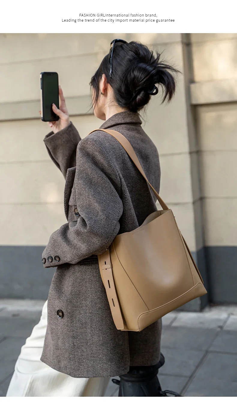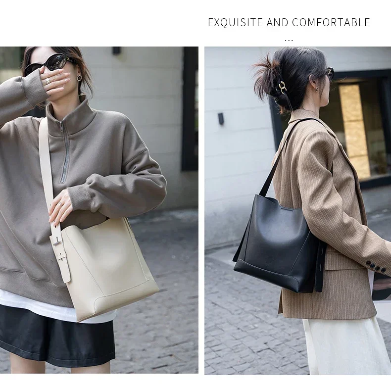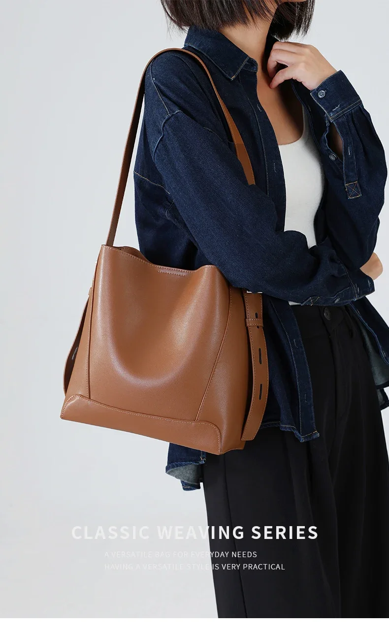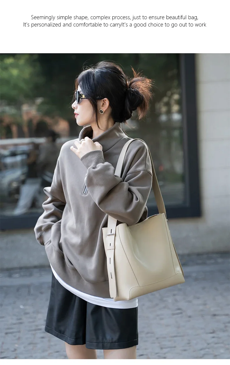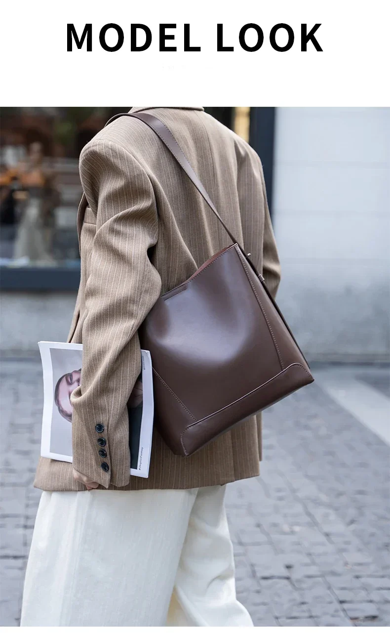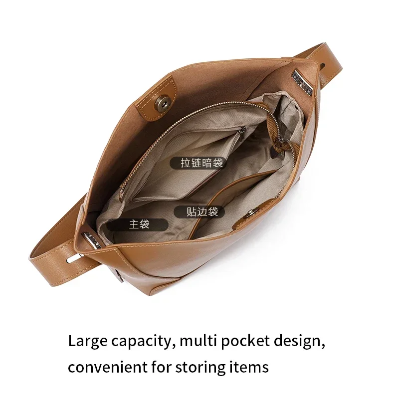 Cowhide Genuine Leather Large Capacity Bag For Women Retro Single Shoulder Tote Bags Casual Versatile Casual Ladies Handbags New