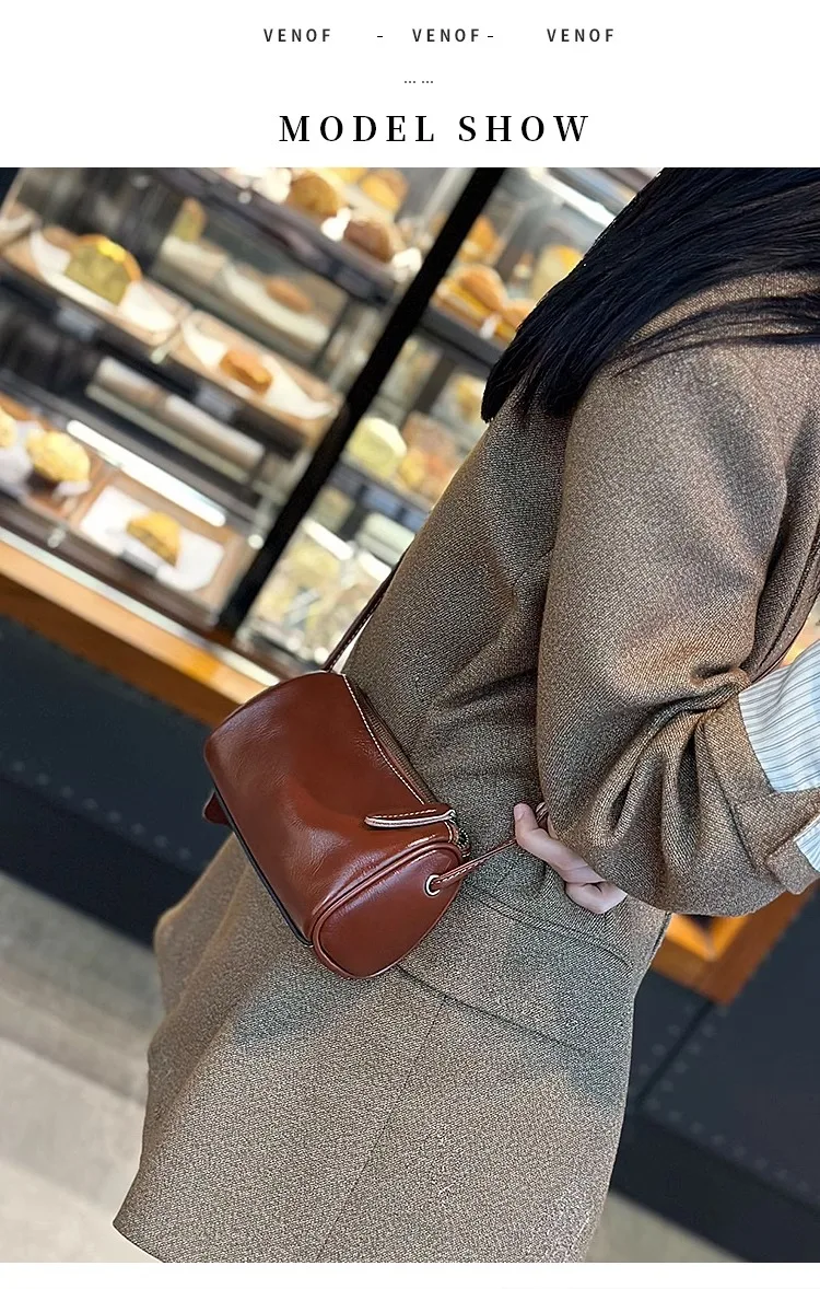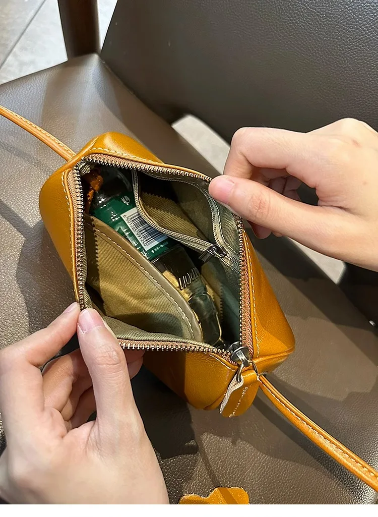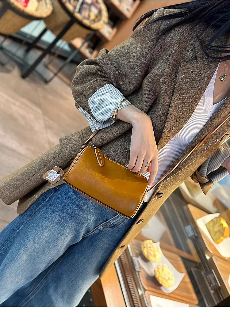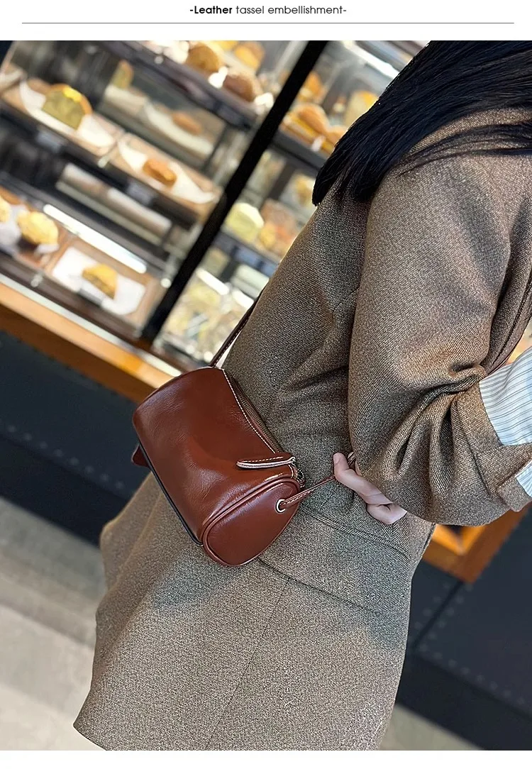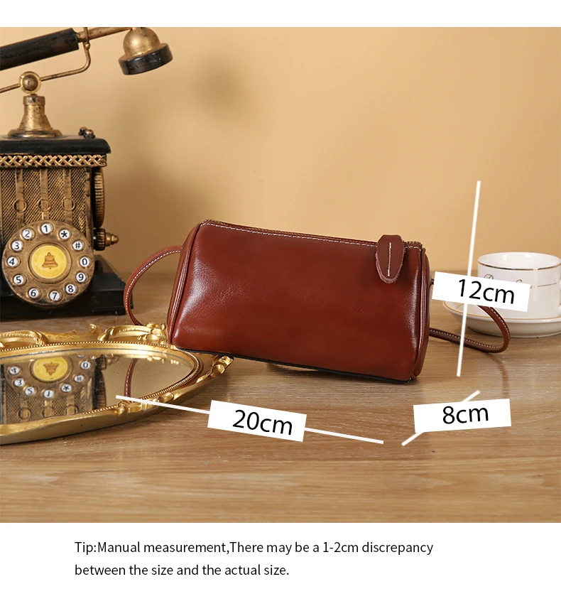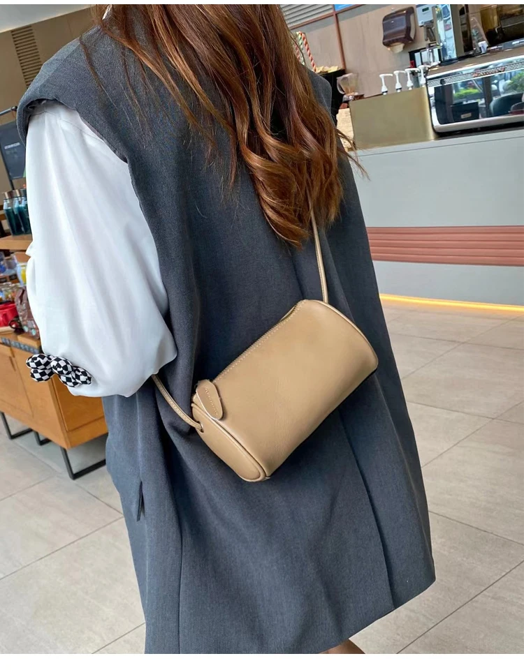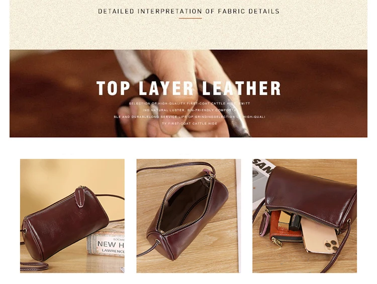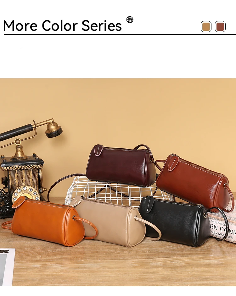 Cowhide Genuine Leather Popular Cylinder Bags Women's Retro Trendy Messenger Bag Women's Designer Shoulder Handbag for Ladies