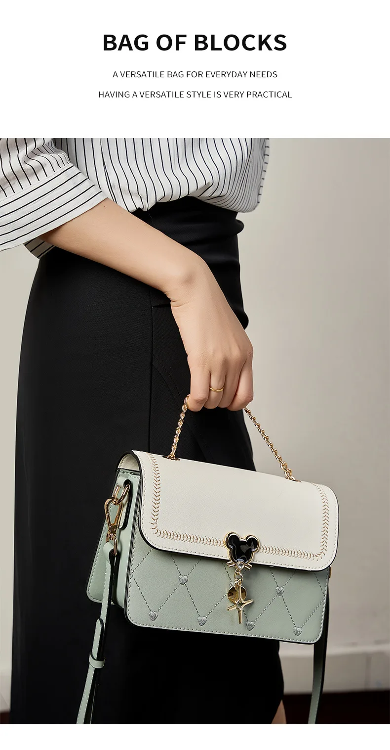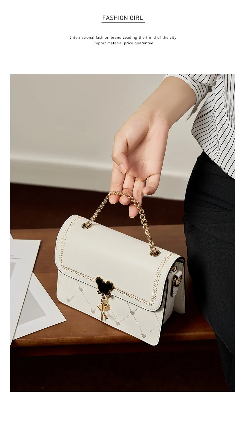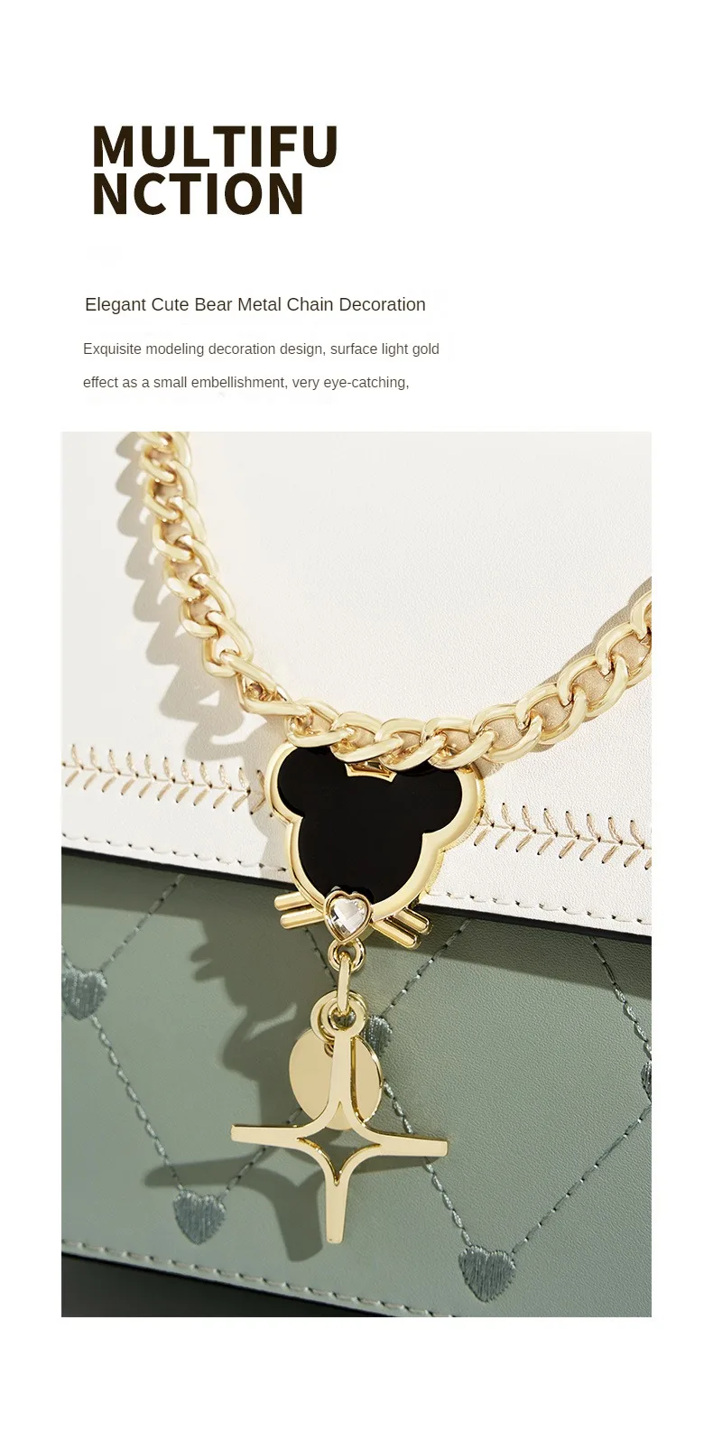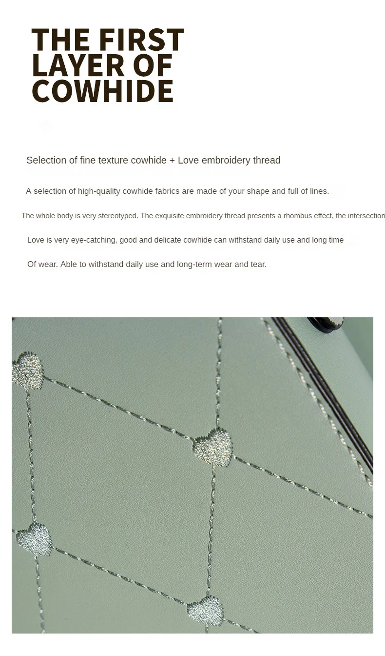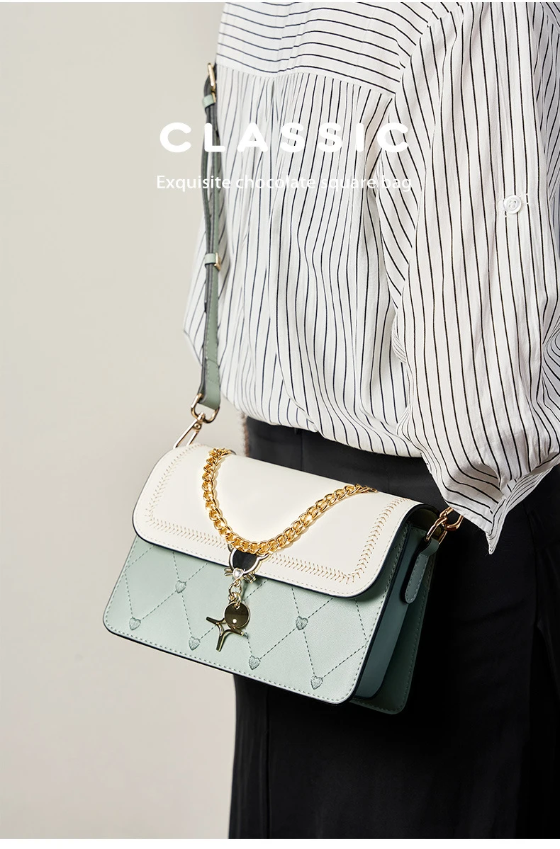 Cowhide Genuine Leather Square Small Shoulder Crossbody Bags Cute Heart Decoration Contrast Color Niche Underarm Shoulder Bag