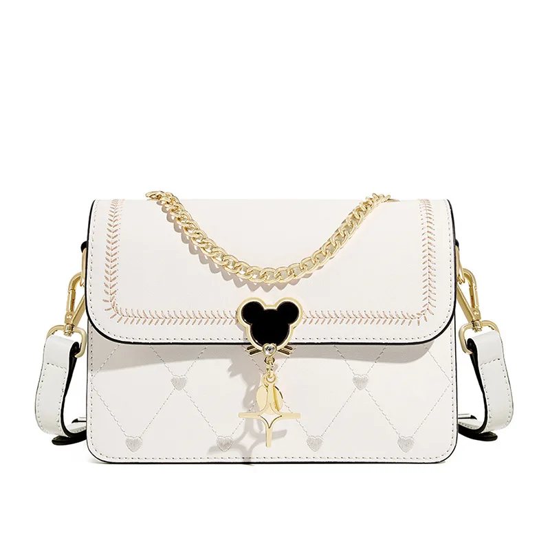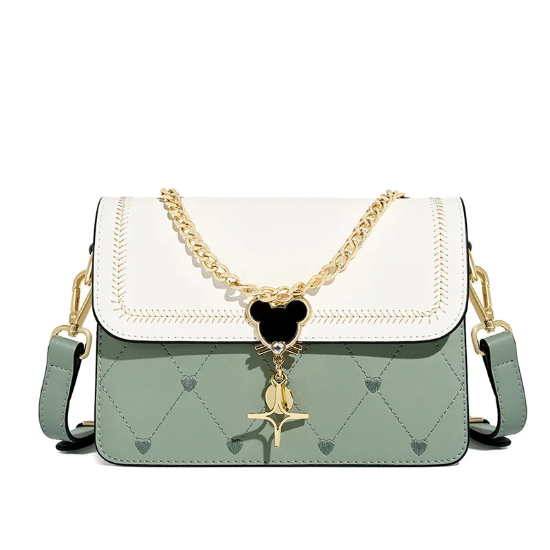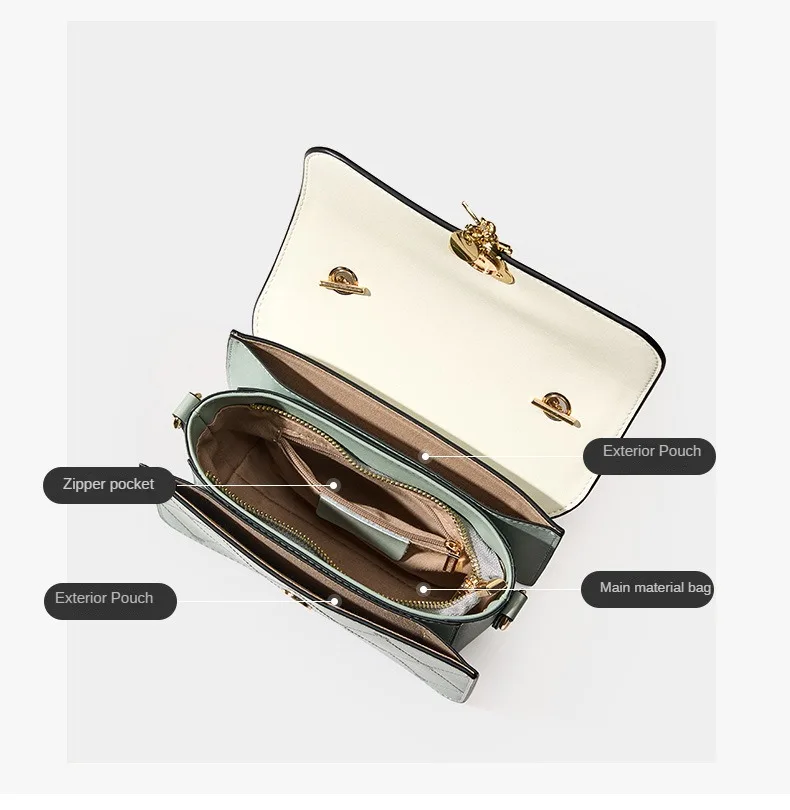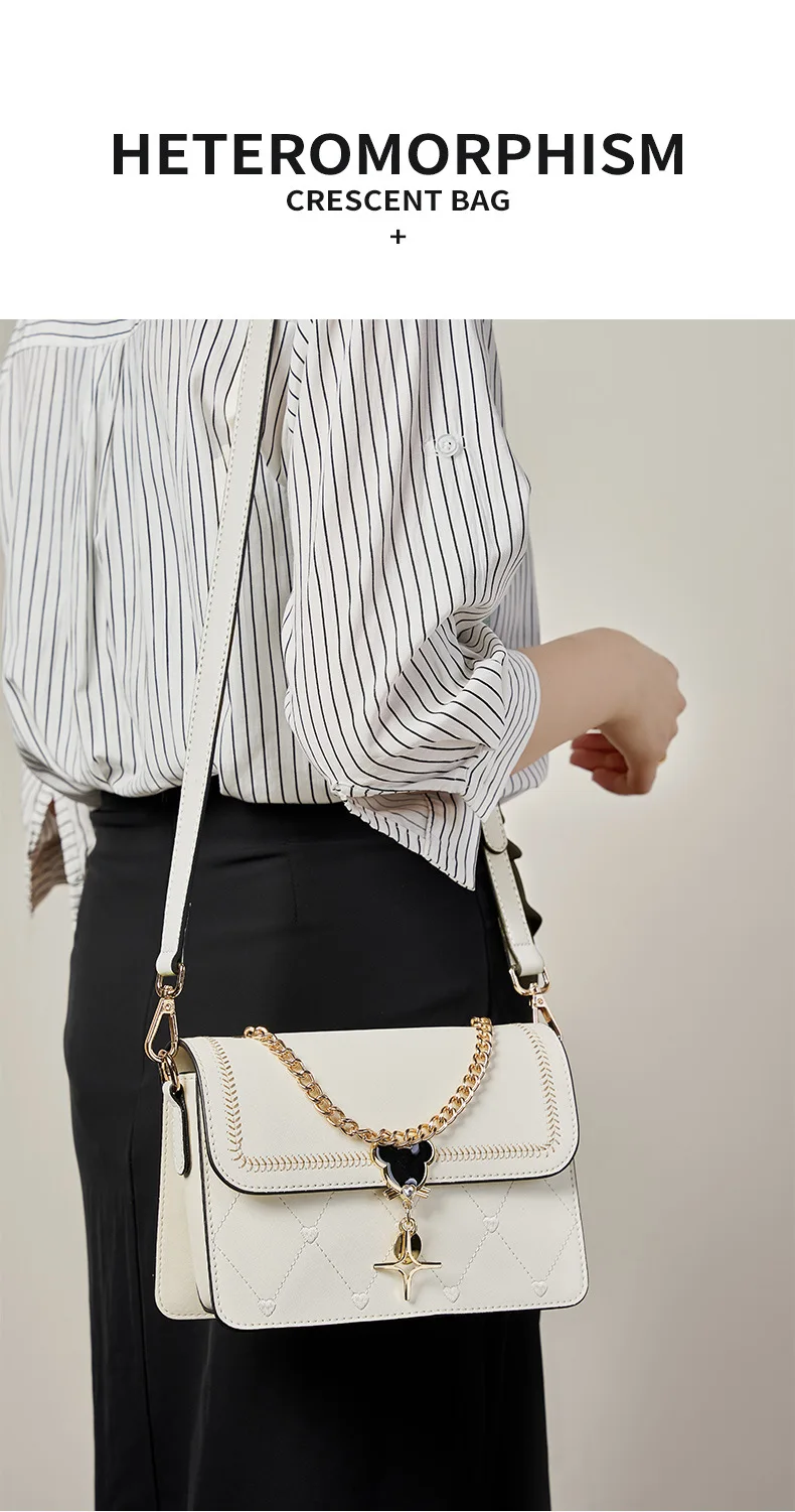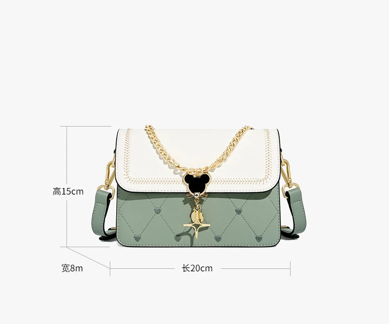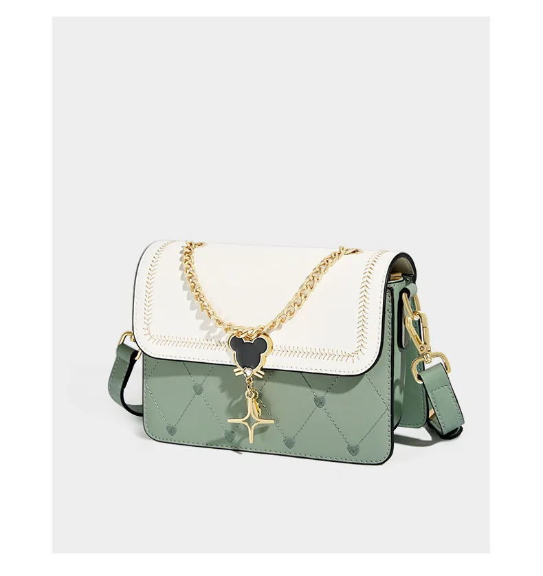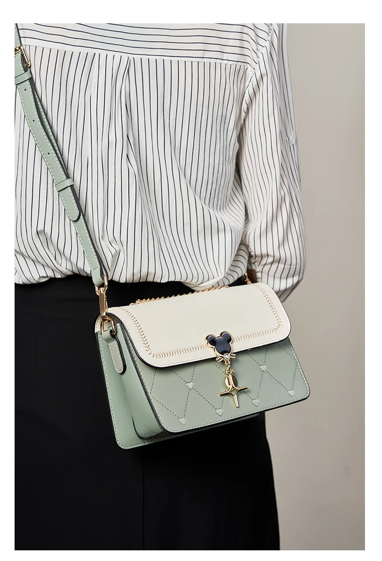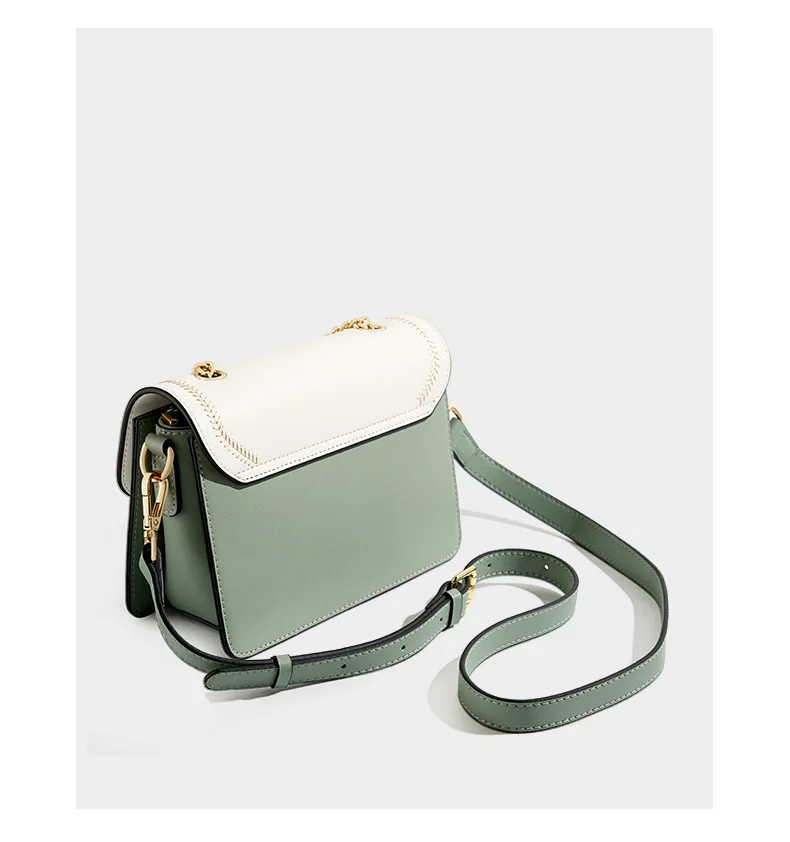 Cowhide Genuine Leather Square Small Shoulder Crossbody Bags Cute Heart Decoration Contrast Color Niche Underarm Shoulder Bag