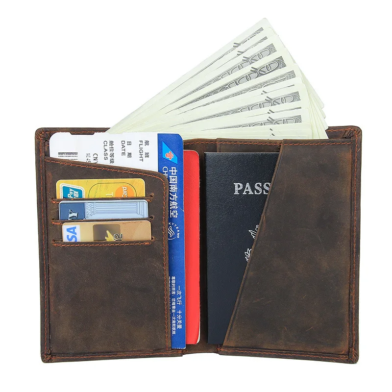 Crazy horse Genuine Leather Passport Wallet man women RFID Protection Credit Card Holder High Quality Travel Passport Cover Case