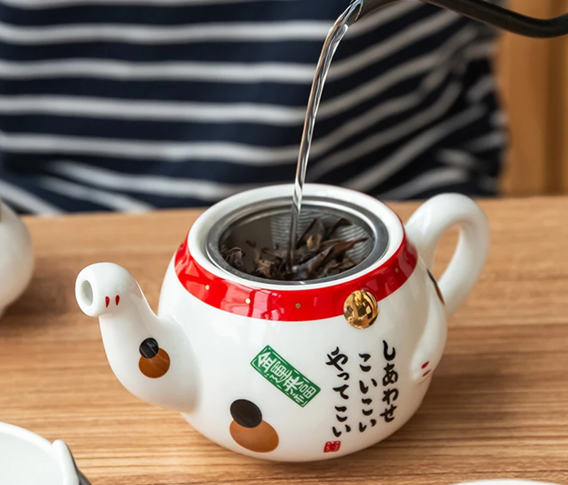 Creative Cute Lucky Cat Porcelain Tea Set Cartoon Ceramic Tea Cup Pot with Strainer Lovely Plutus Cat Teapot Mug Teaware