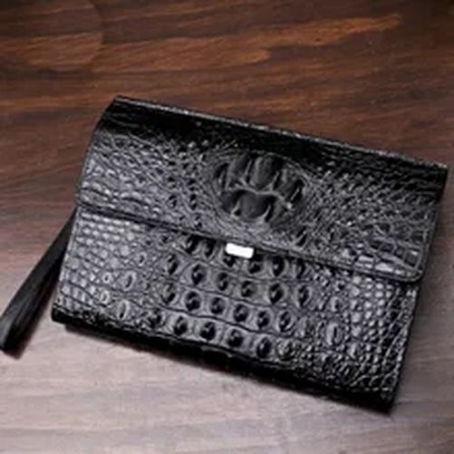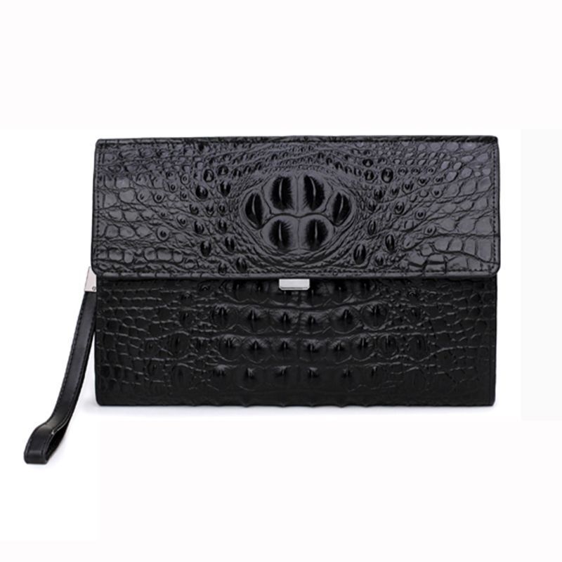 Crocodile Pattern Genuine Cow Leather Envelope Bag Men Clutch Wristlets Bag Men