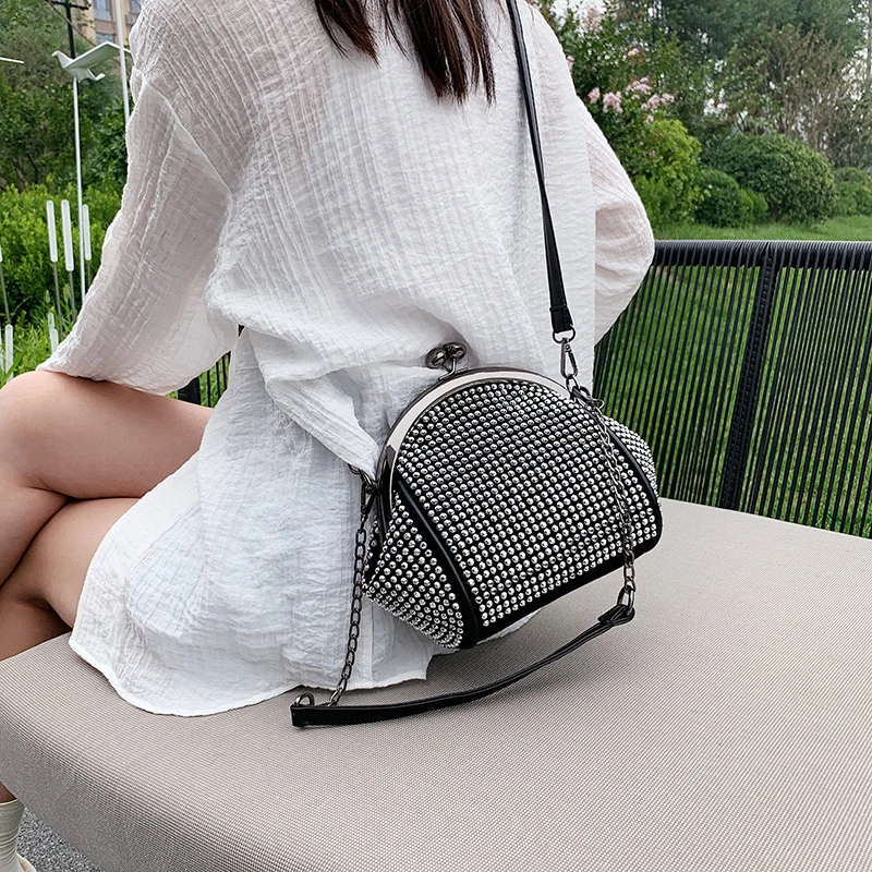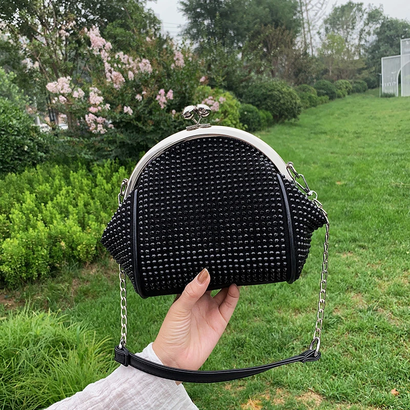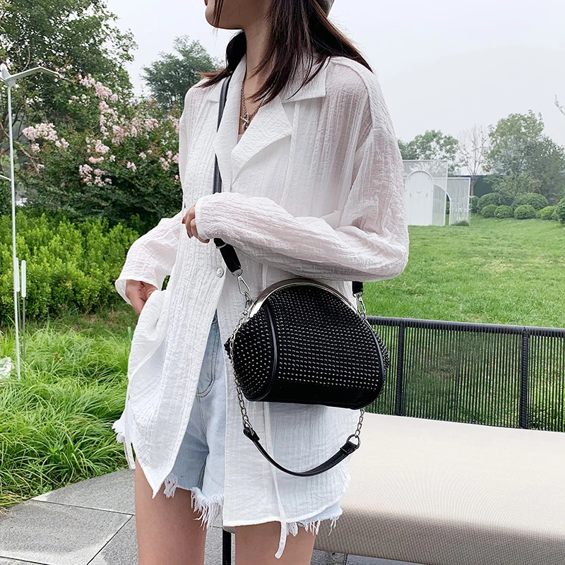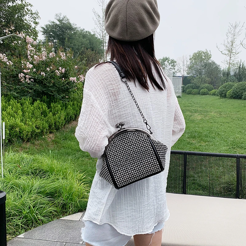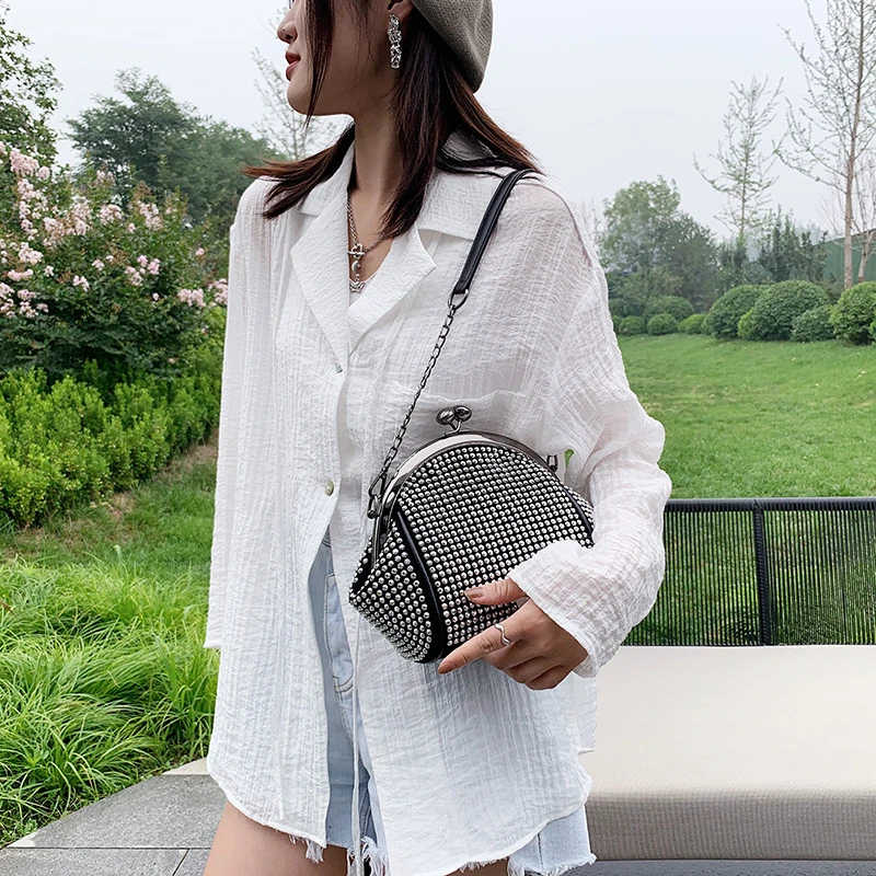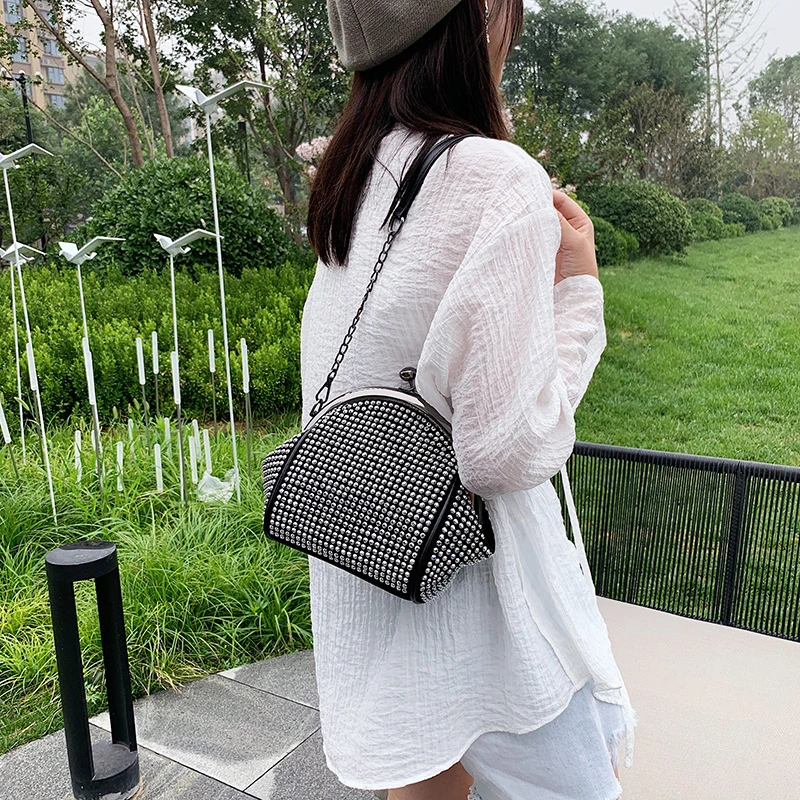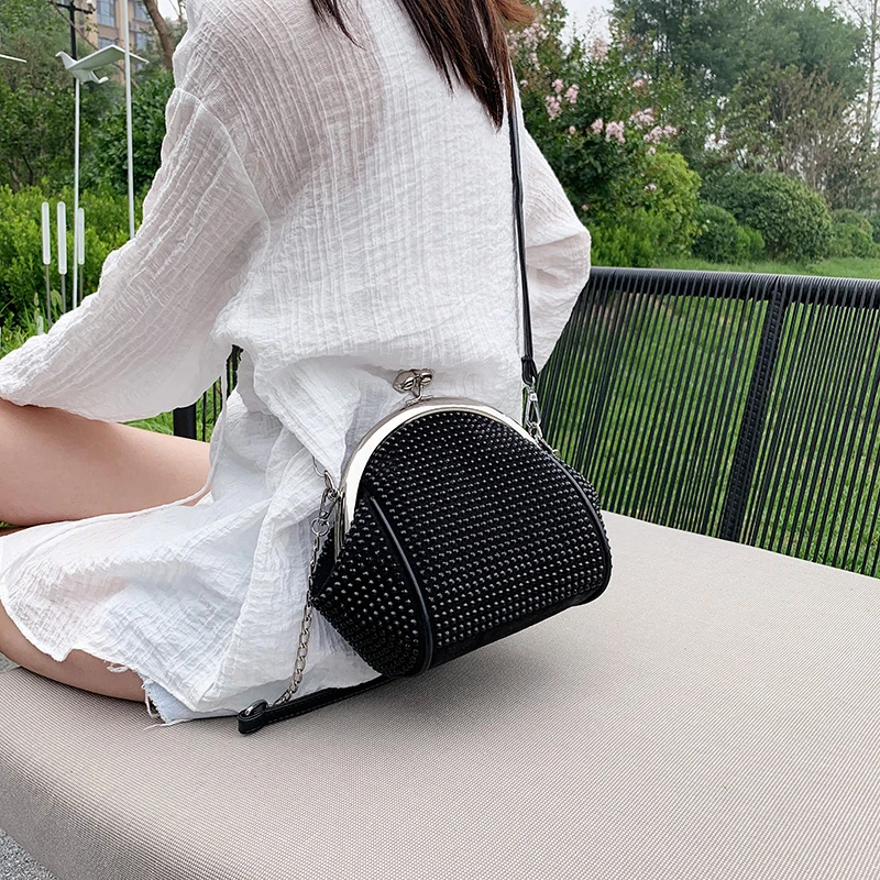 Crossbody Bags Women Rivet Evening Clutch Purse Ladies Black Chains Shoulder Bag
