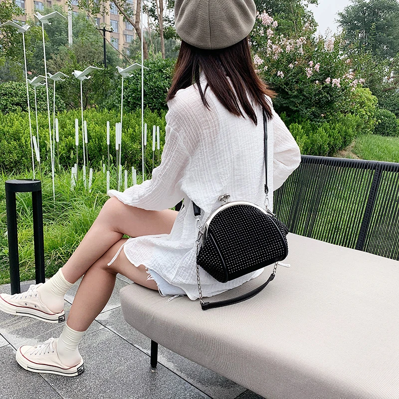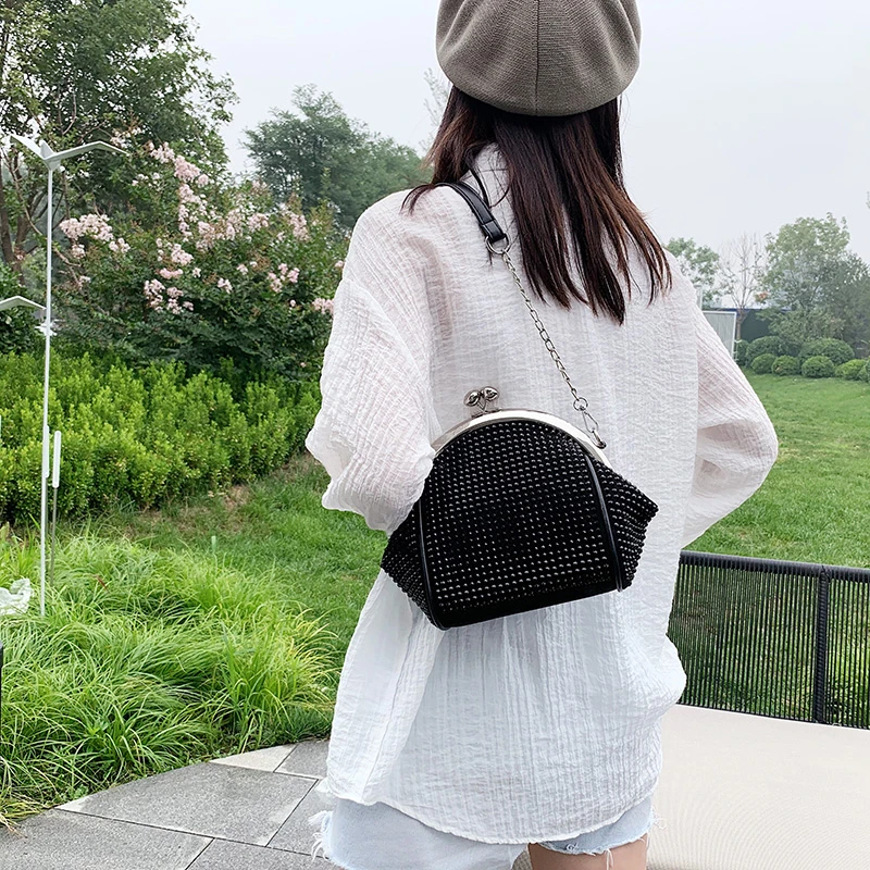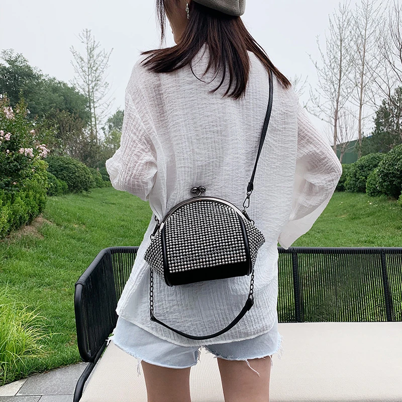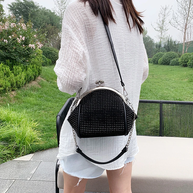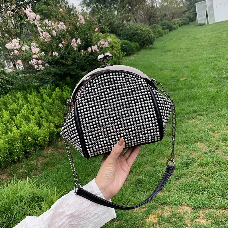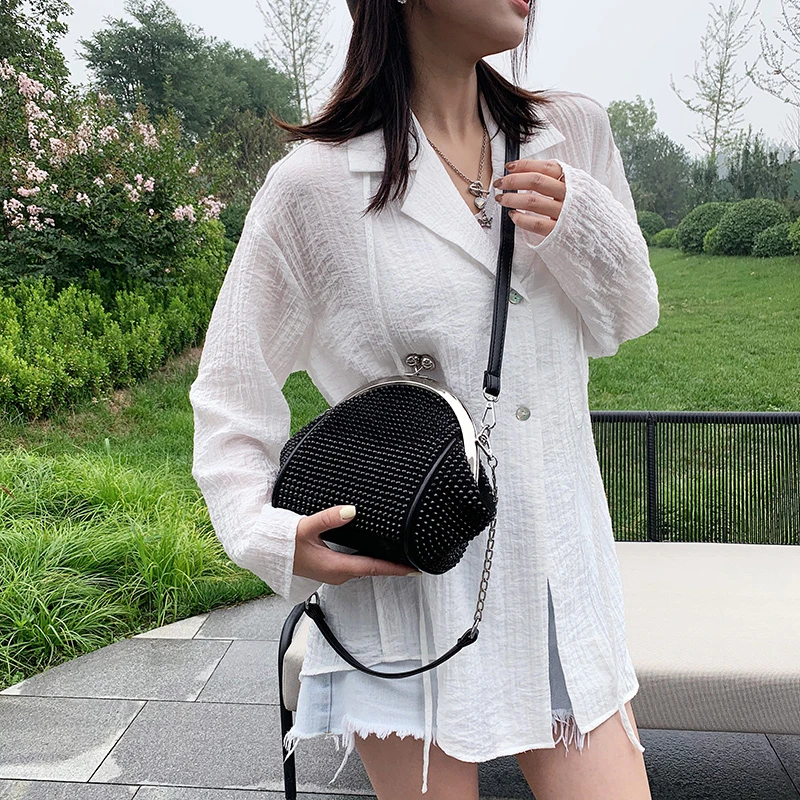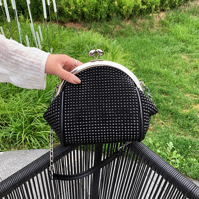 Crossbody Bags Women Rivet Evening Clutch Purse Ladies Black Chains Shoulder Bag