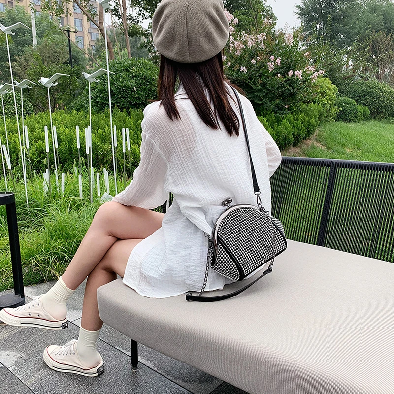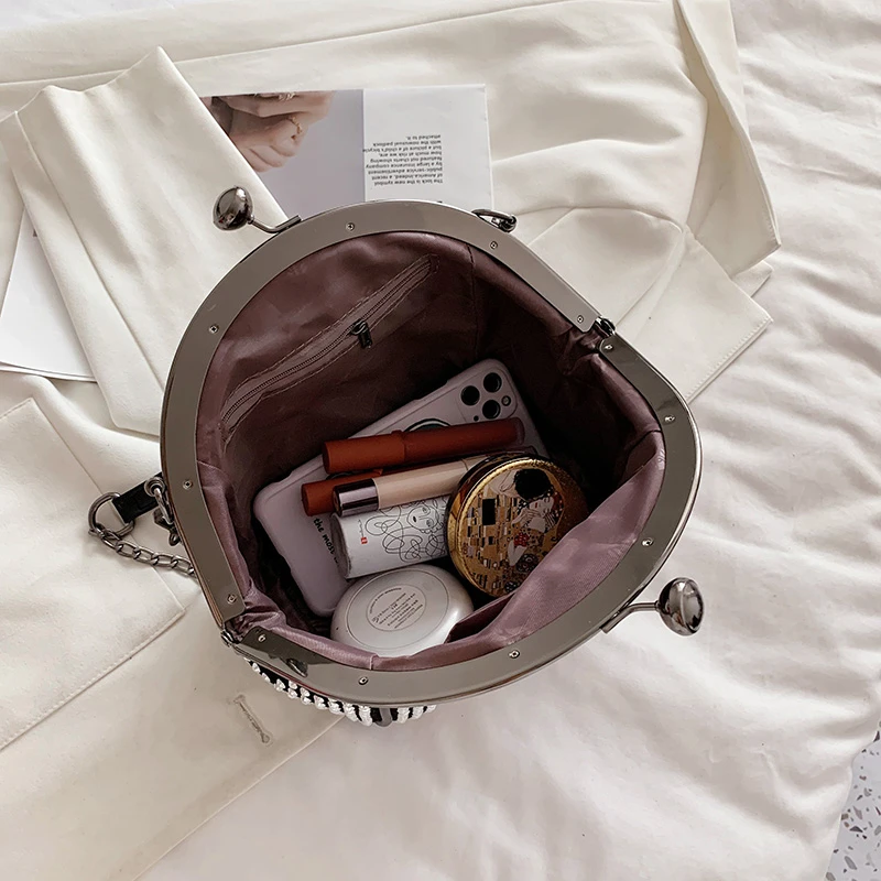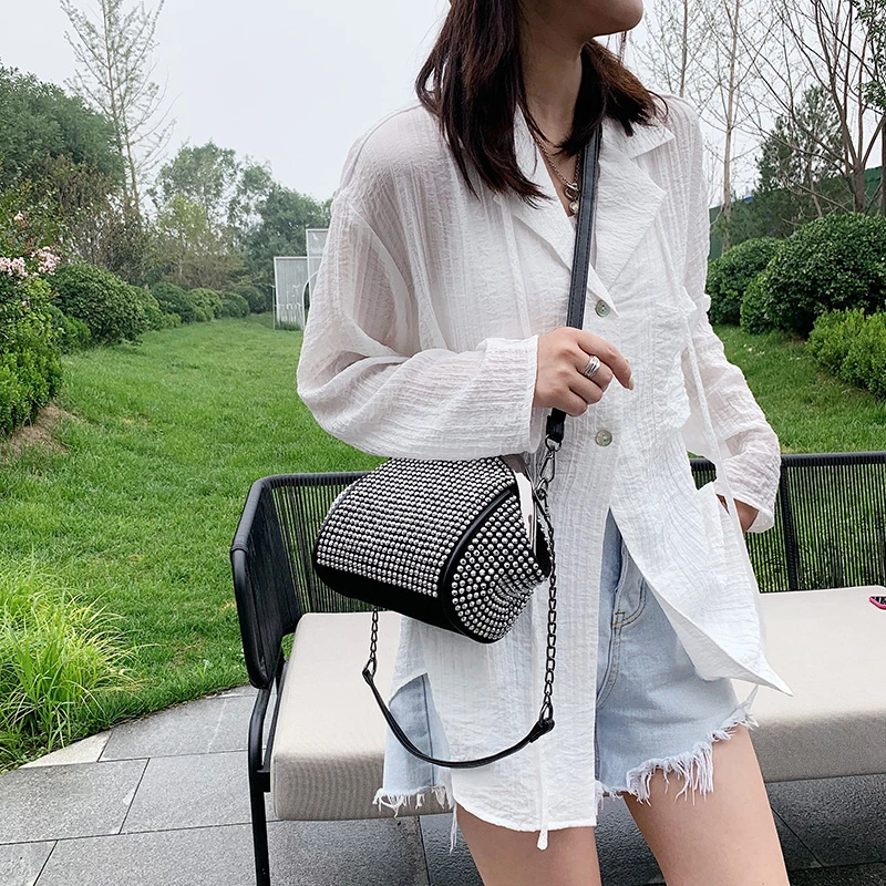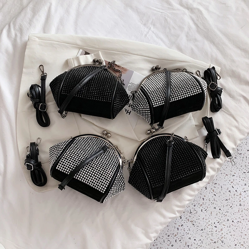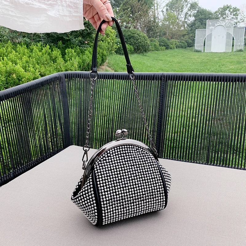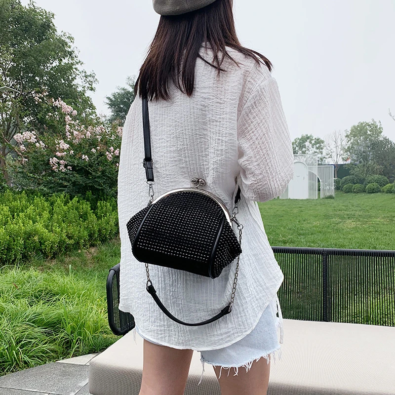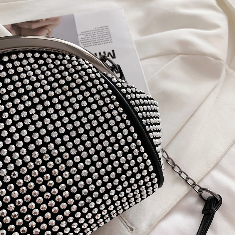 Crossbody Bags Women Rivet Evening Clutch Purse Ladies Black Chains Shoulder Bag