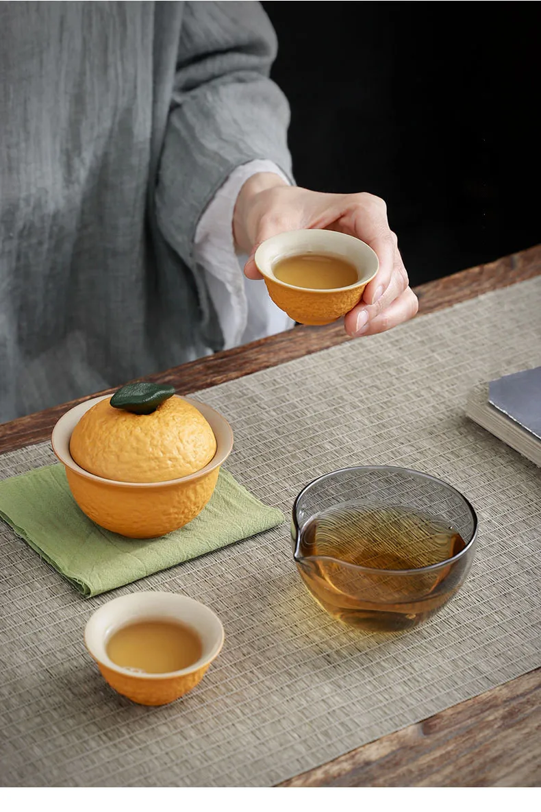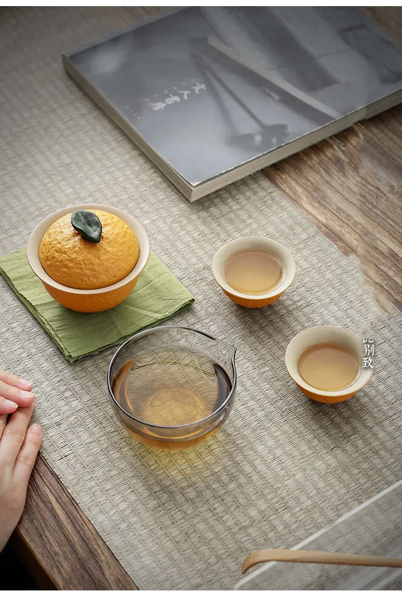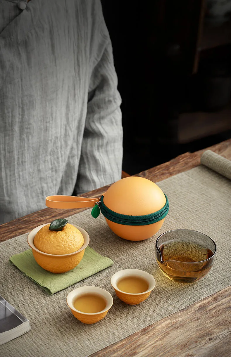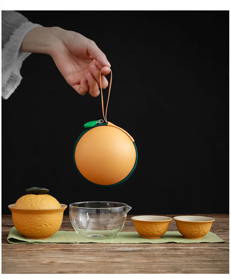 The tea set is made of high quality ceramics, safe and environmentally friendly, anti-scalding and heat-resistant, and comfortable to hold. It is a convenient tea set for travel and easy to use. Its appearance is smooth and textured, beautiful in appearance, novel and chic, and high-end atmosphere.
