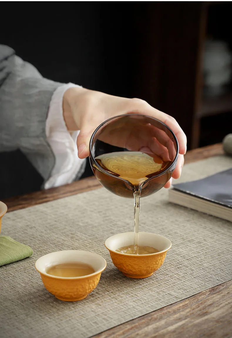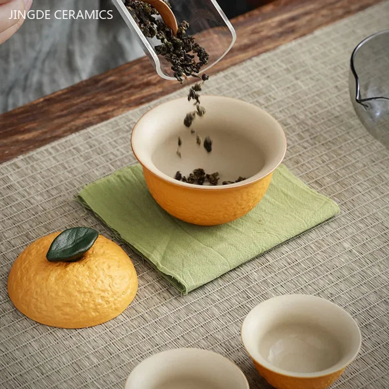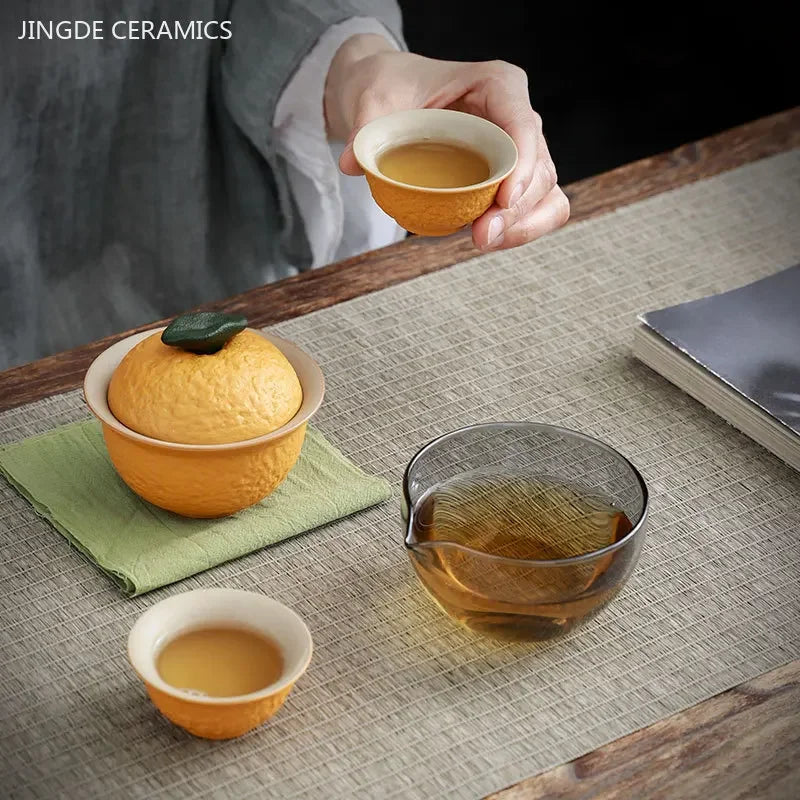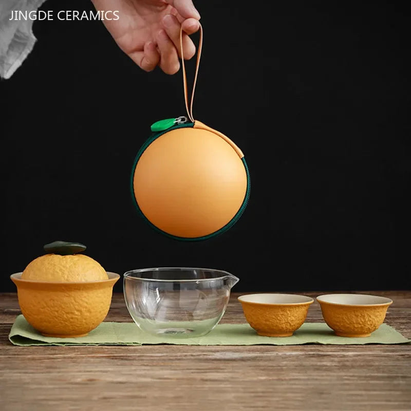 The tea set is made of high quality ceramics, safe and environmentally friendly, anti-scalding and heat-resistant, and comfortable to hold. It is a convenient tea set for travel and easy to use. Its appearance is smooth and textured, beautiful in appearance, novel and chic, and high-end atmosphere.