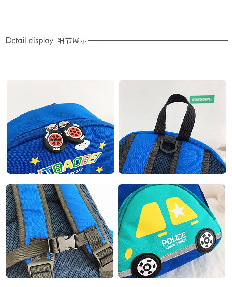 Cute Children Bag Cartoon Car Kids School Bags Kindergarten Bookbag Outdoor Travel Shoulder Backpack for Boys Girls Anti-lost