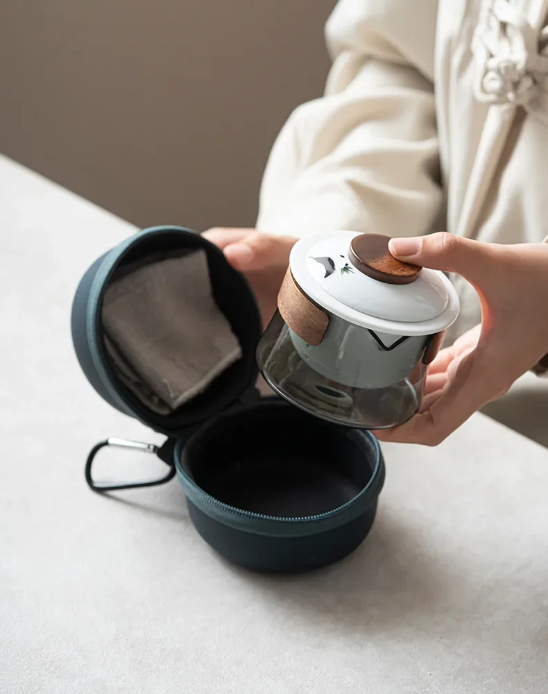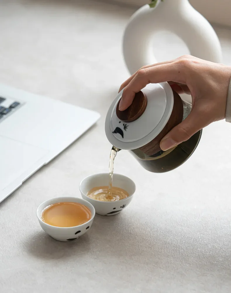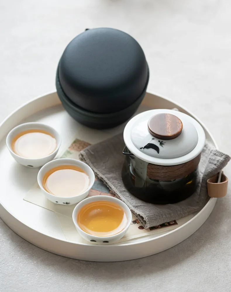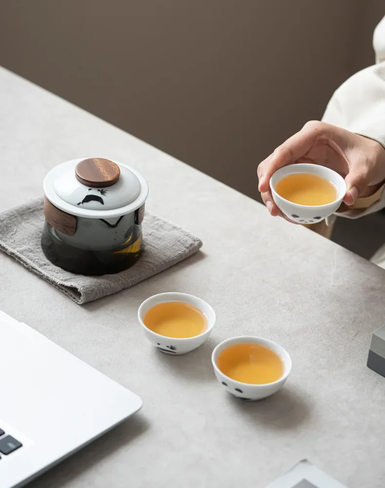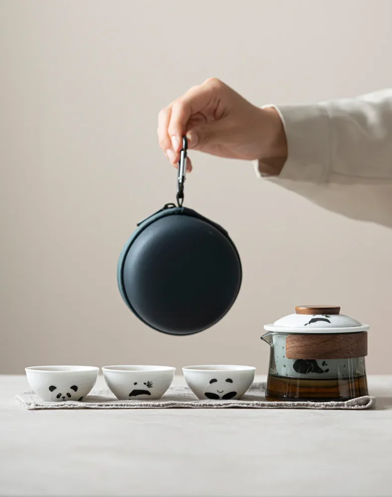 Cute Panda Tea Set Kit Elegant Tea Set Complete Set Glass Tea Brewing Gaiwan 1 Bowl 3 Cups Household Portable Tote Bag for Tea