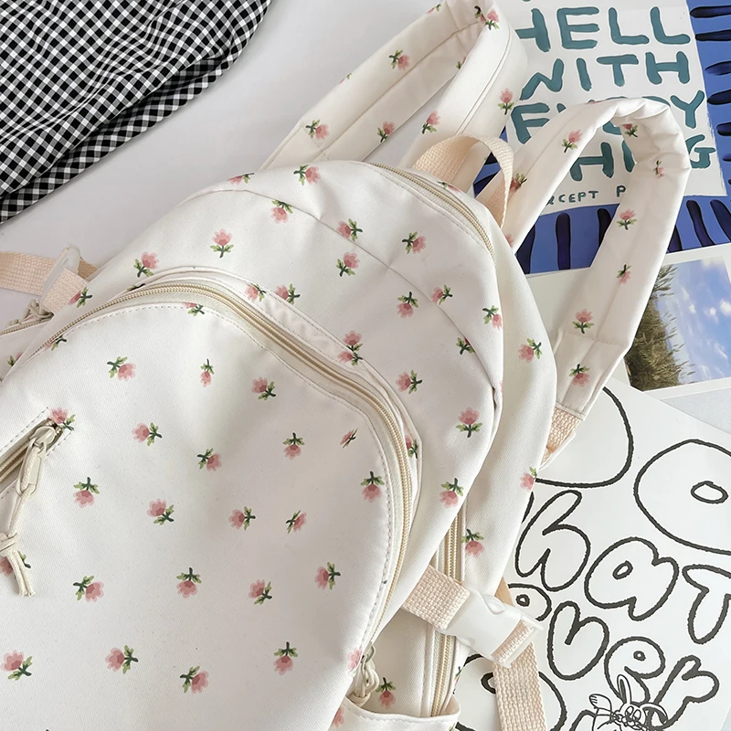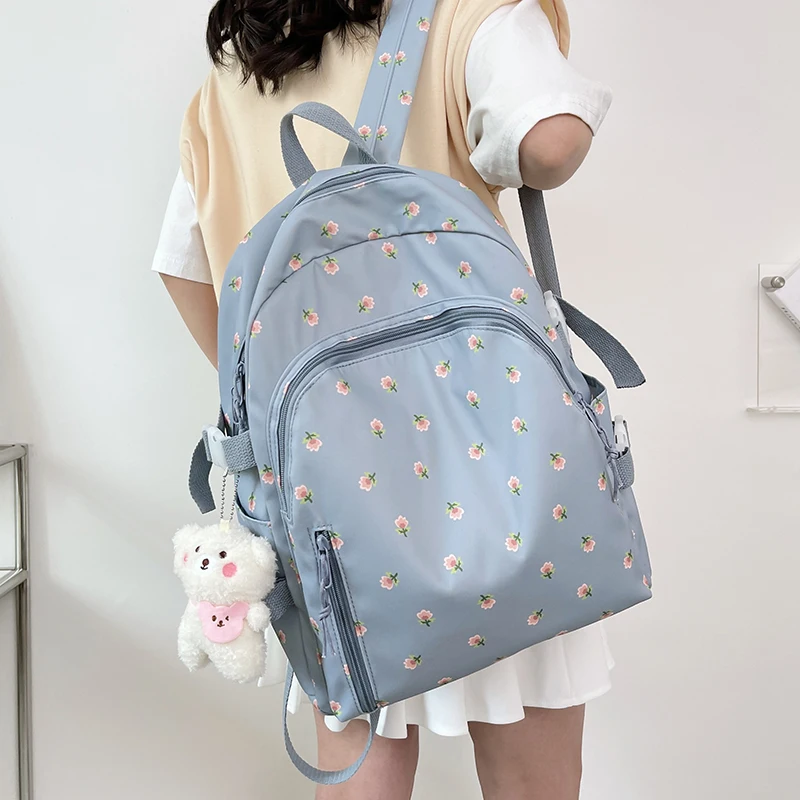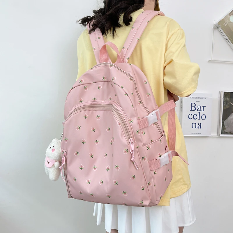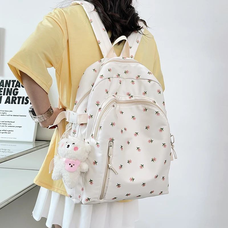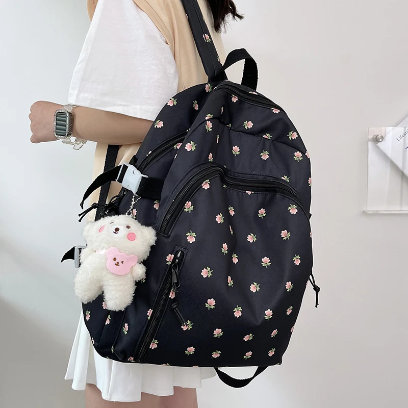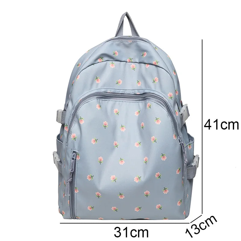 Cute Women Floral Print Laptop Book Bag Trendy Female College Backpack Girl Travel Kawaii School Bag Lady Nylon Backpack Fashion
