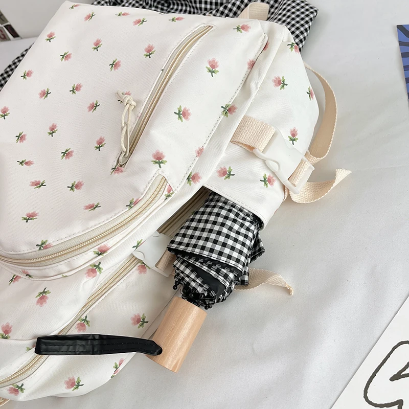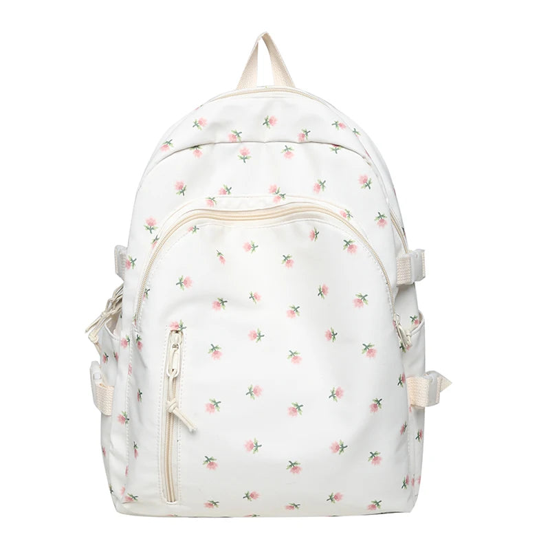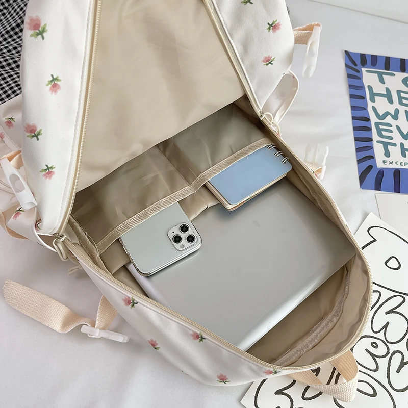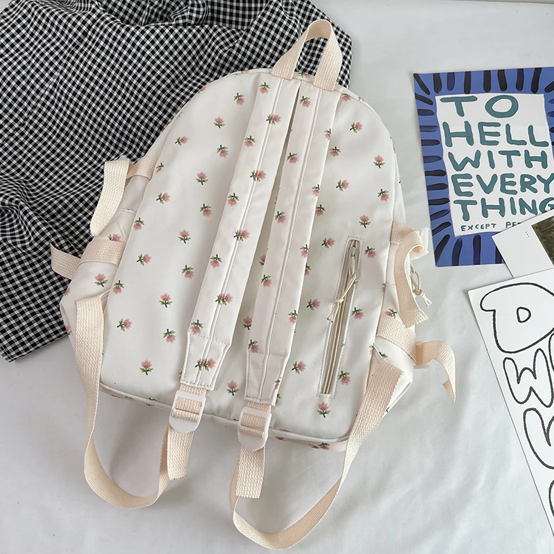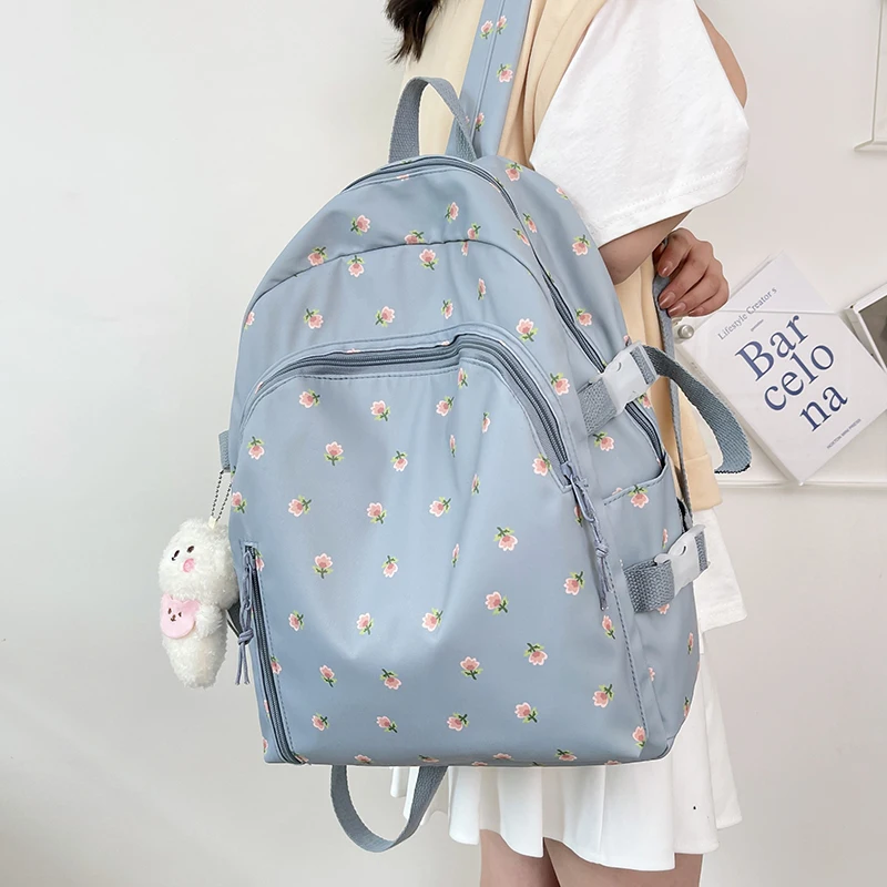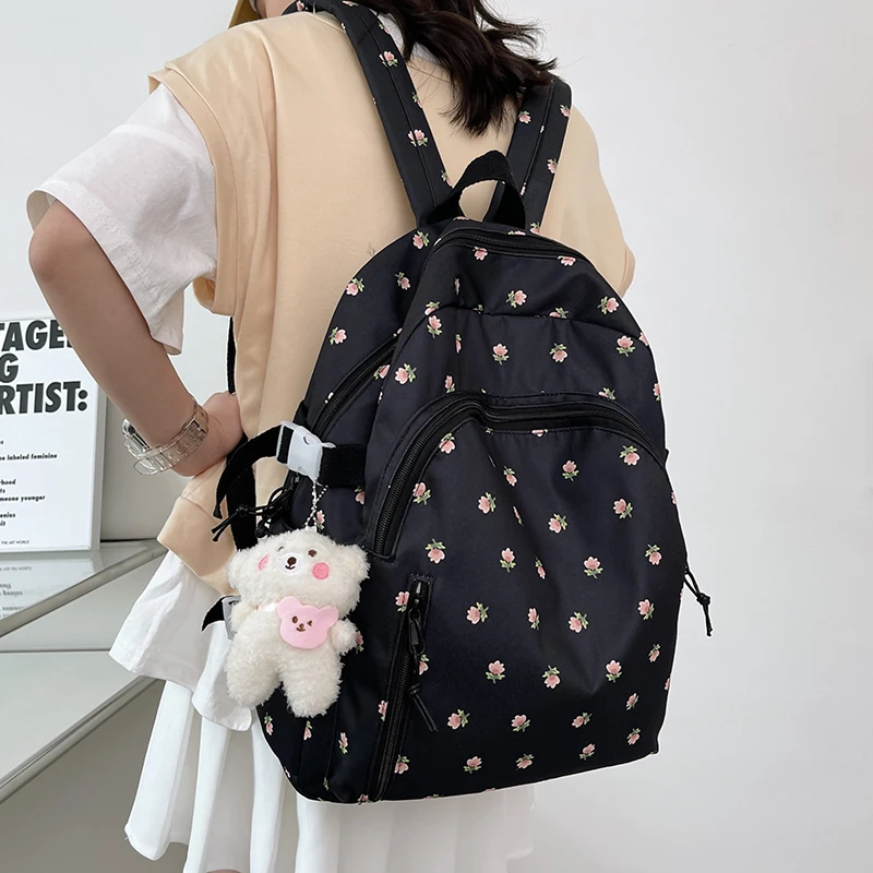 Cute Women Floral Print Laptop Book Bag Trendy Female College Backpack Girl Travel Kawaii School Bag Lady Nylon Backpack Fashion
