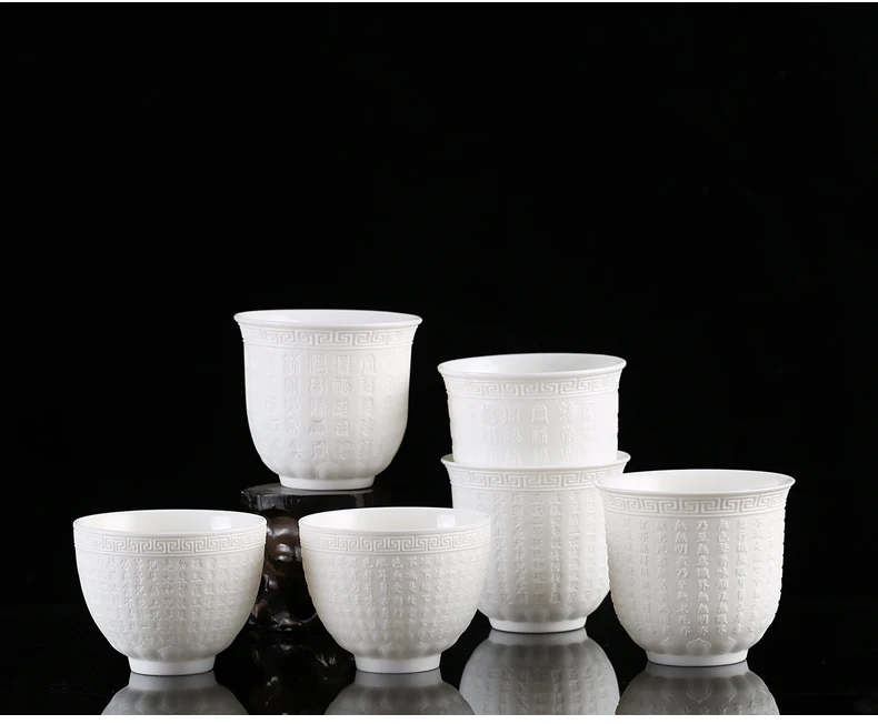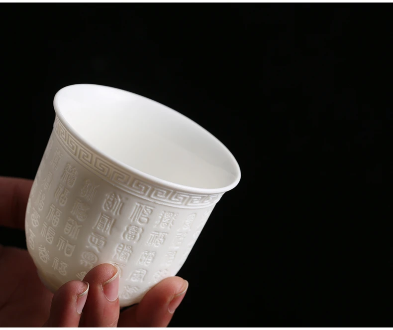 Dehua Sheep Fat Jade White Porcelain Kungfu Tea Cup, Master Cup, Heart Sutra Single Cup, Ceramic Purple Sand Tea Bowl, Large