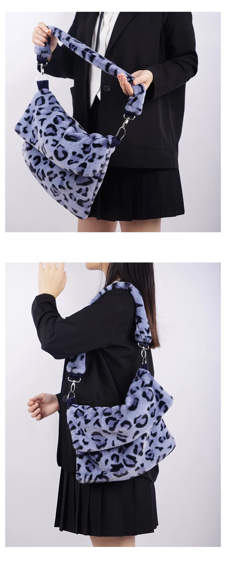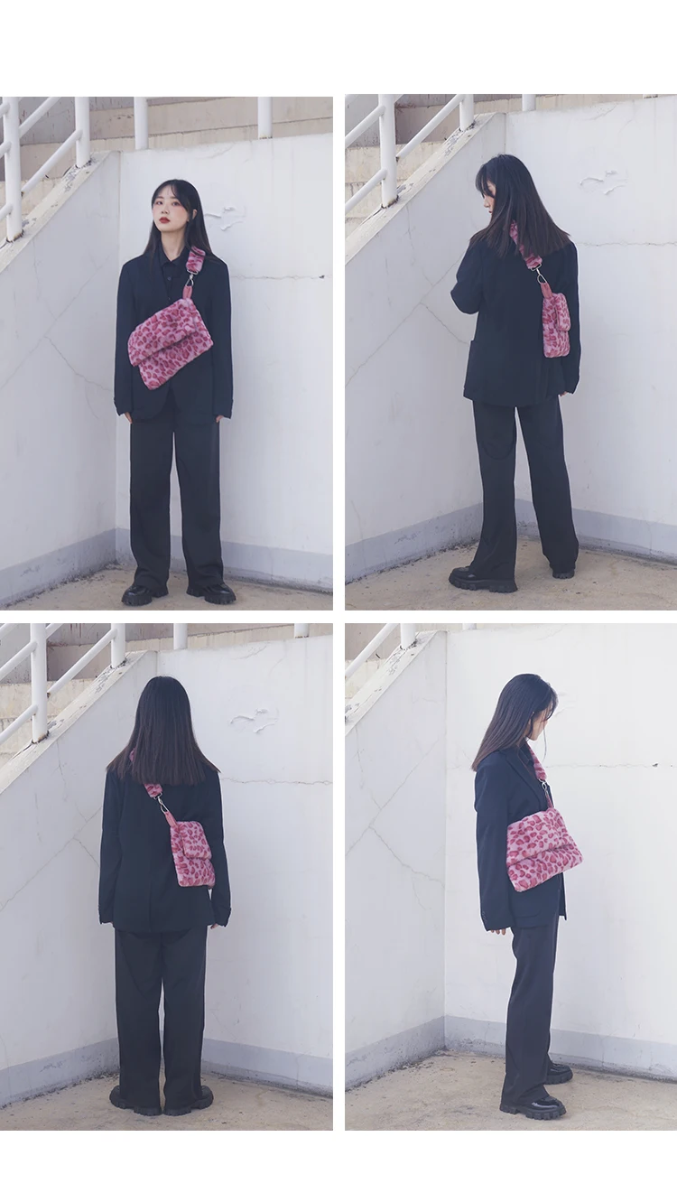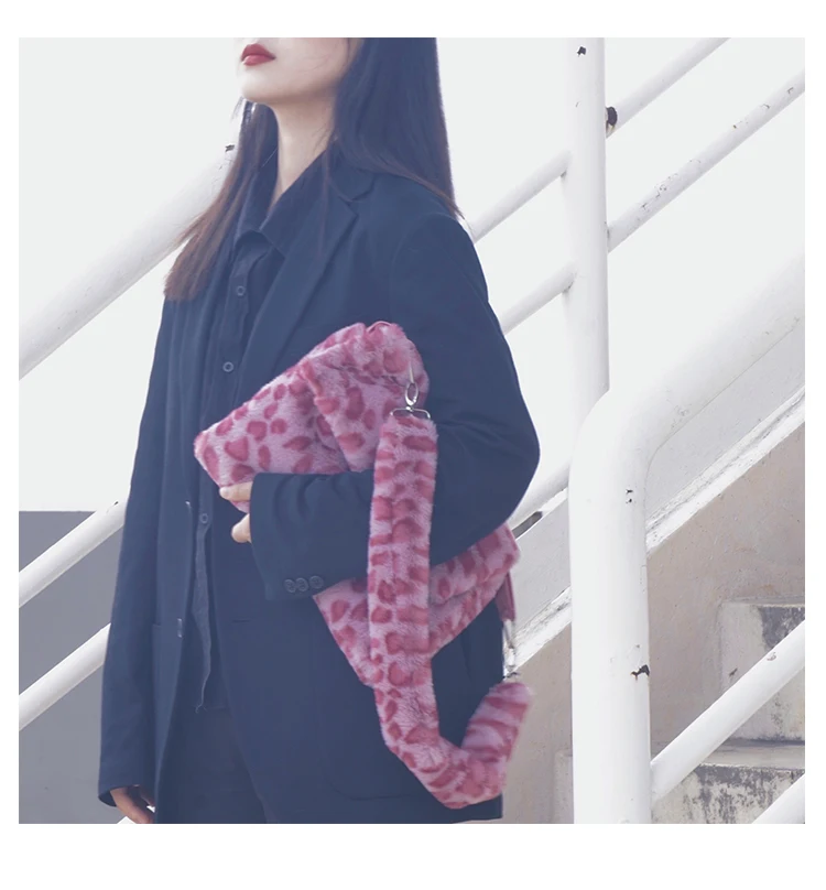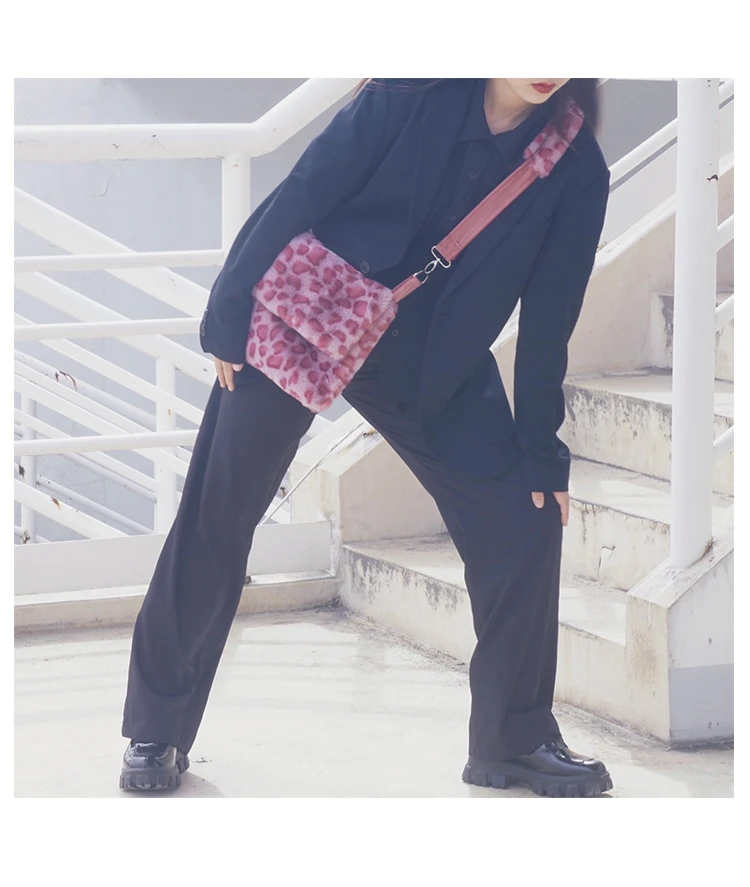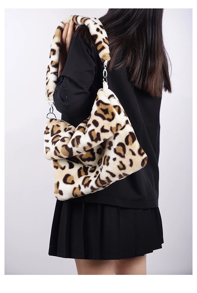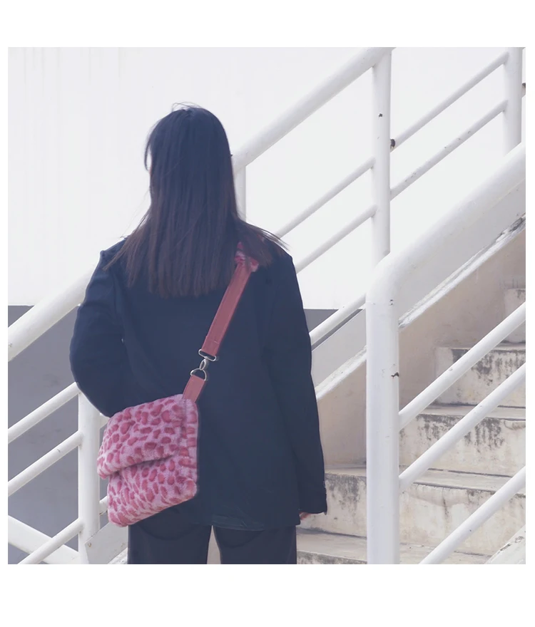 Design Plush Bag Female 2020 Winter Flip Fashionable Leopard Messenger Women Shoulder crossbody Bag Girls Tote Bag Furry Fluffy