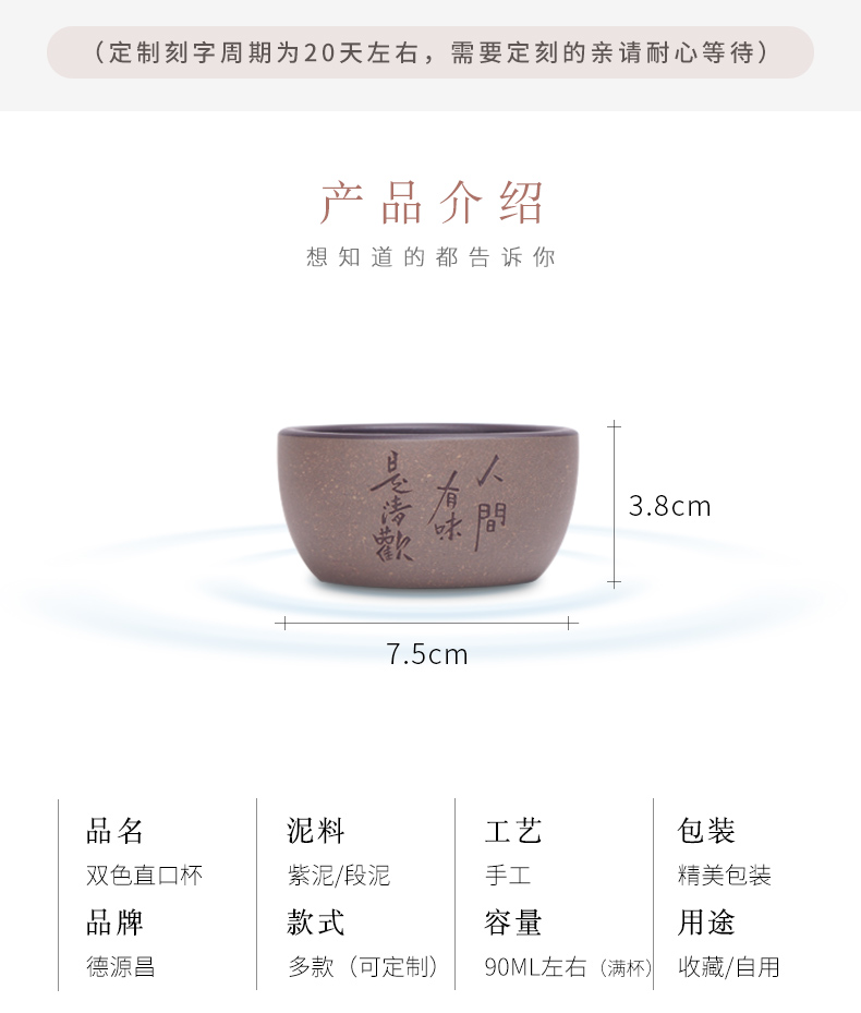 Deyuanchang Yixing Zisha Cup Handmade Master Cup Custom Lettering Tea Cup Kung Fu Tea Cup Single Tea Cup