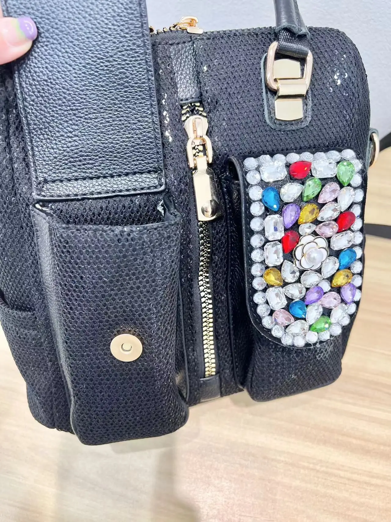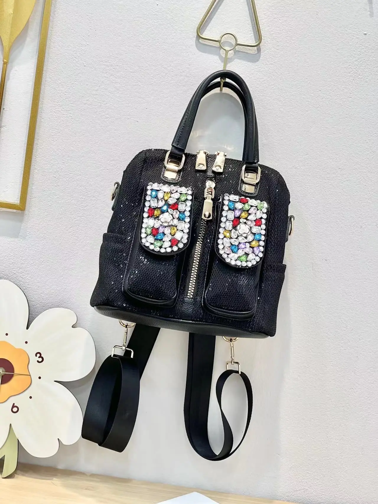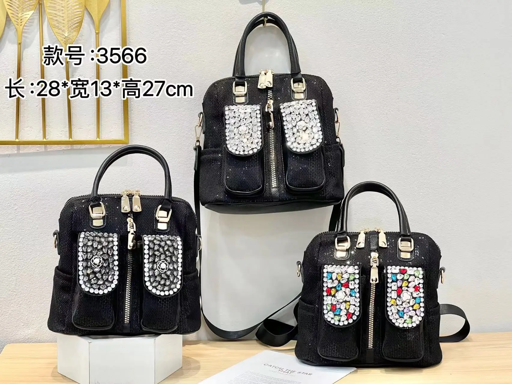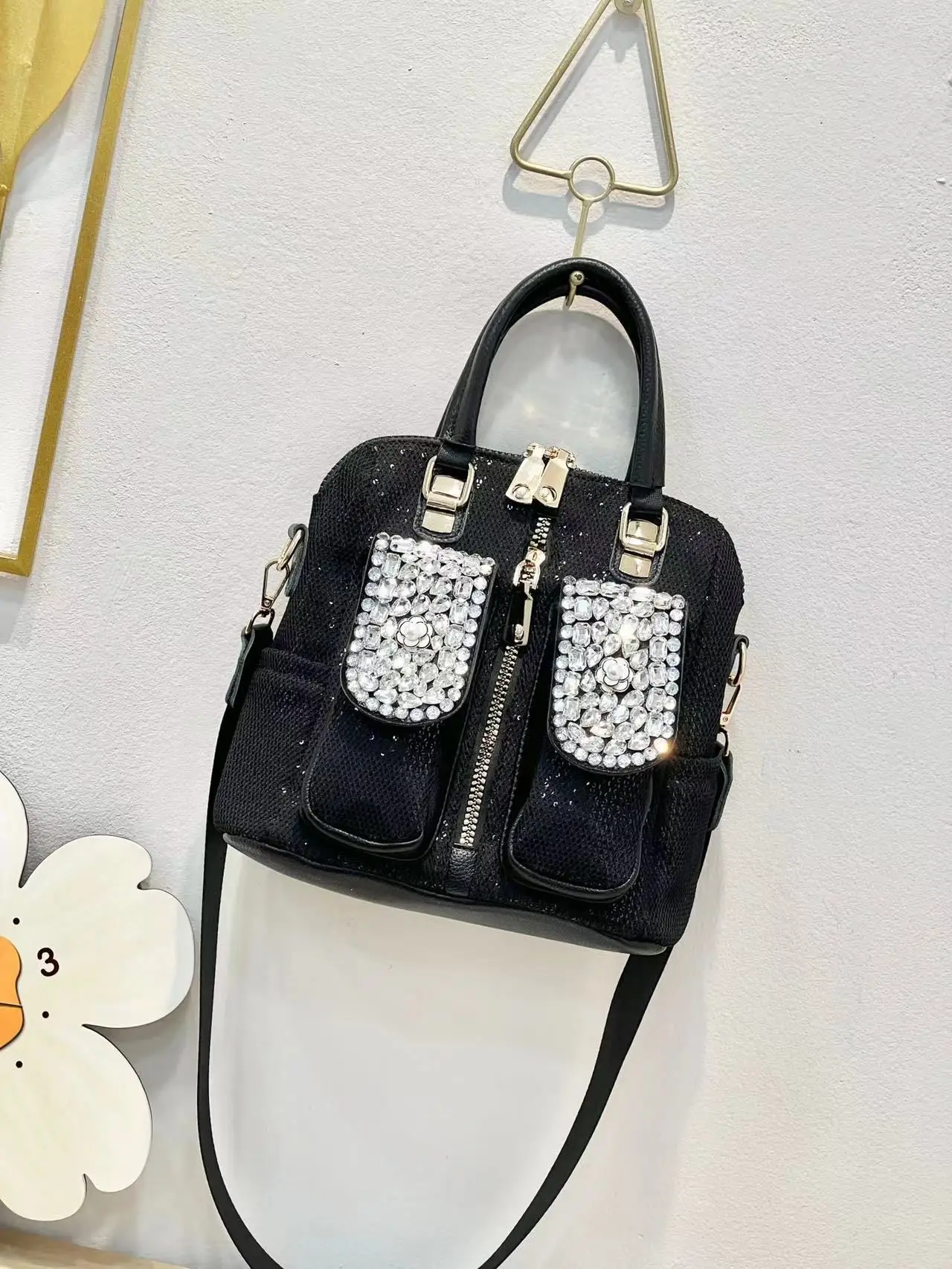 Diamond-set sequins bag2024 New Trendy Women's Bag Casual Contrast Color Hot Rhinestone Shoulder Crossbody Three-purpose Bag
