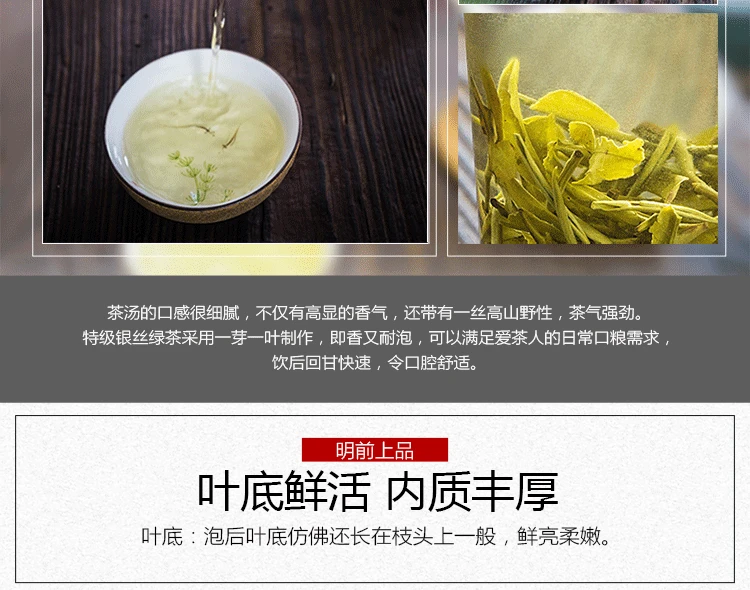 Silvery tips mix with bold, olive green leaves in this classic green tea from Yunnan province. Made from premium spring tips, it is unrolled, leaving the fat, silvery leaves mostly unbroken. Quite like white tea in appearance, it also makes for a fantastically smooth cup, reminiscent of white tea and with delicate floral notes. Grown at an elevation of 1800m, this tea come from wild growing bushes whose leaves and buds are plucked in early spring.