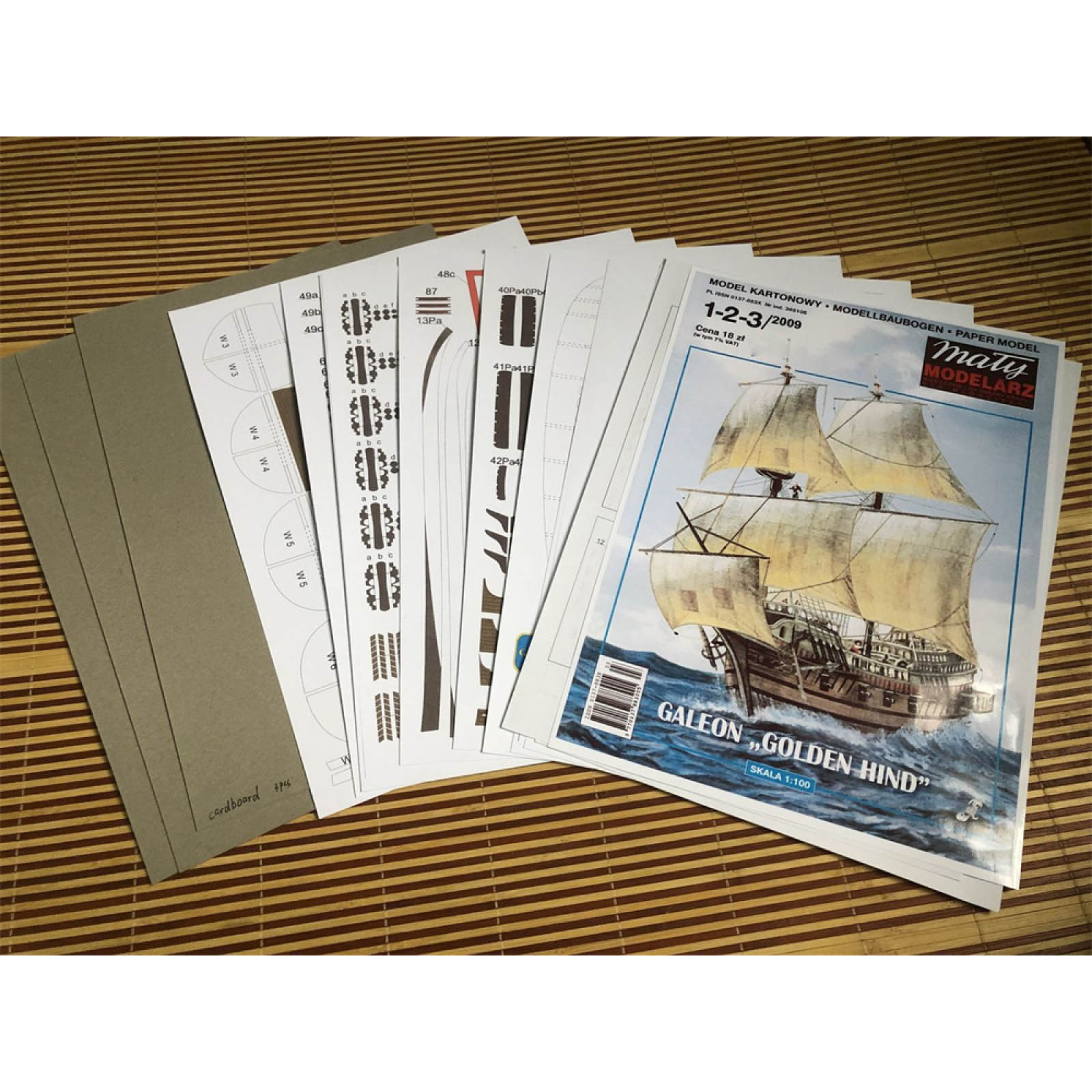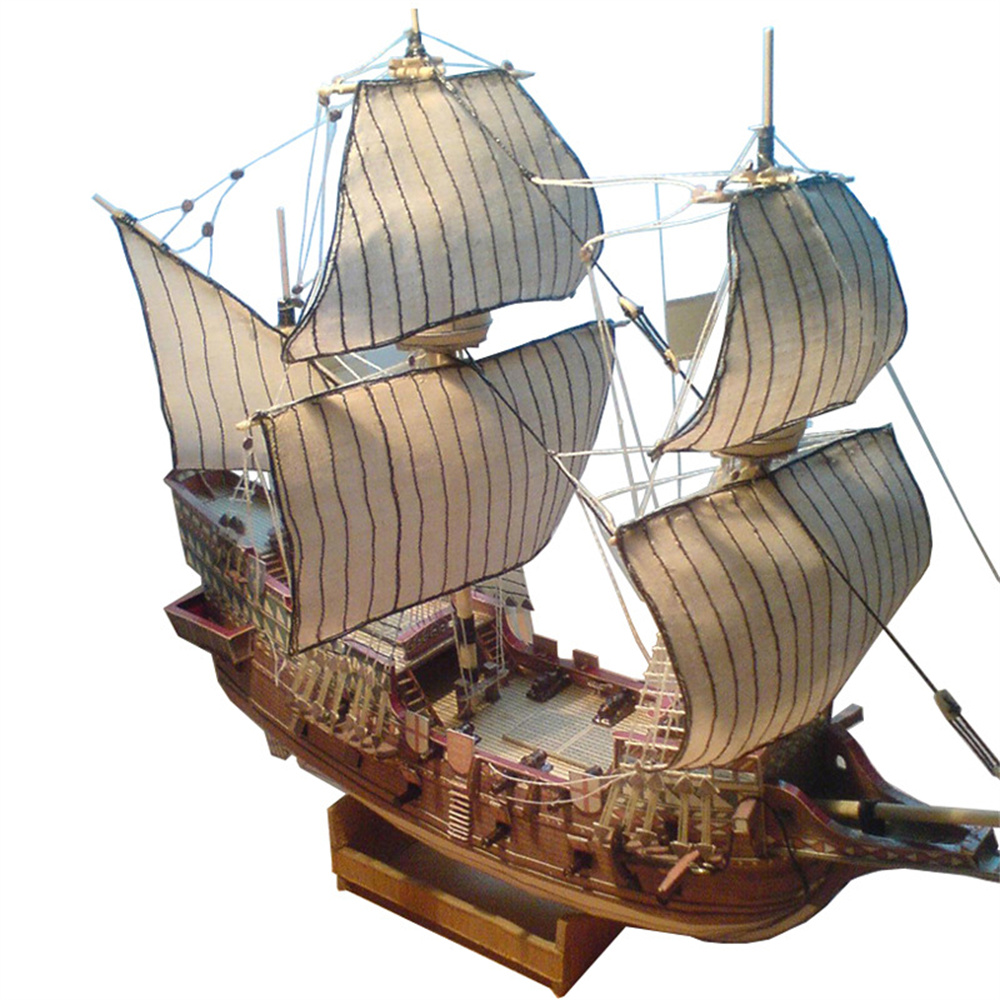 DIY 1:100 Galeon Golden Hind Sail Battleship Paper Model Sailboat Sciene Display
