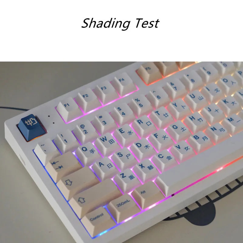 ◆ Opaque fonts. The keycaps can cover the switch light, prevent light escaping from the keycaps, and create a better side light effect.