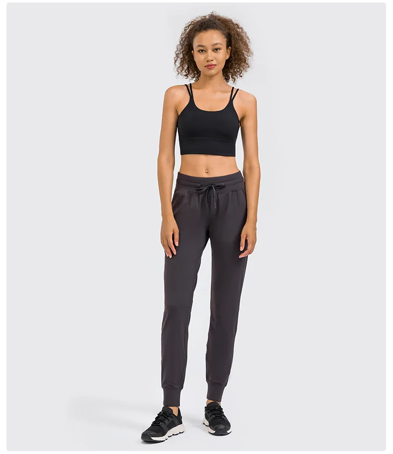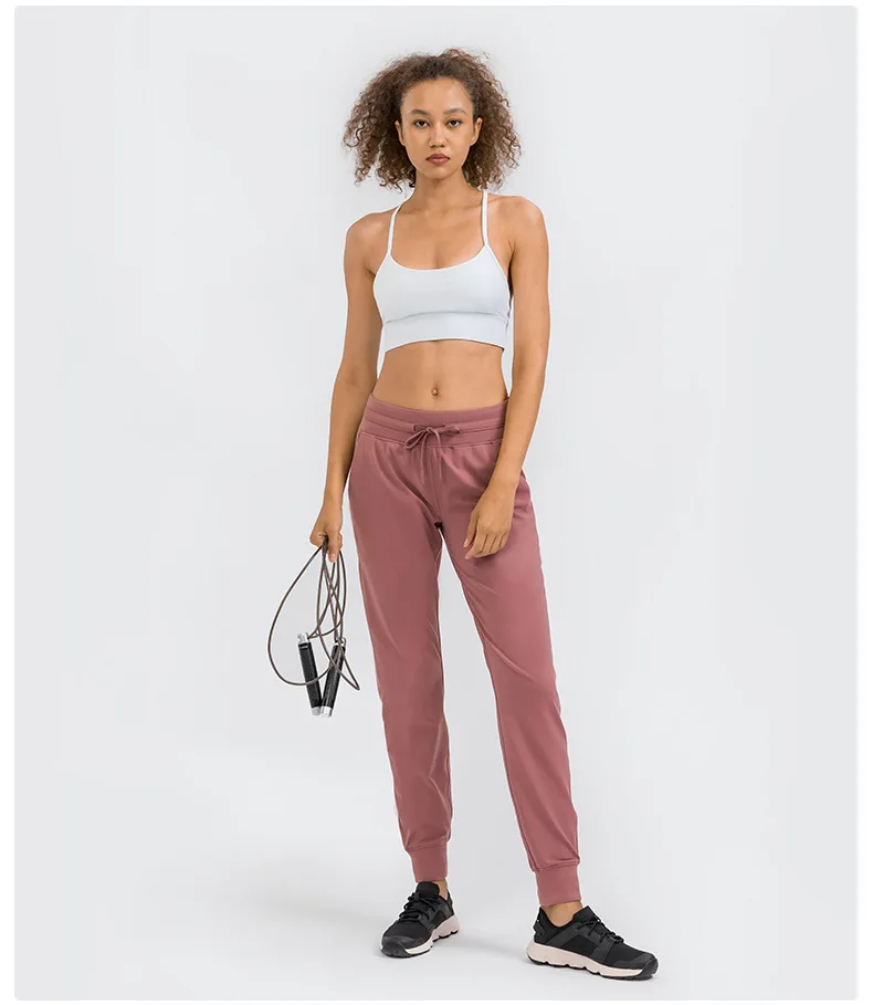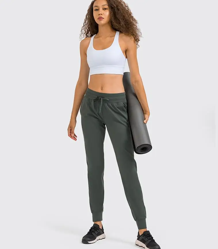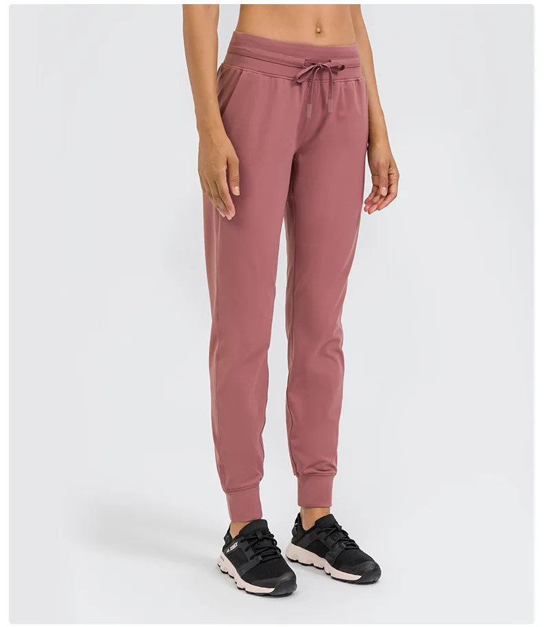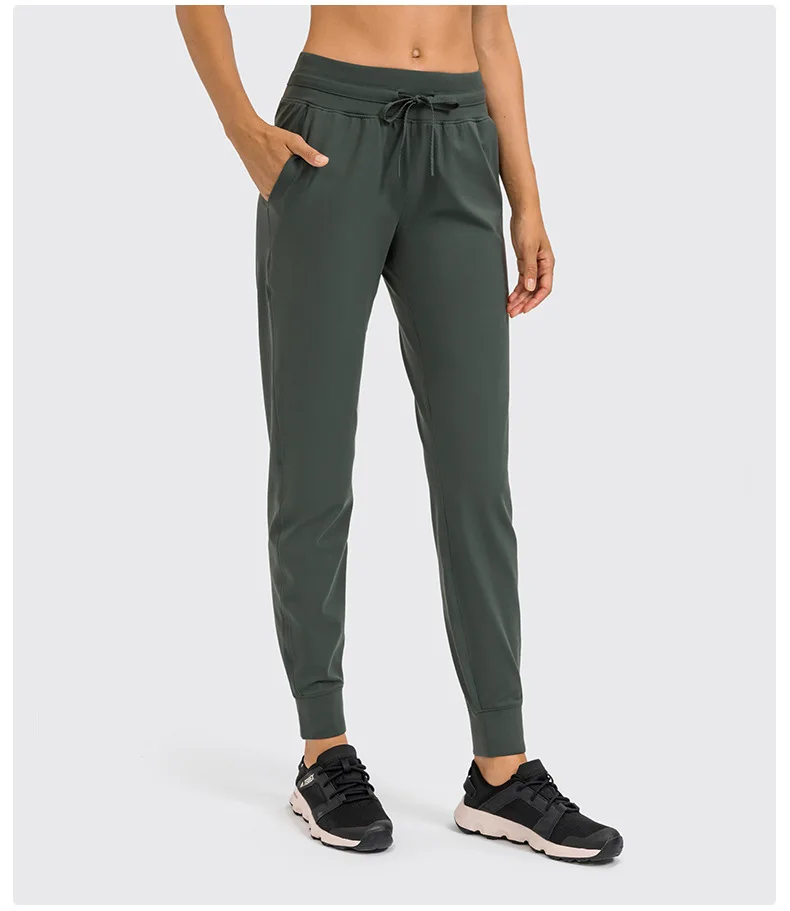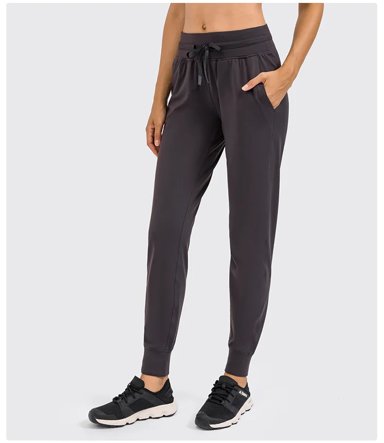 Drawstring Pants Fitness Women Sweatpants with Two Side Pockets 4-Way Stretch Leggings Lady Stretchy Pants