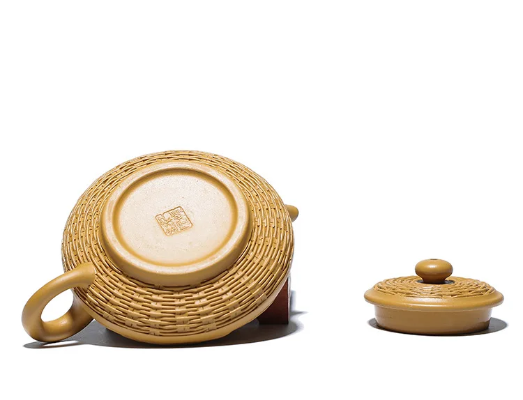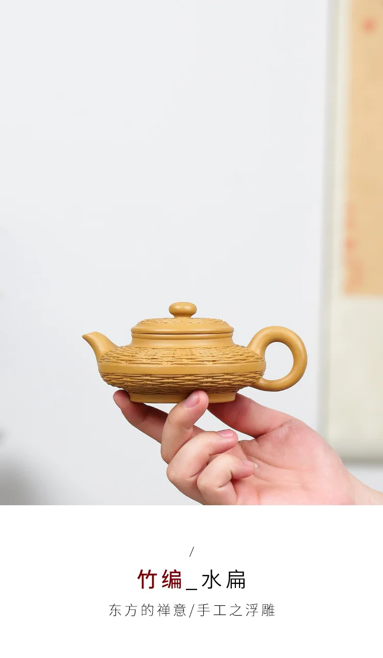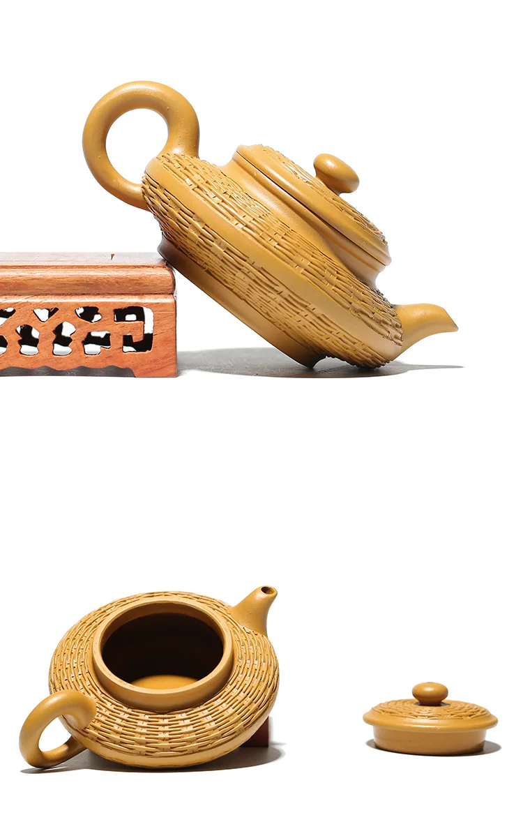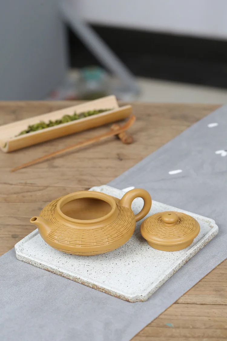 Duan mud purple clay pot Bamboo woven water flat pot
