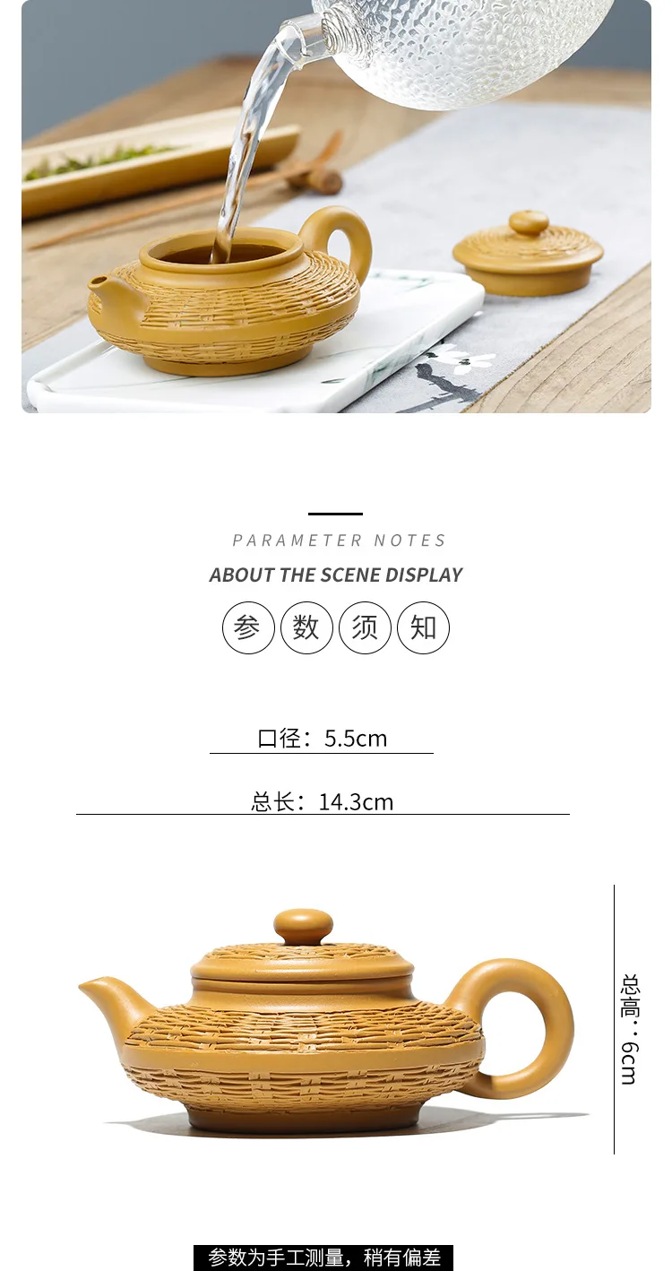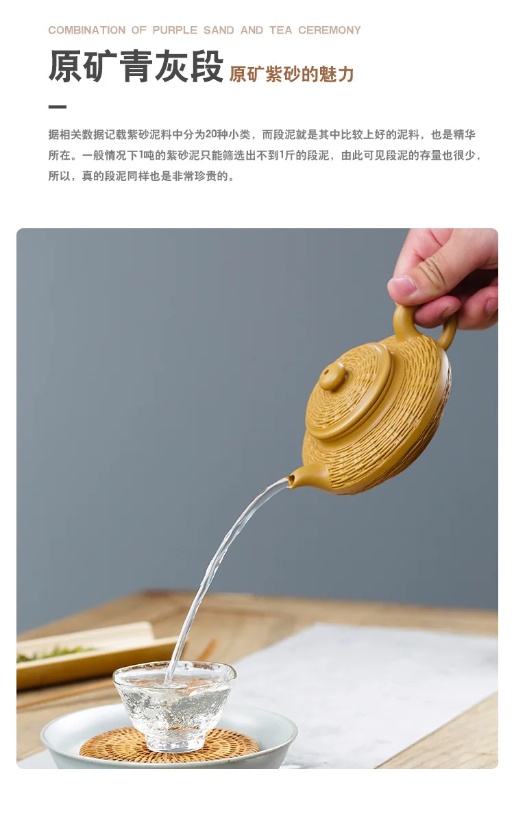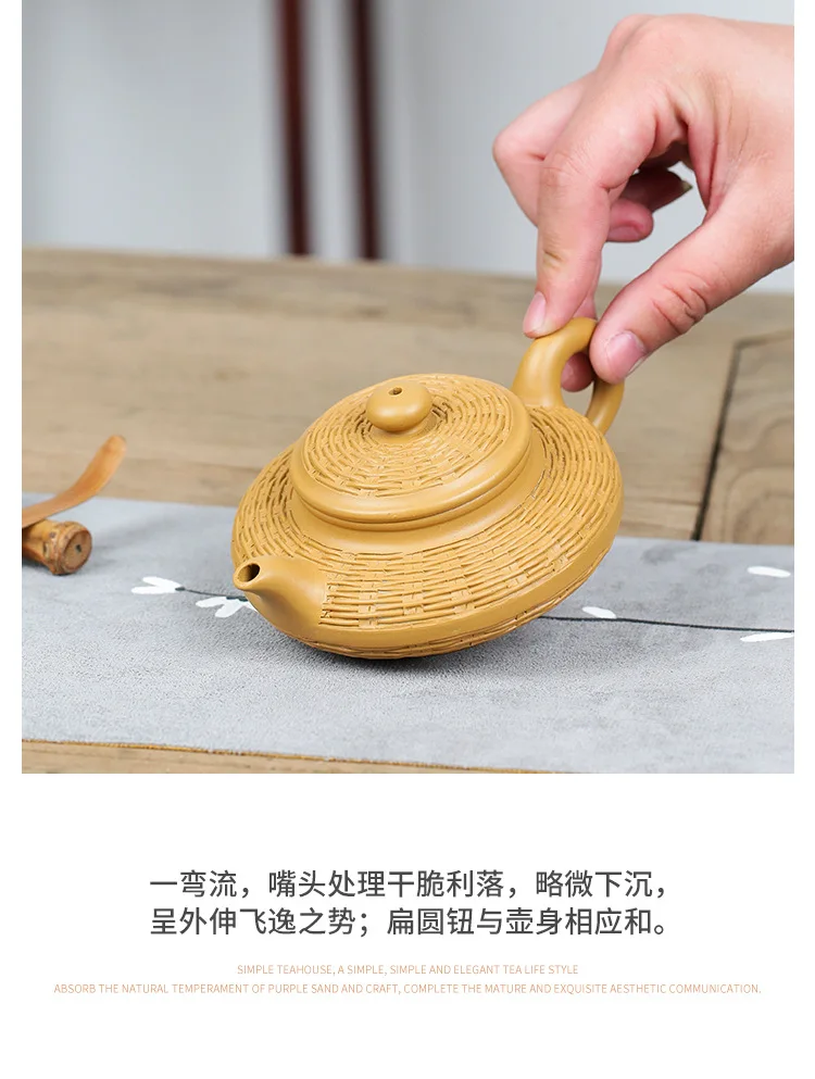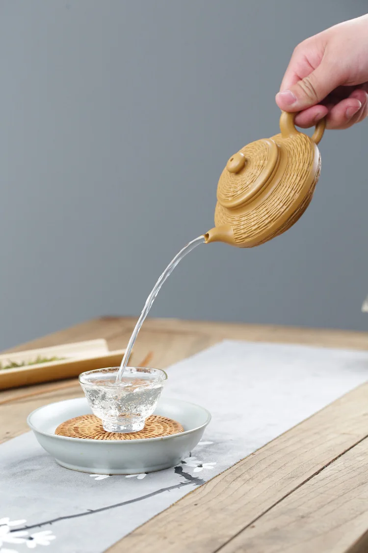 Duan mud purple clay pot Bamboo woven water flat pot