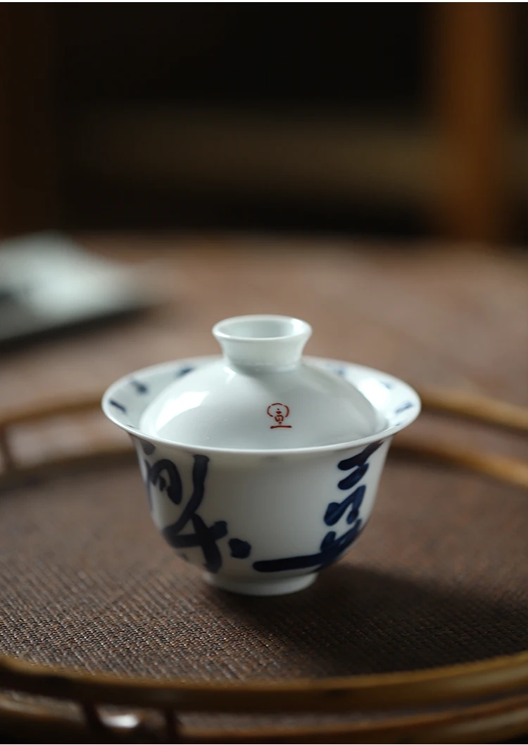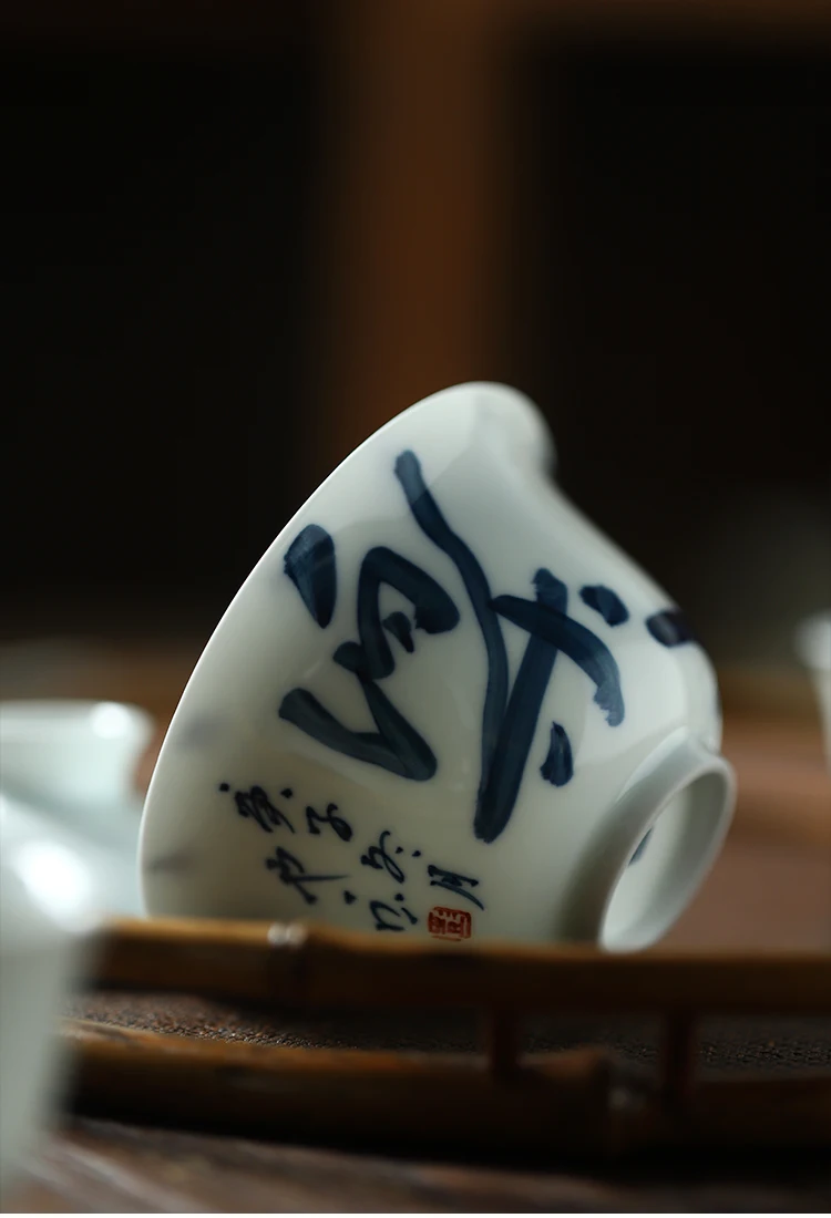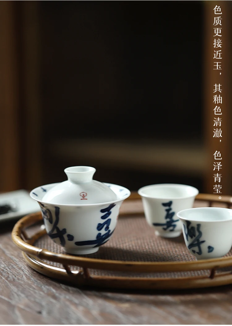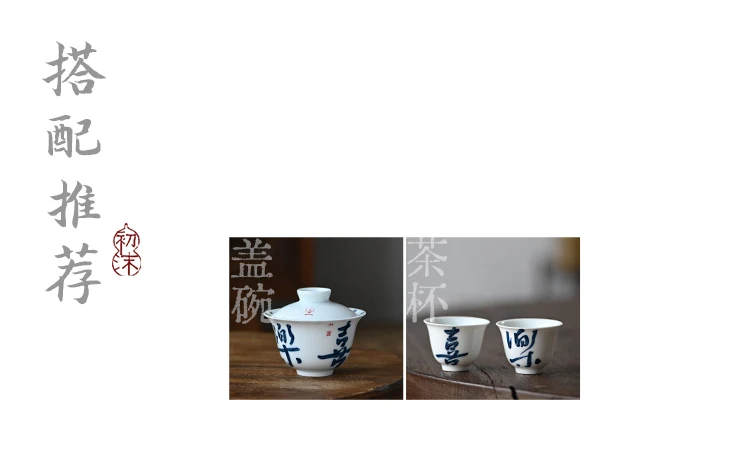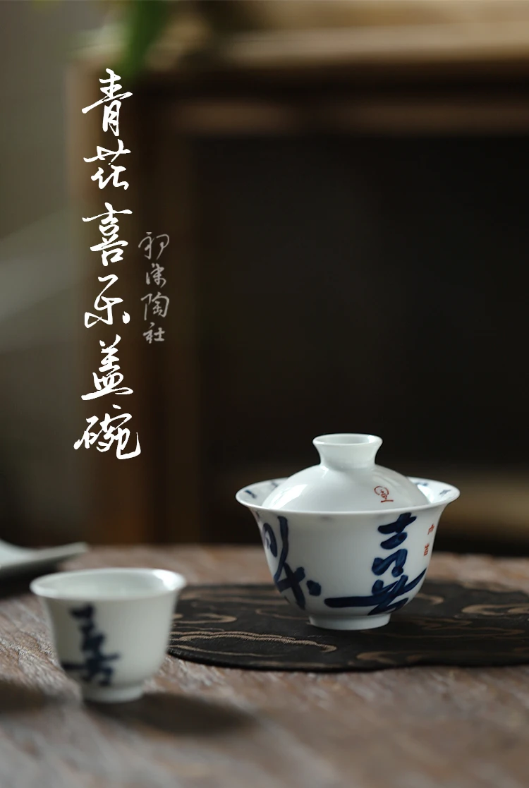 Early foam hand-painted porcelain handwritten calligraphy joy mini tureen hot ceramic kung fu tea cups