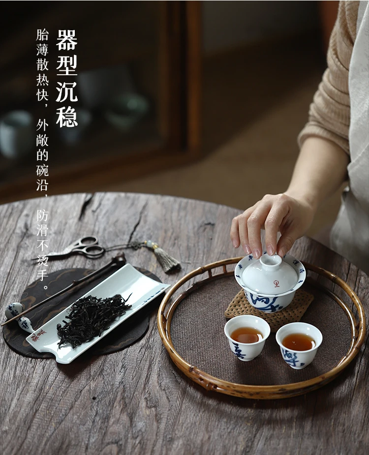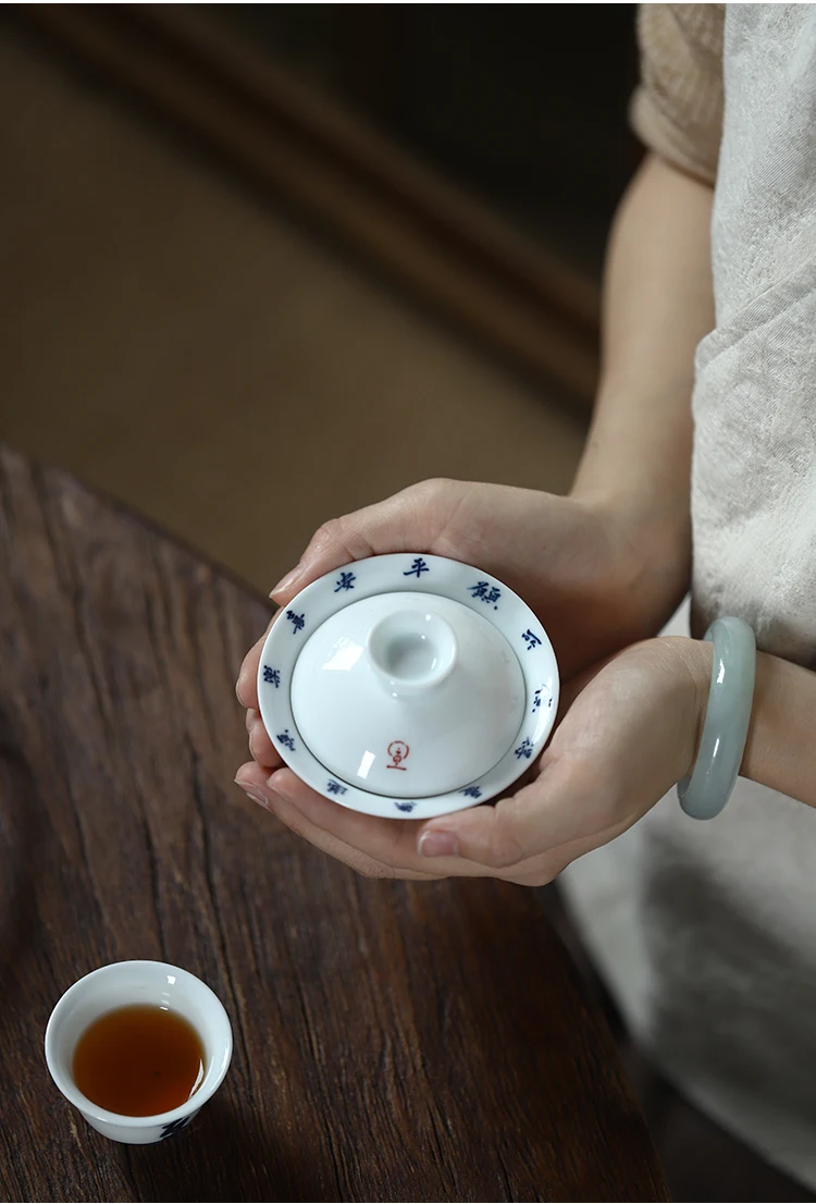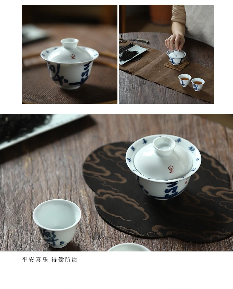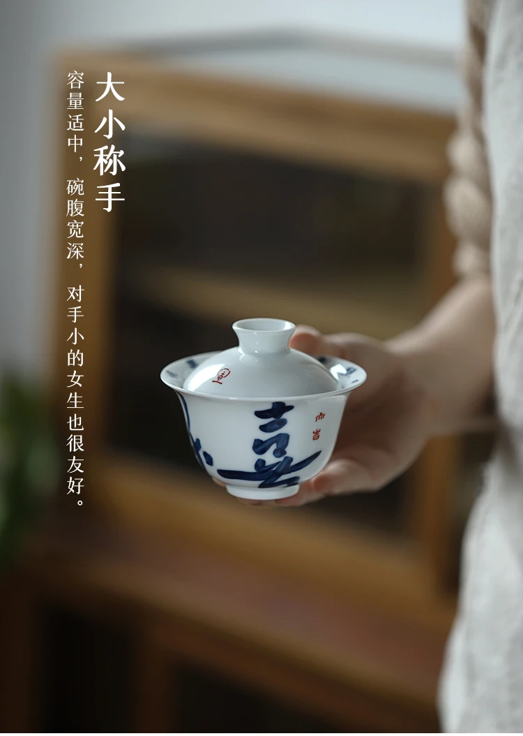 Early foam hand-painted porcelain handwritten calligraphy joy mini tureen hot ceramic kung fu tea cups