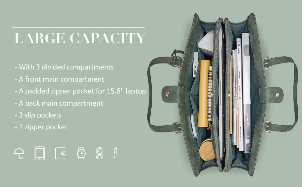 LARGE CAPACITY WITH 3 LAYERS: 3 layers designed for different uses to achieve maximum capacity.The independent padded pocket in the middle protects up to 15.6" laptop. The other two side compartments ideal for storing all of your essentials.