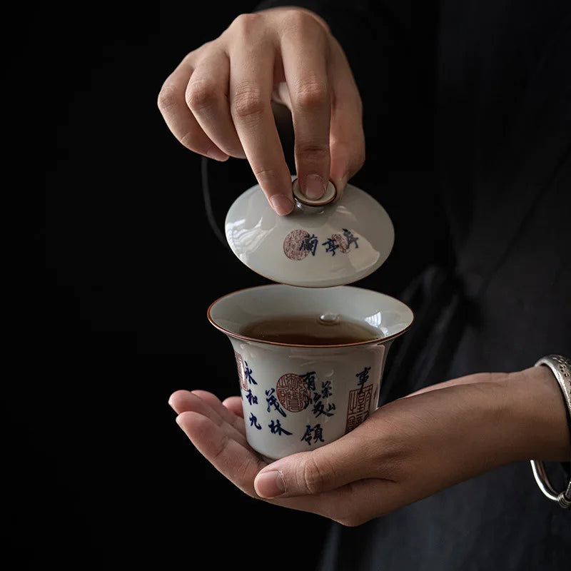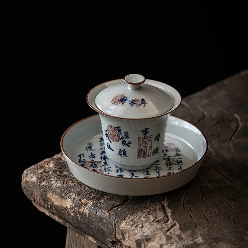 Elegant Porcelain Gaiwan Tea Set with Lid Chinese Lanting Xu Ceramic Tea Pot Tea Tureen Gongfu Sancai Tea Bowl Tea Cup Set