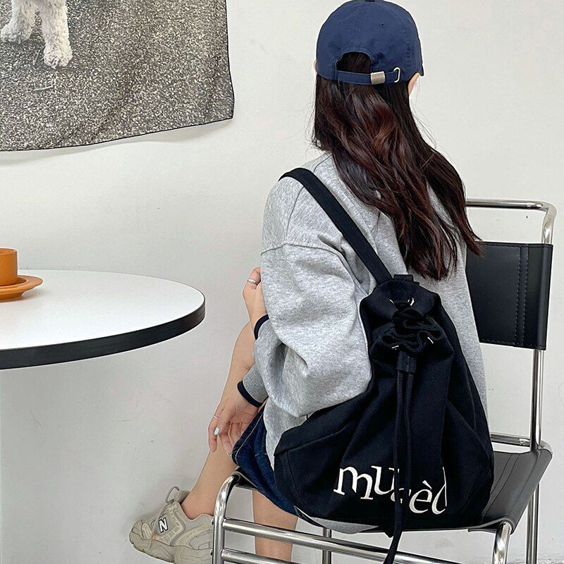 Embroidered Backpacks Canvas Drawstring School Bags Large Capacity Green/Brown