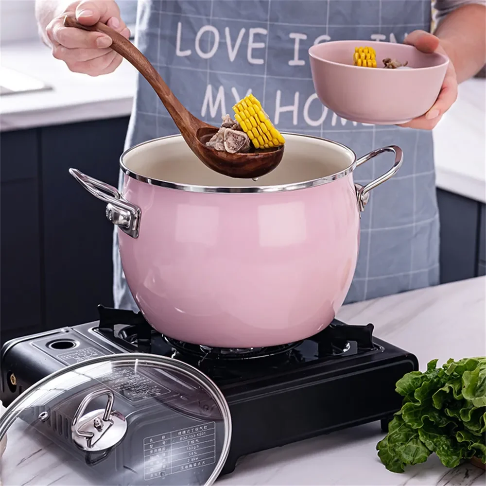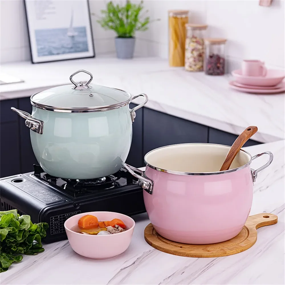 Enamel on steel is available in tea kettles and a specific stock pot for fast heating and durable usage.