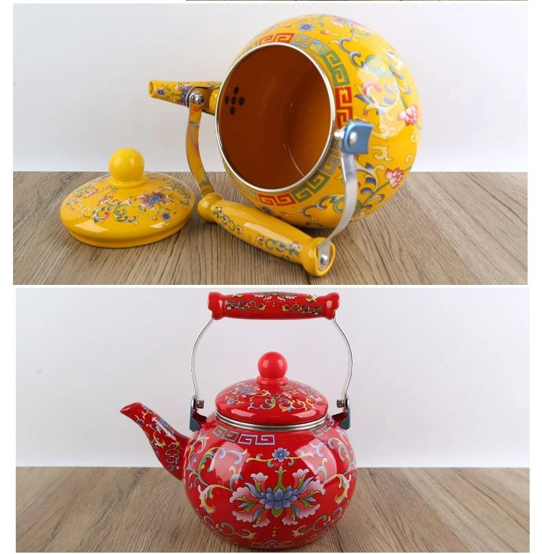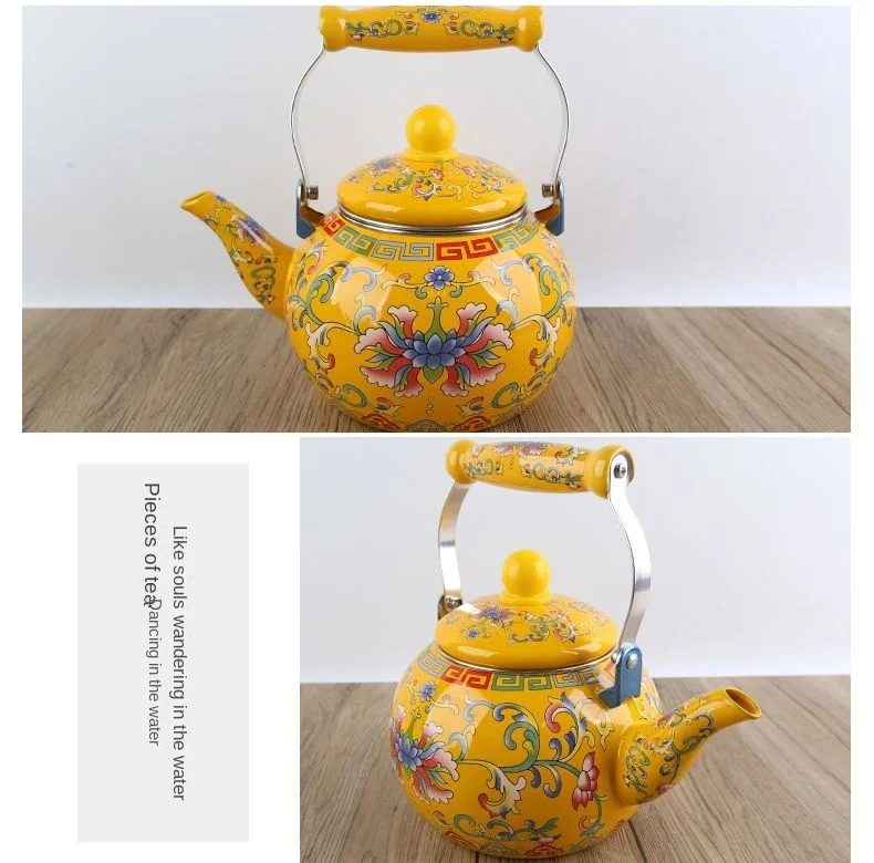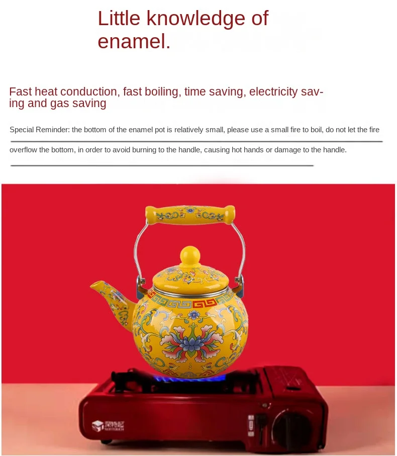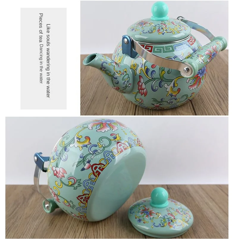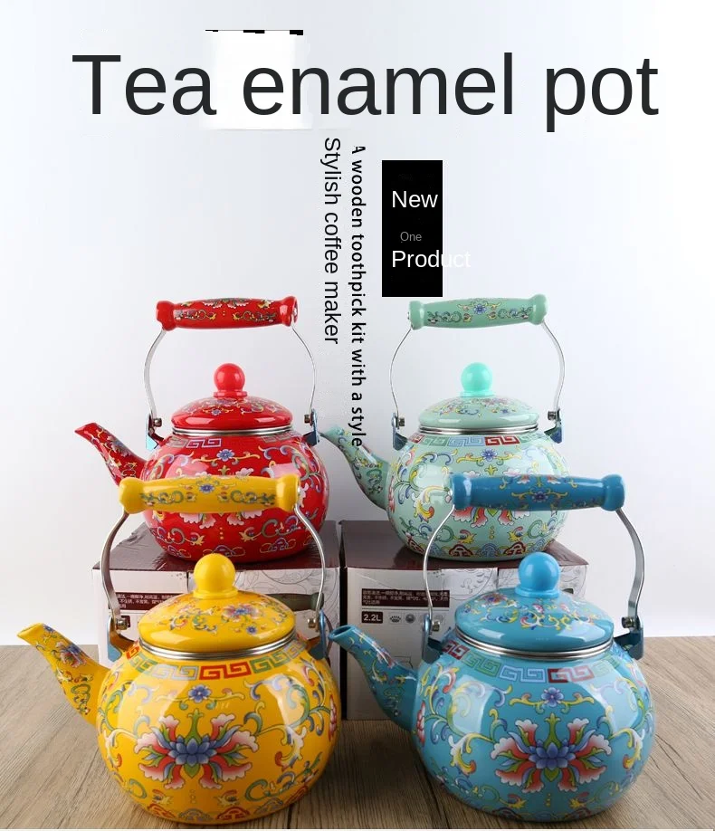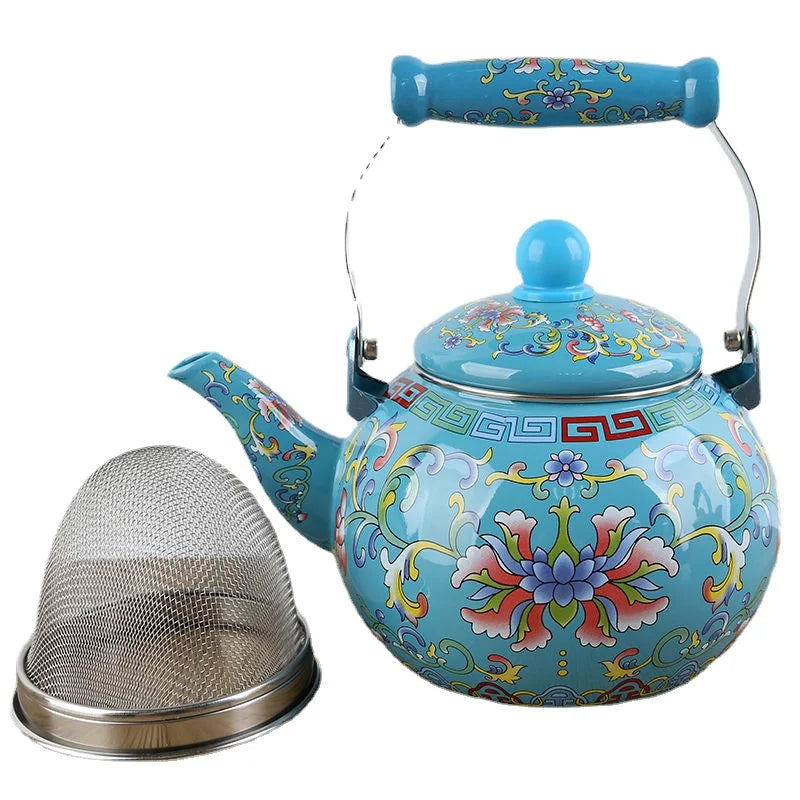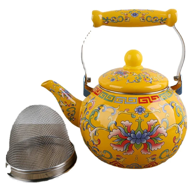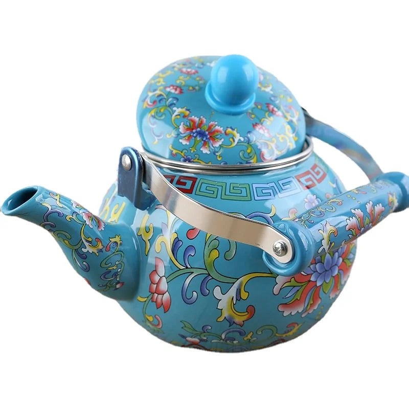 Enamel Teapot with Heat-Resistant Handle - Round Shaped Pot Suitable for Making Milk Tea, Coffee, or Herbal Tea