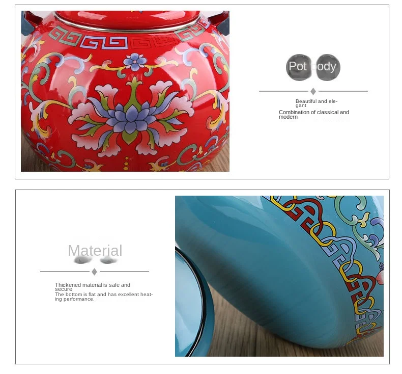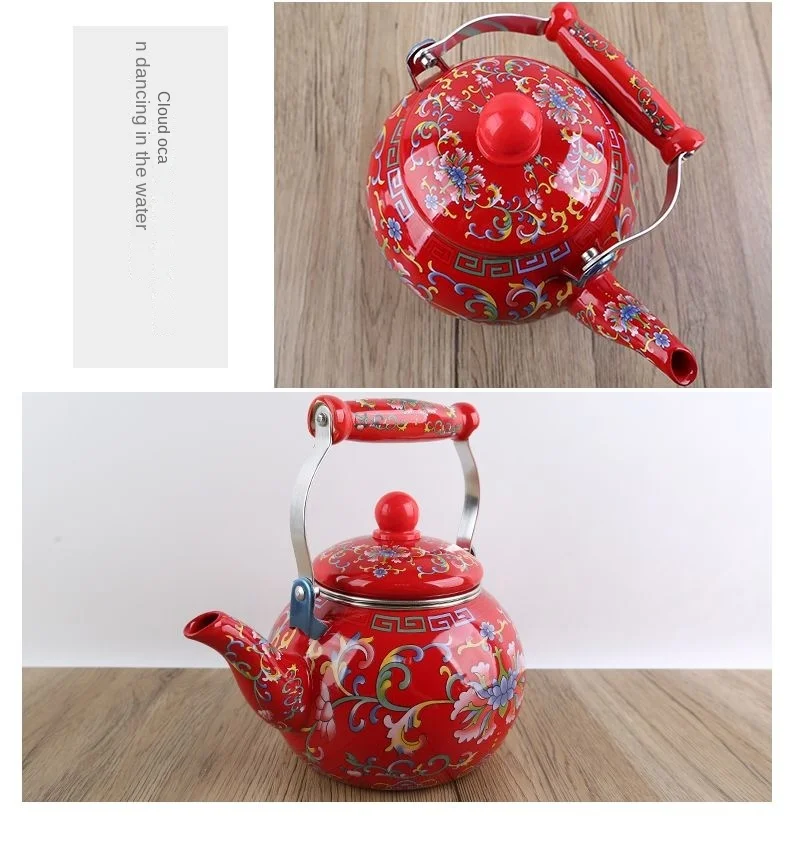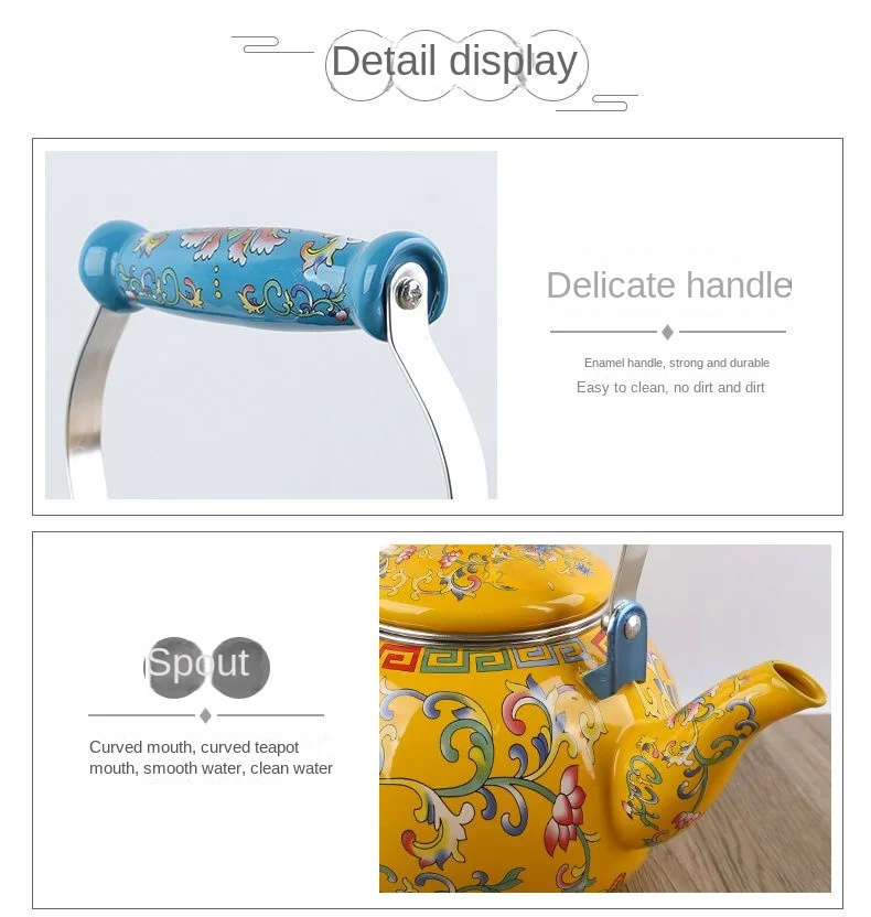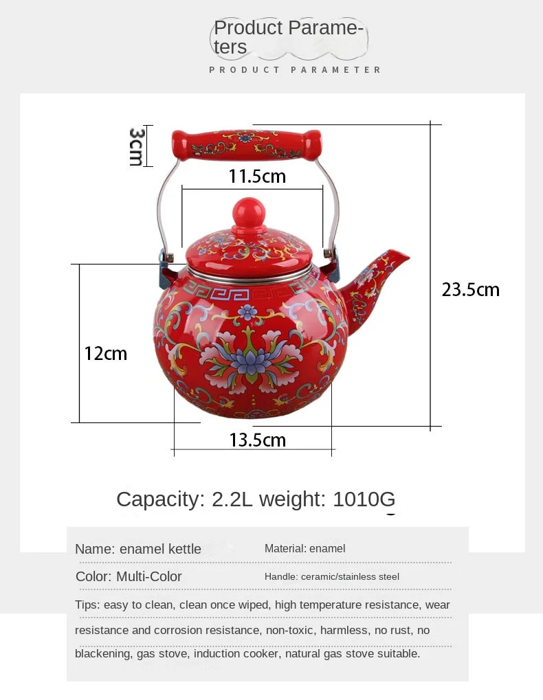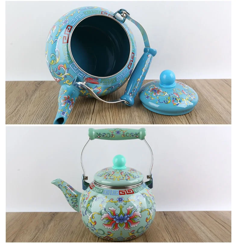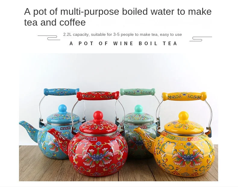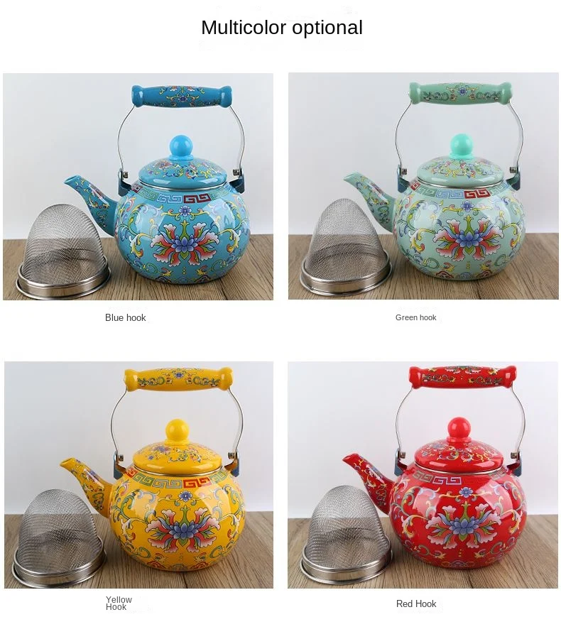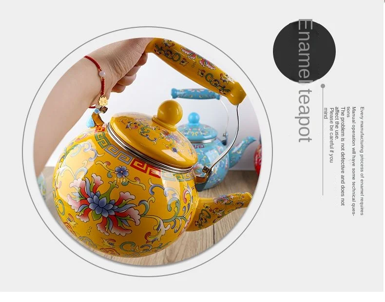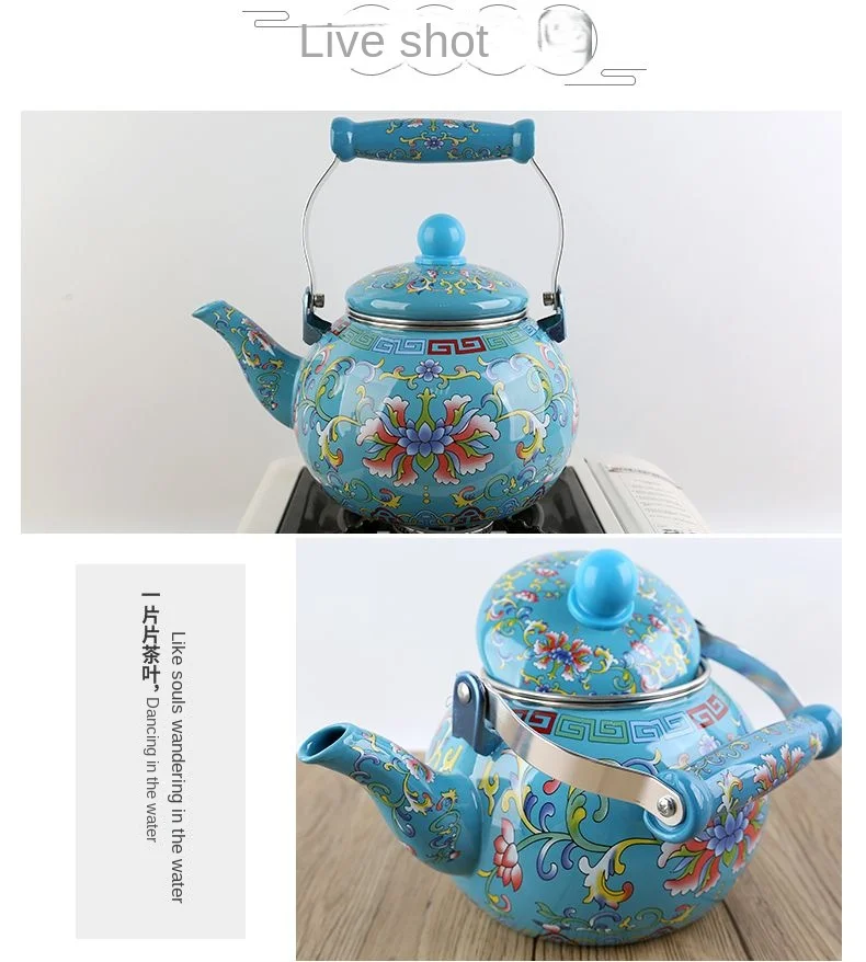 Enamel Teapot with Heat-Resistant Handle - Round Shaped Pot Suitable for Making Milk Tea, Coffee, or Herbal Tea