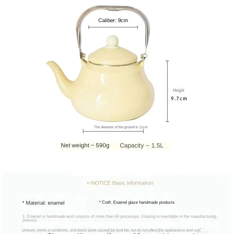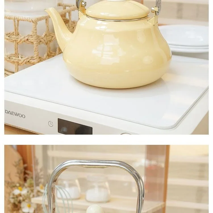 Enamel Yellow 1.6 Litre Thickened Kettle Teapot Metal Anti-scalding Handle for Gas Induction Cooker