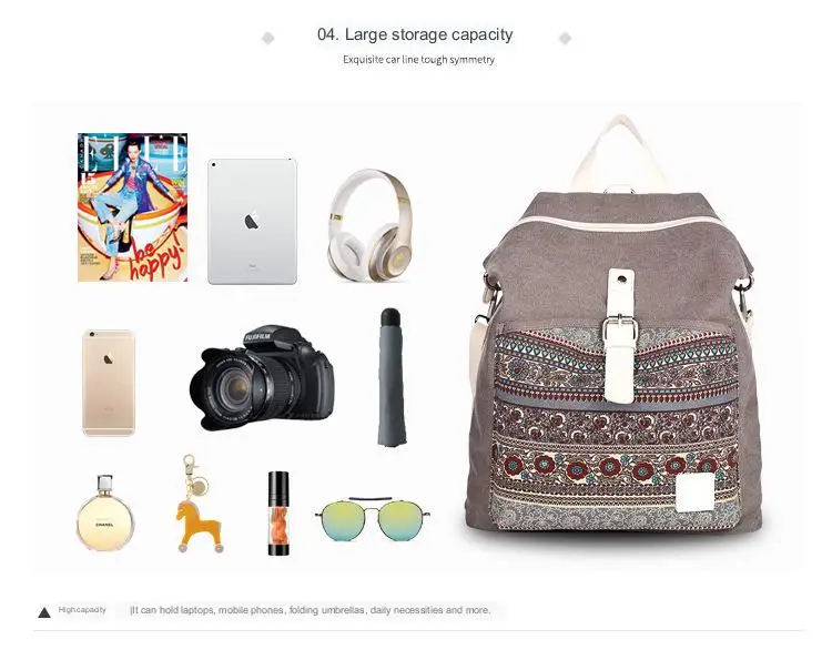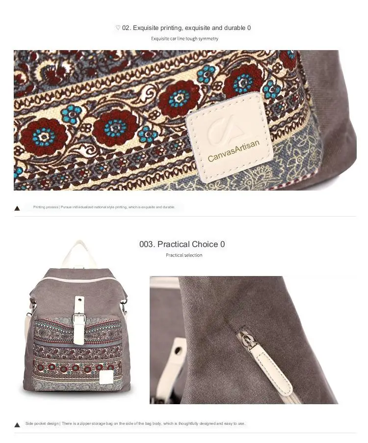 Convertible bohemia backpack purse comes with 2 sturdy adjustable shoulder straps, easy to switch from backpack to purse, it has the function of a school backpack /bookbag purse at the same time.