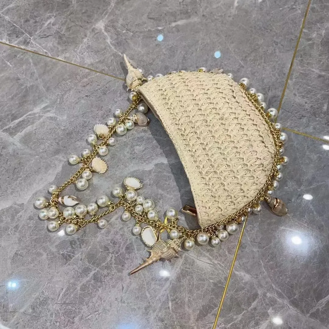 Fairy Pearl Conch Grass Woven Bag Handheld Crossbody Bag Small Mobile Phone Bag