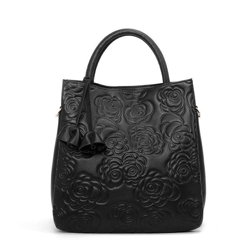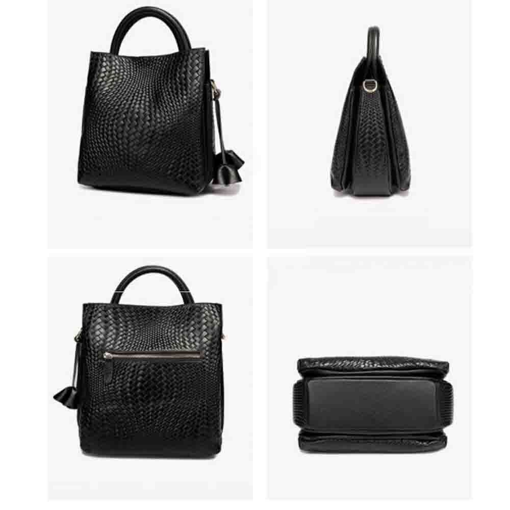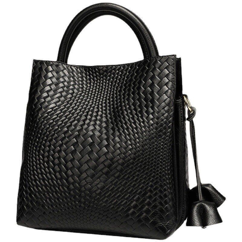 Fashion Bucket Bag Genuine Leather Handbag Purses Soft Casual Tote Bags Cotton