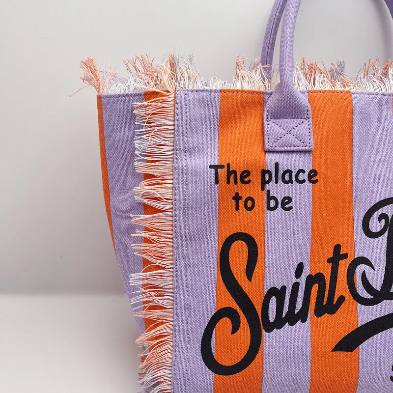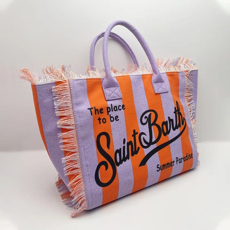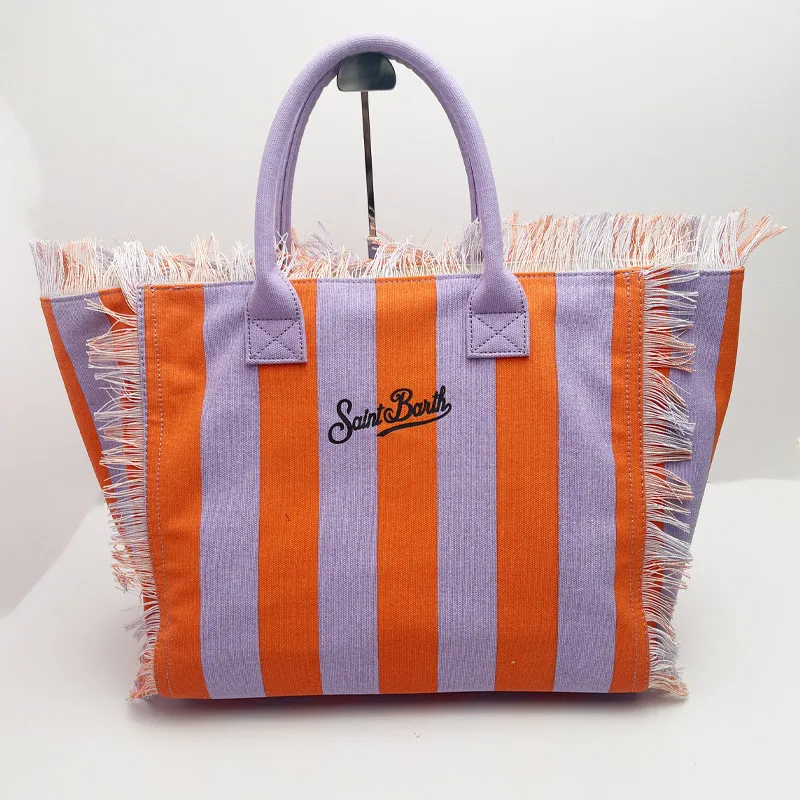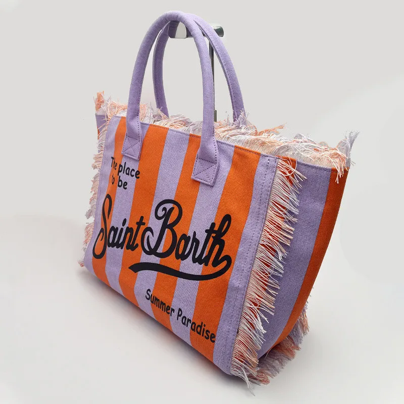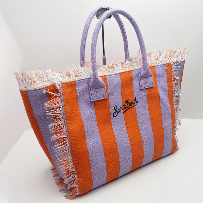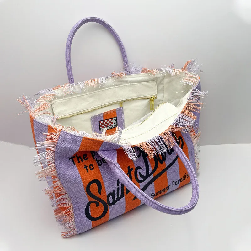 Fashion Comfortable Casual Travel Canvas Bag Striped Handmade Tassel Handbag Light Luxury New Women's Large Capacity Tote Bag