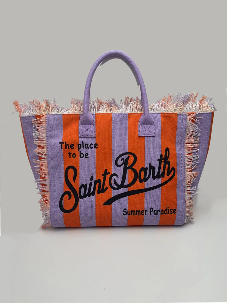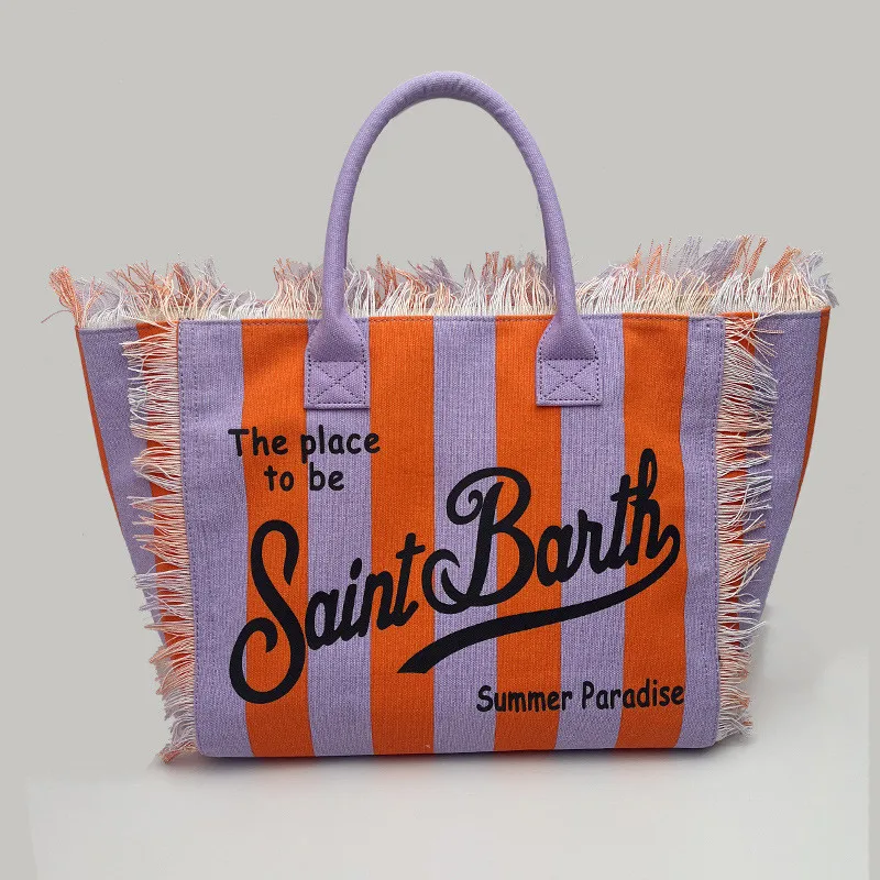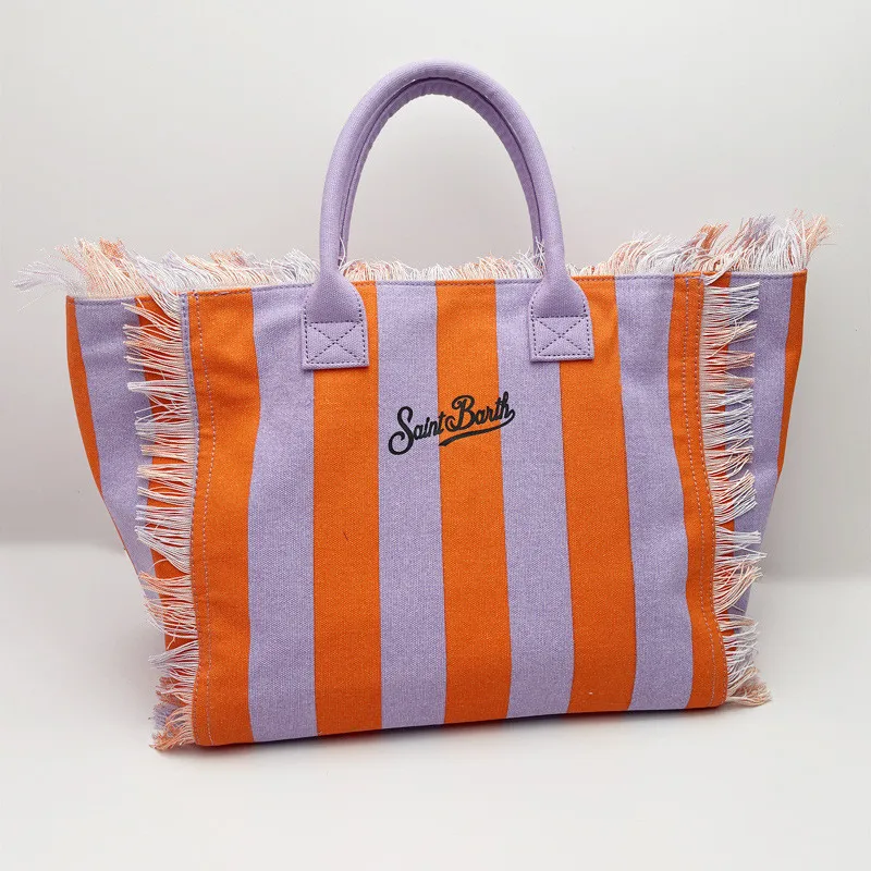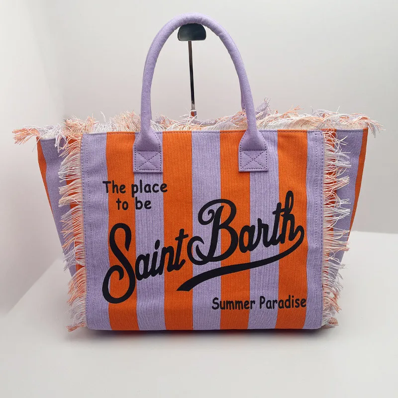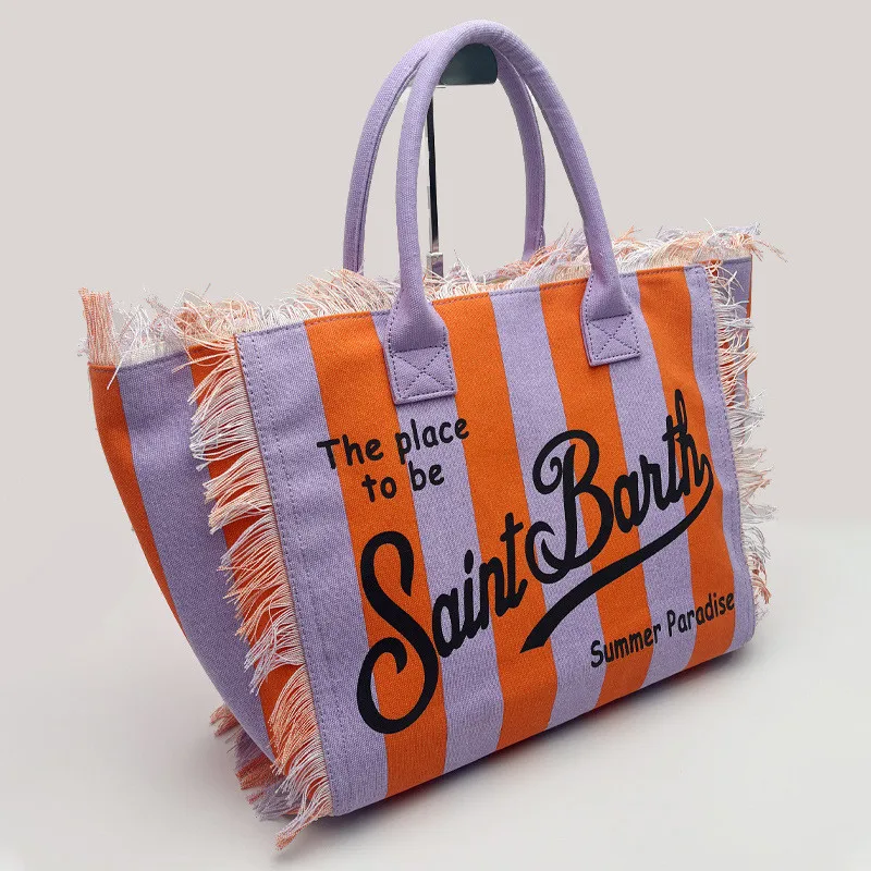 Fashion Comfortable Casual Travel Canvas Bag Striped Handmade Tassel Handbag Light Luxury New Women's Large Capacity Tote Bag