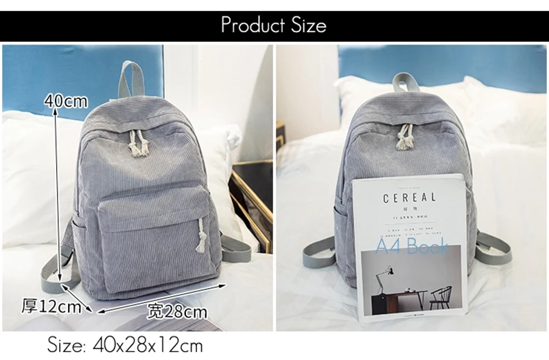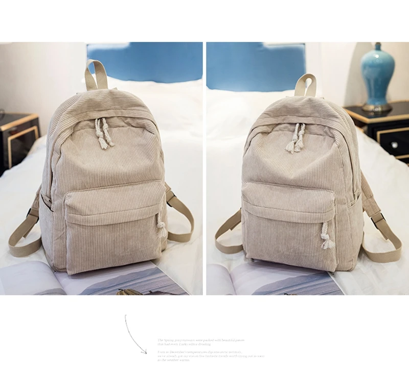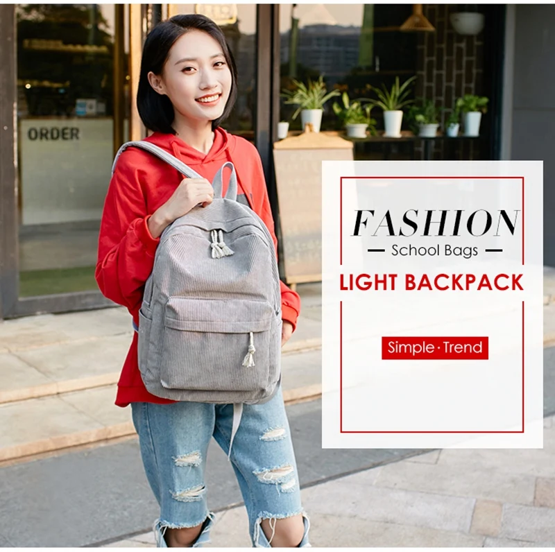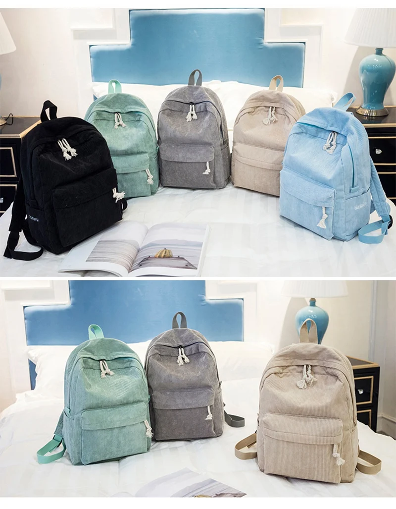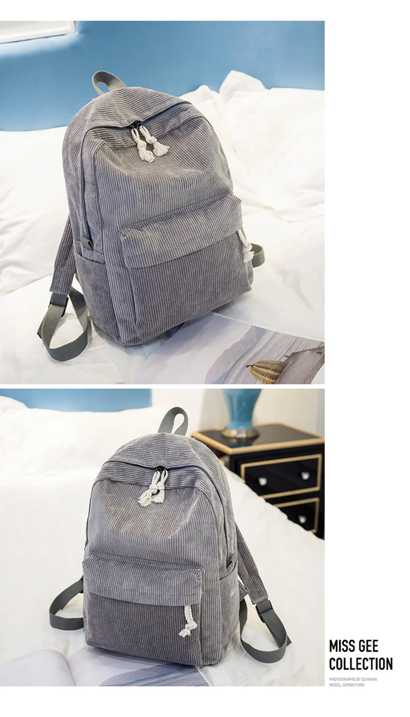 Fashion Corduroy Women Backpack Large Capacity Students School Bag for Girls Portable Teens Travel Bag for Book Laptop Clothes