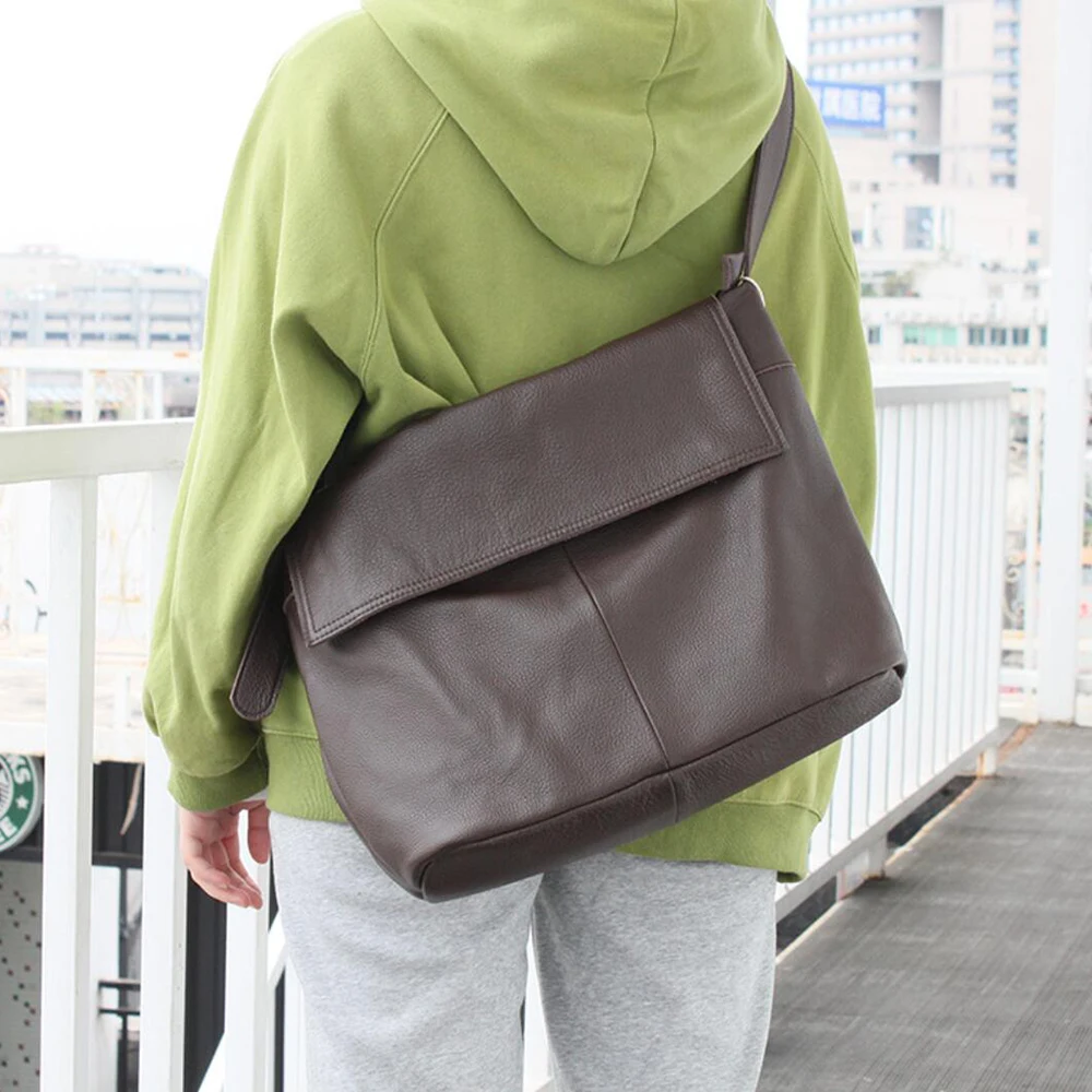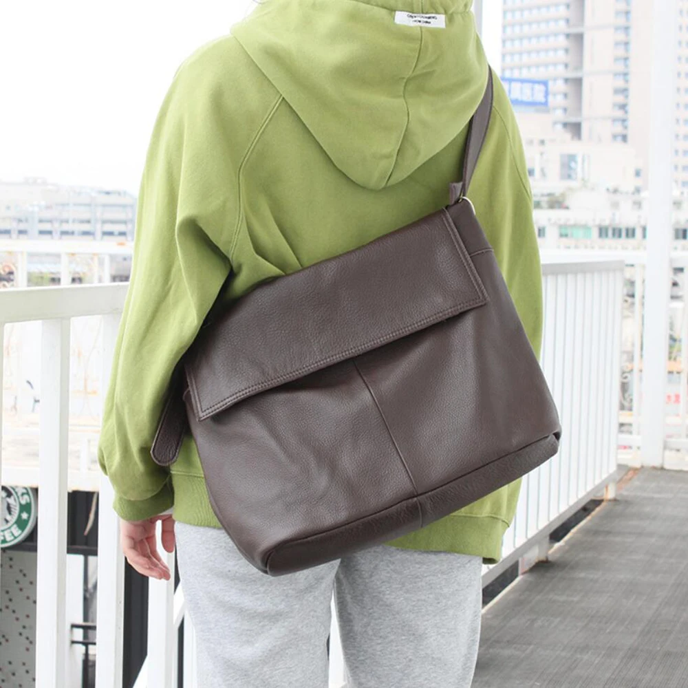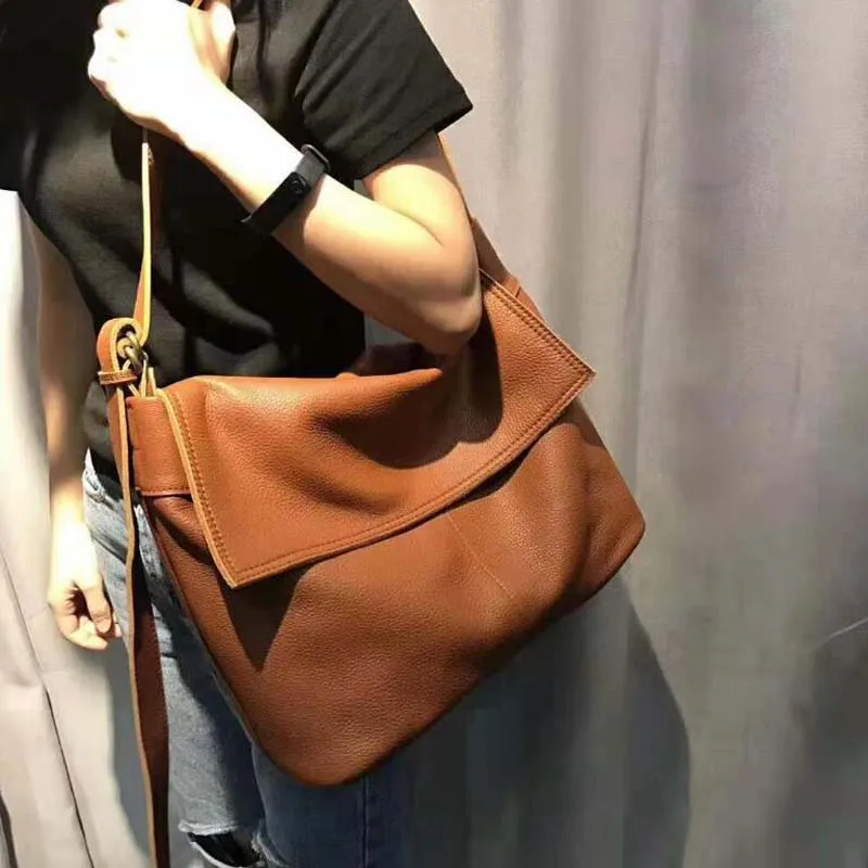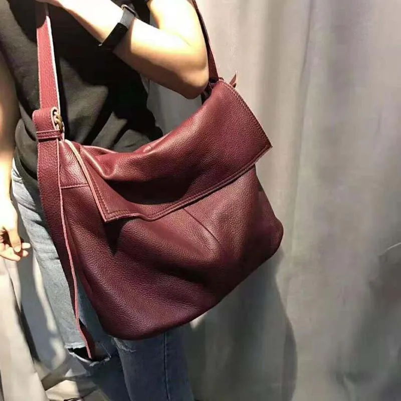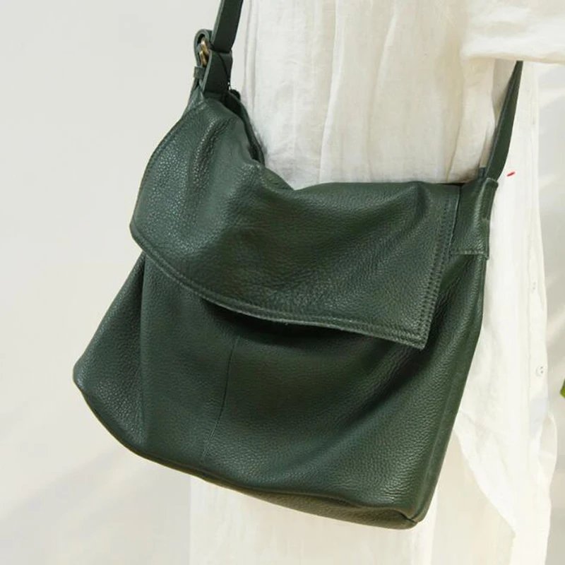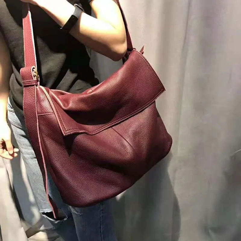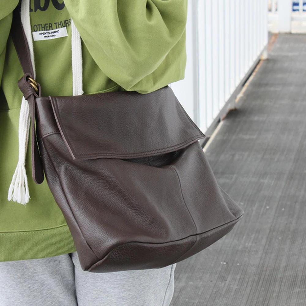 Fashion Genuine Leather Shoulder Bag Leisure Cover Leather Handbag for Woman Vintage Tote Lady Cowhide Messenger Bag Bolso Mujer