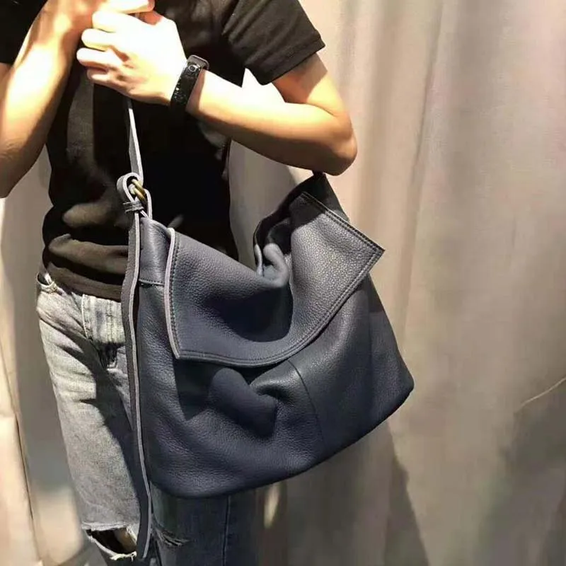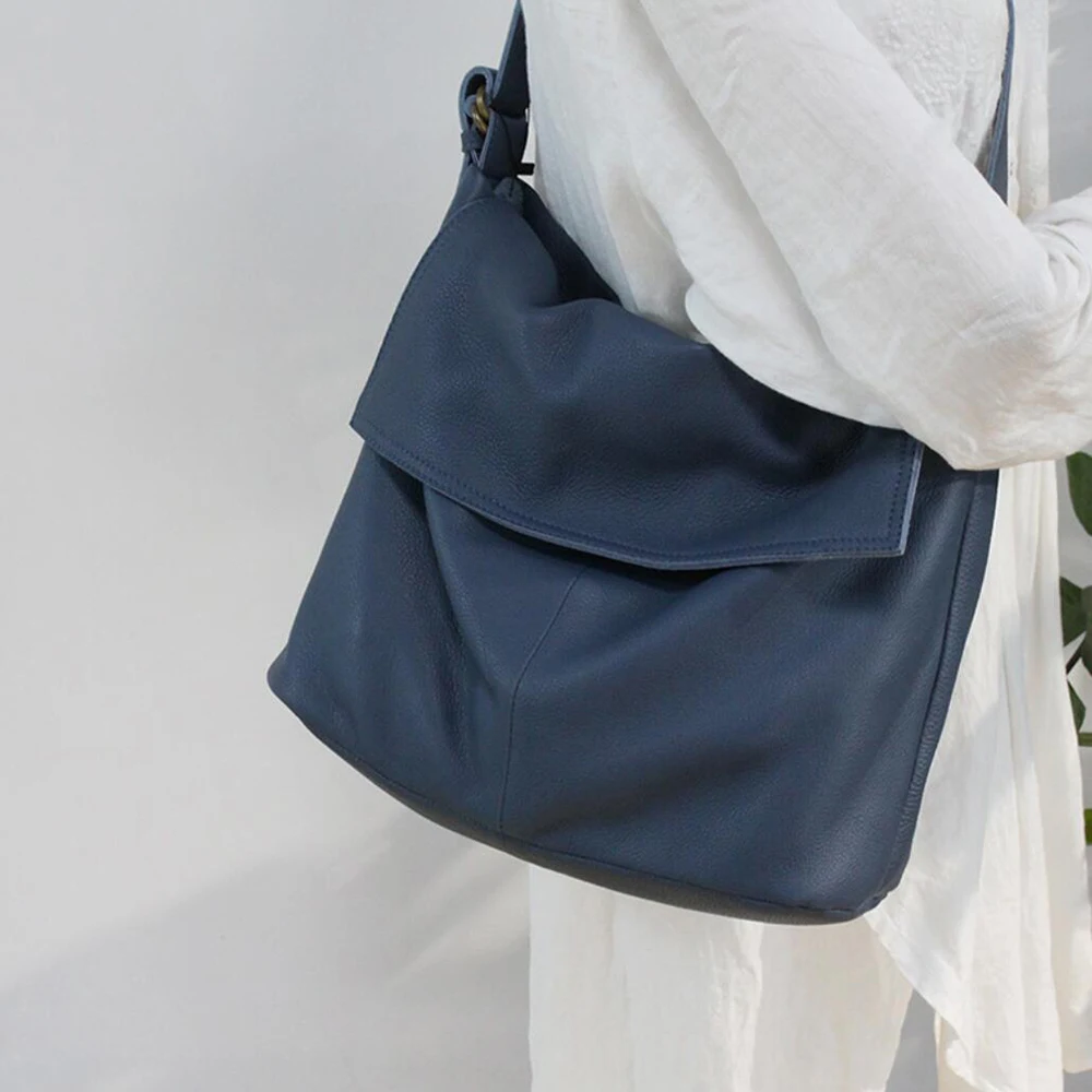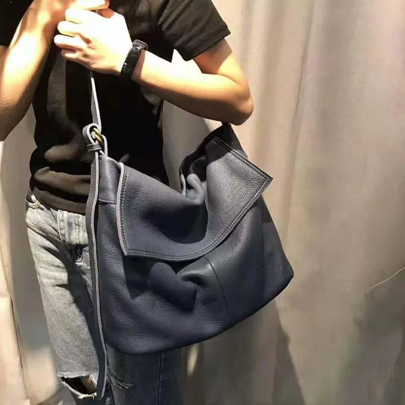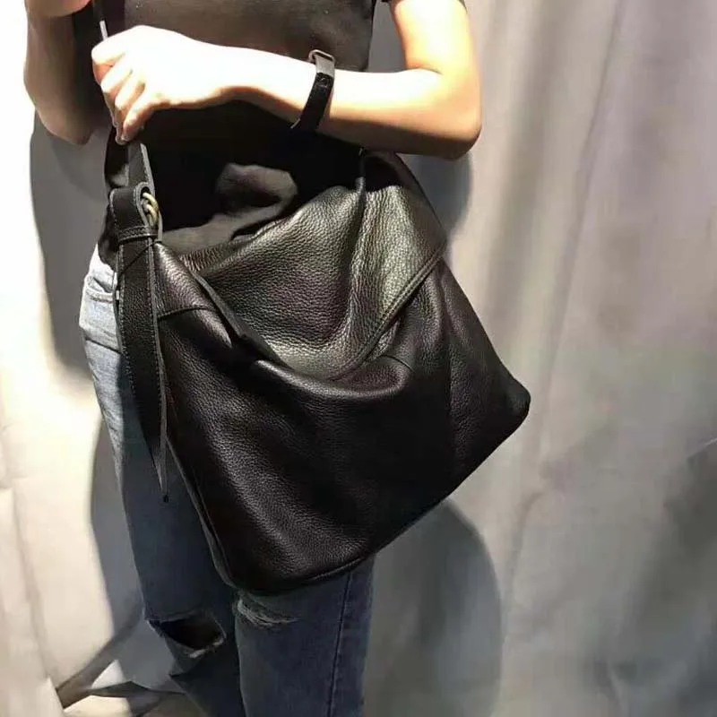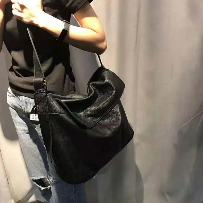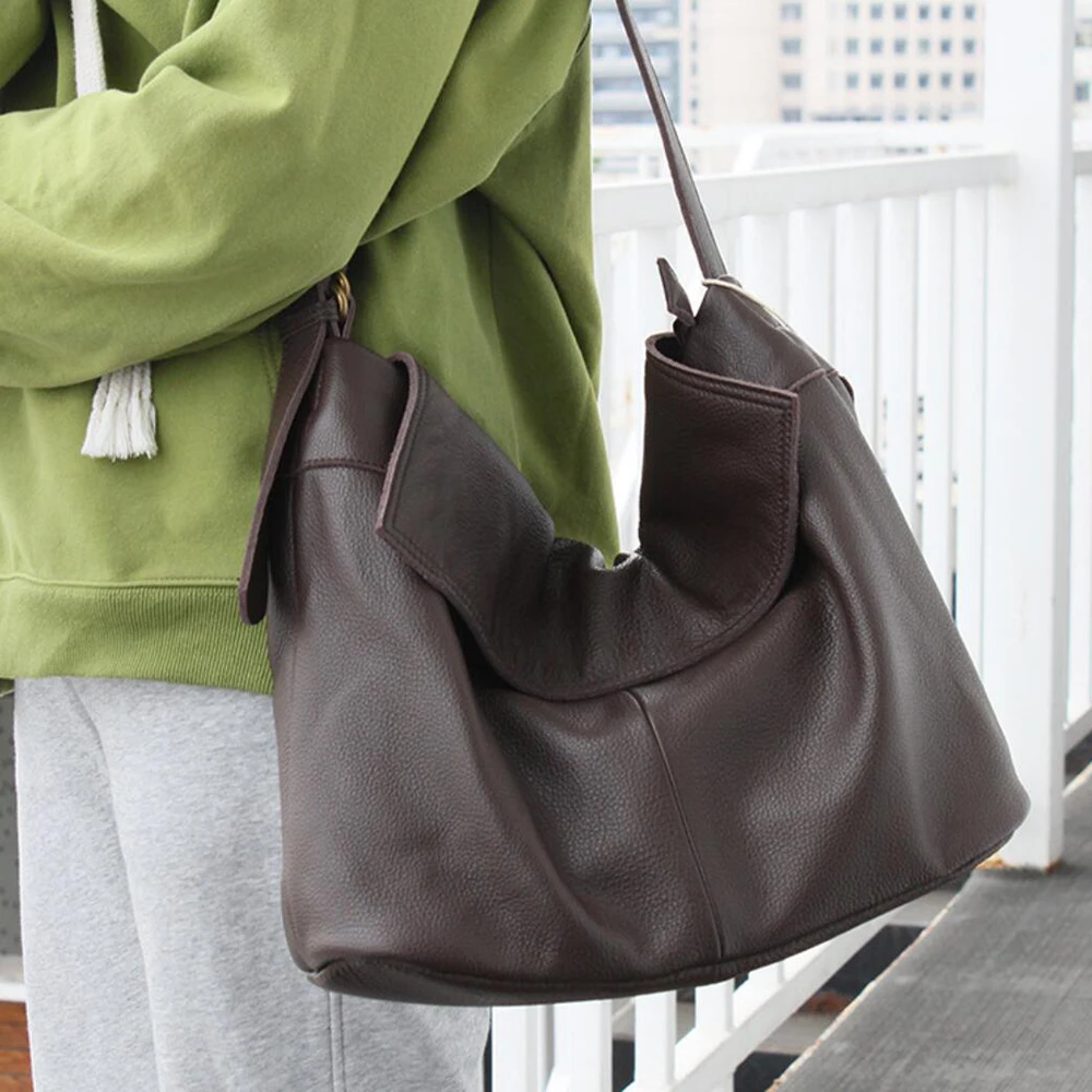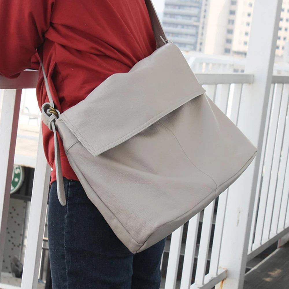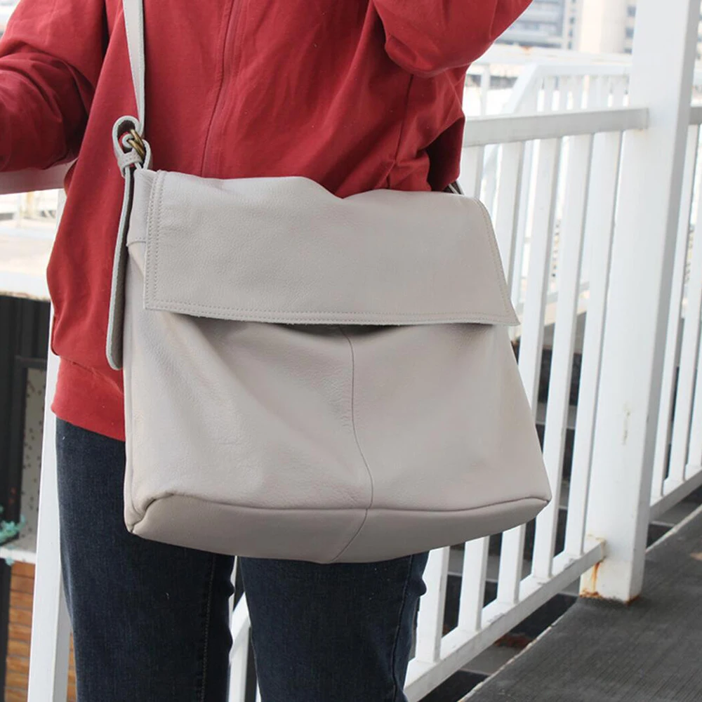 Fashion Genuine Leather Shoulder Bag Leisure Cover Leather Handbag for Woman Vintage Tote Lady Cowhide Messenger Bag Bolso Mujer