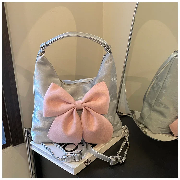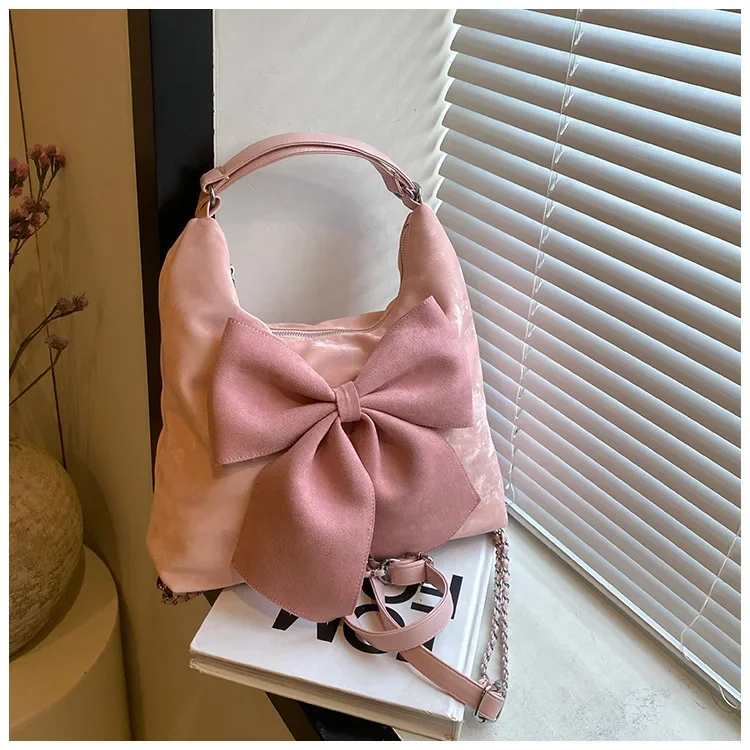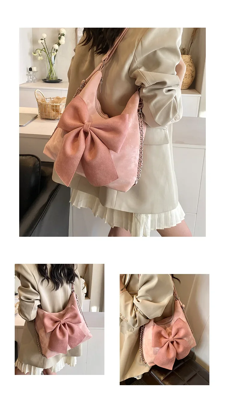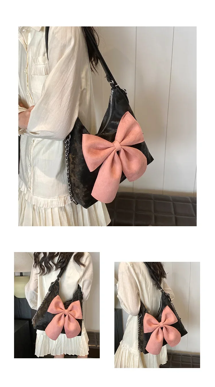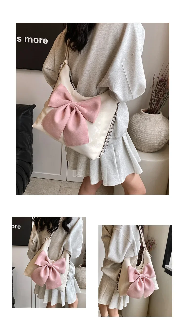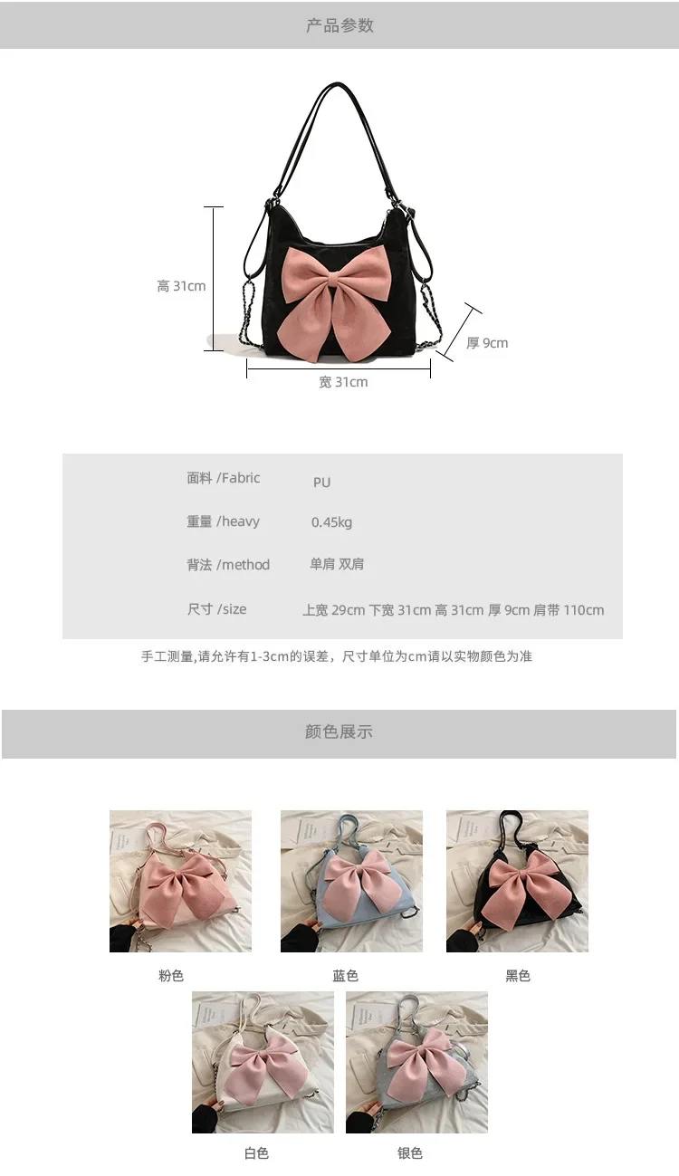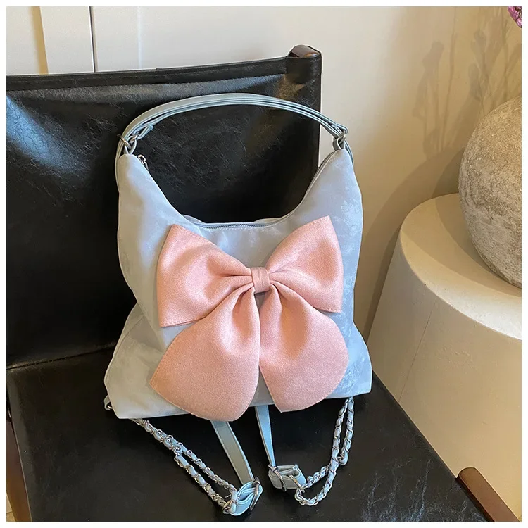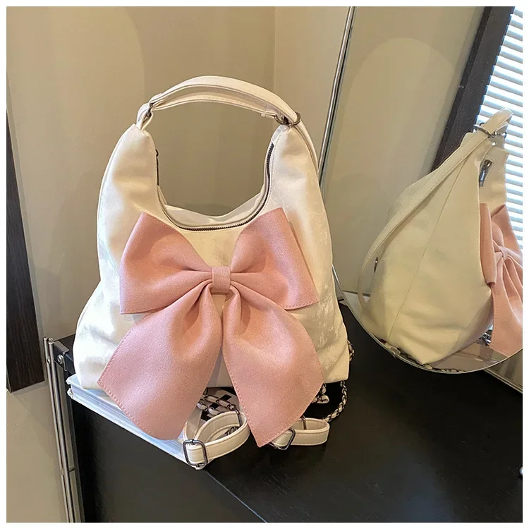 Fashion Ins Style Sweet Girls Big Bow Shoulder Bag Large Capacity Kawaii Soft PU Chic Backpack Purse Handbags for Women Bags