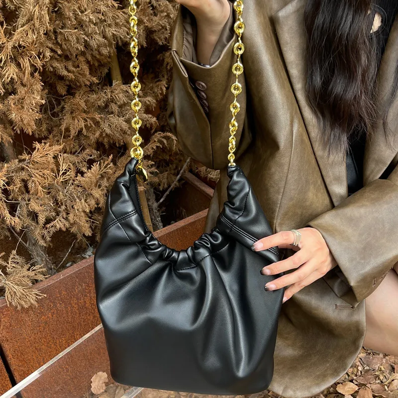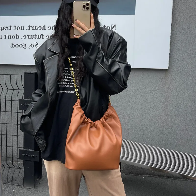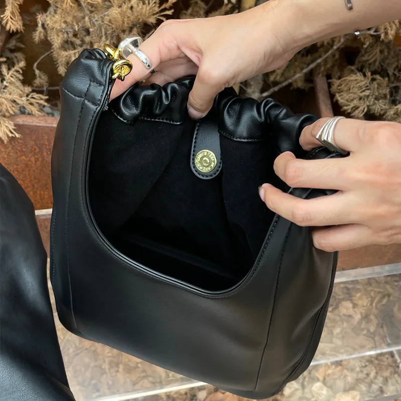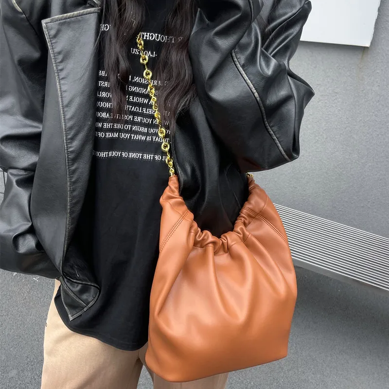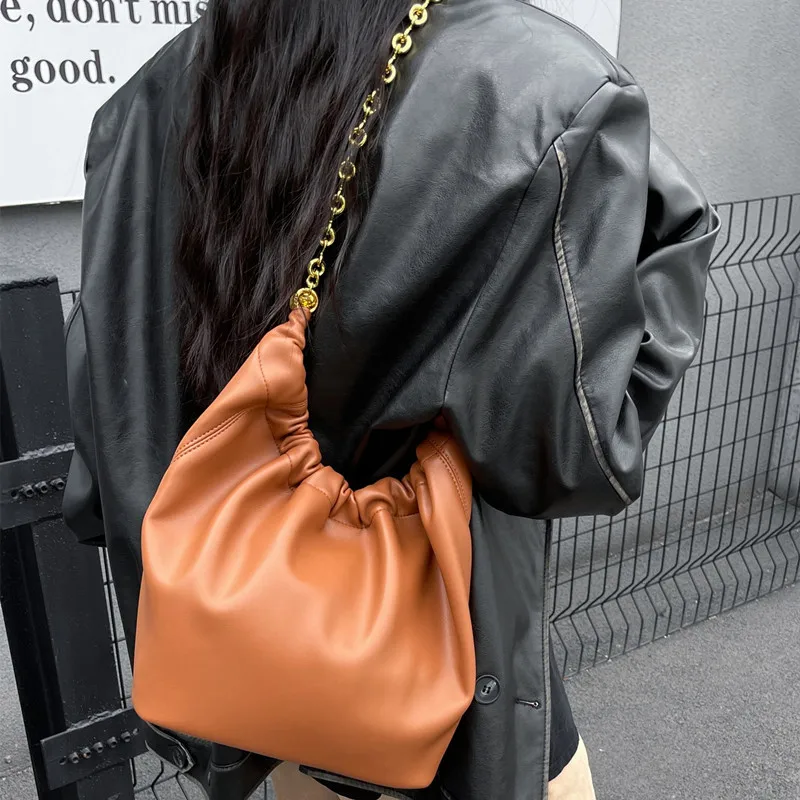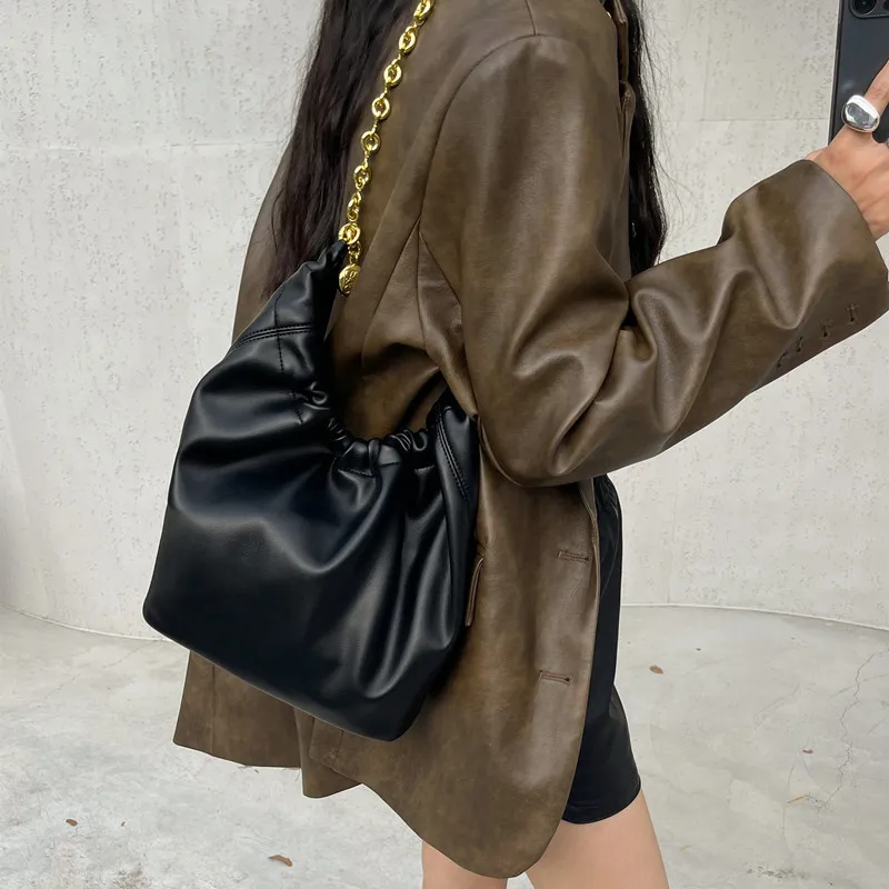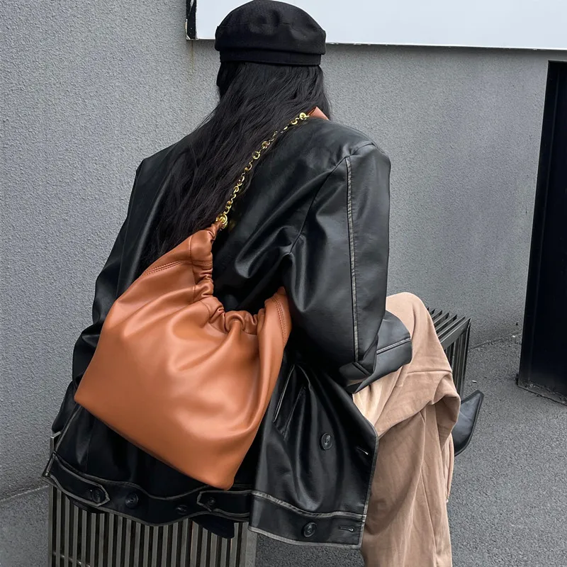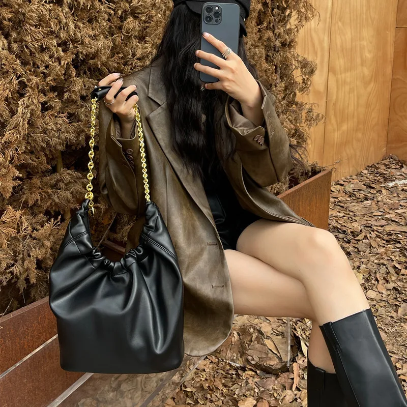 Fashion Leather Shoulder Bags for Women 2024 Winter New Tend Female Simple Soft Hobo Bag Lady Solid Color Handbags