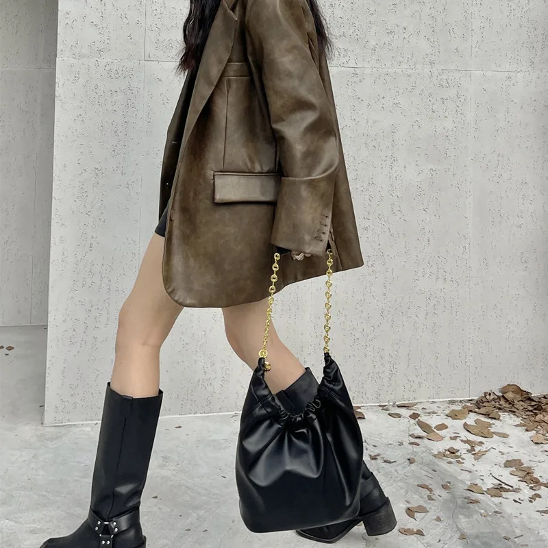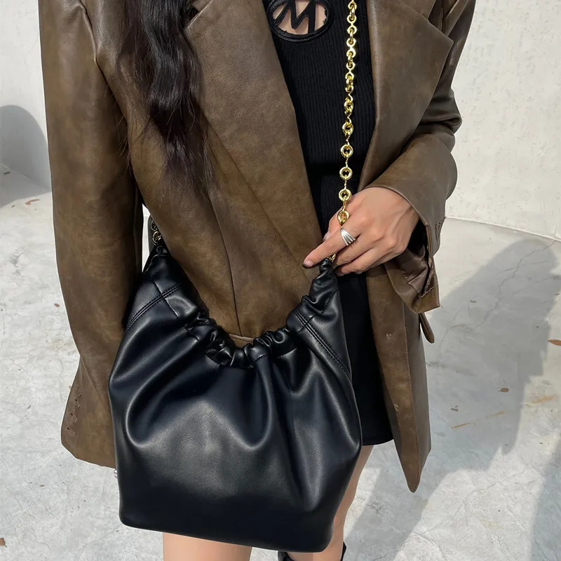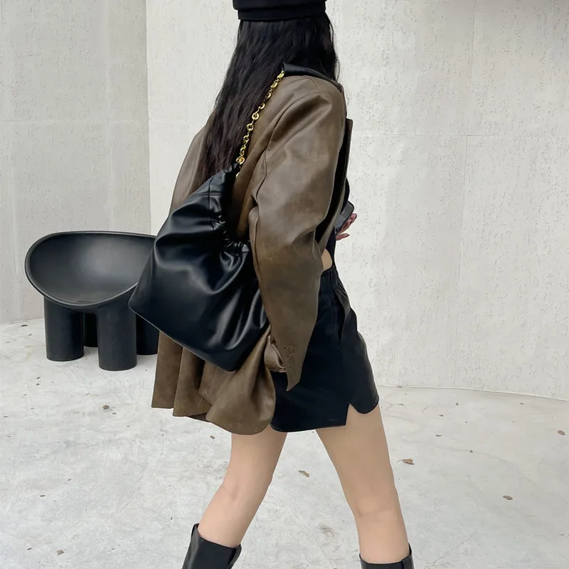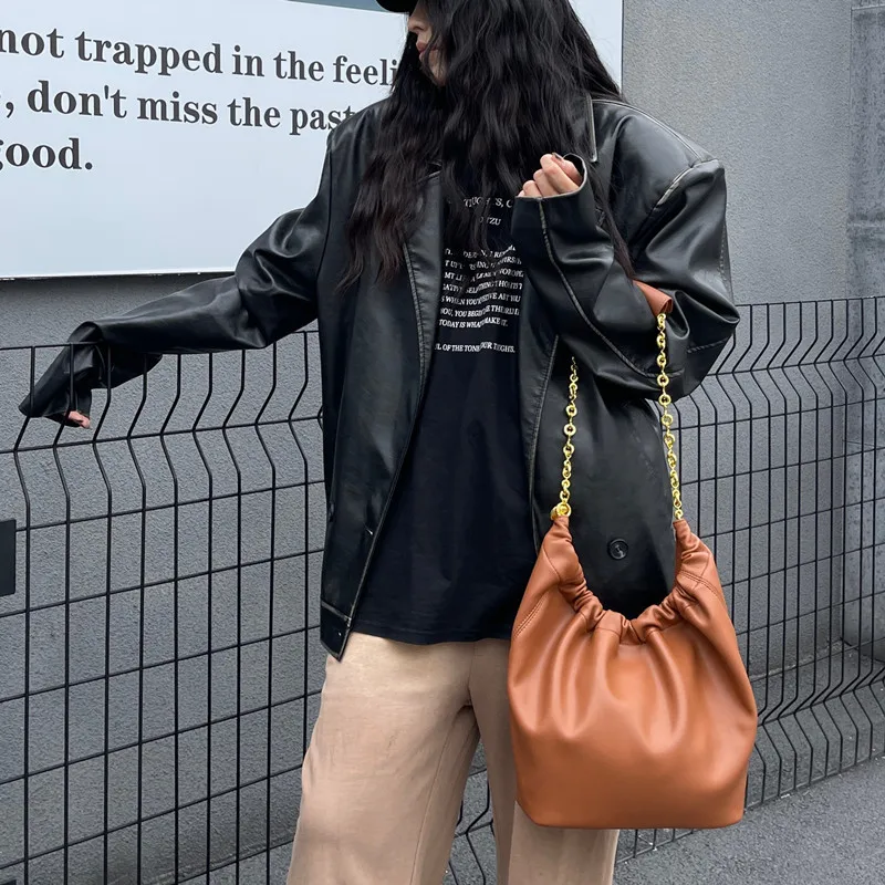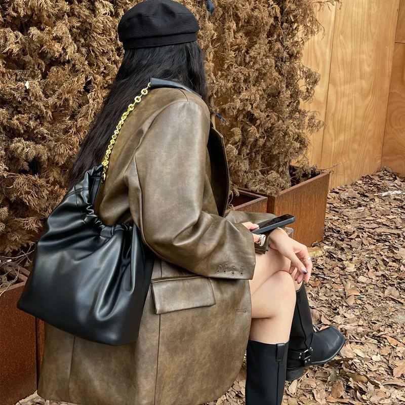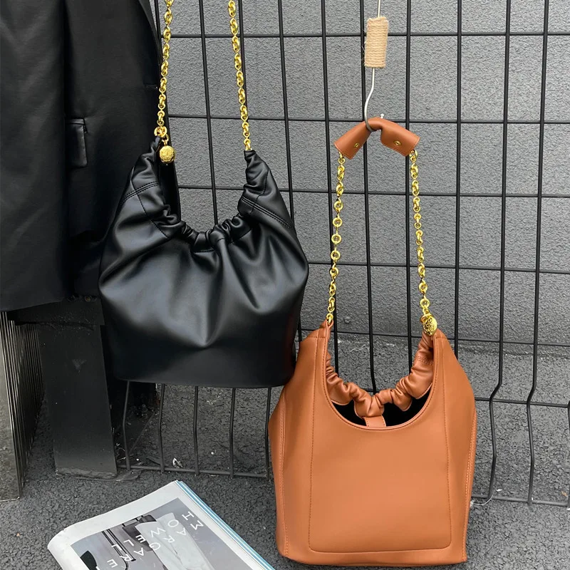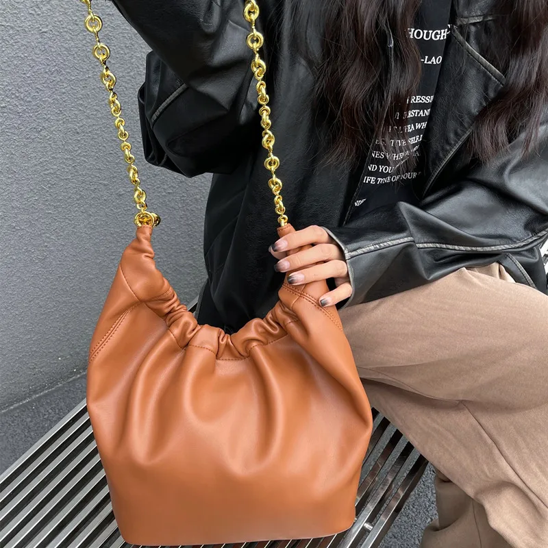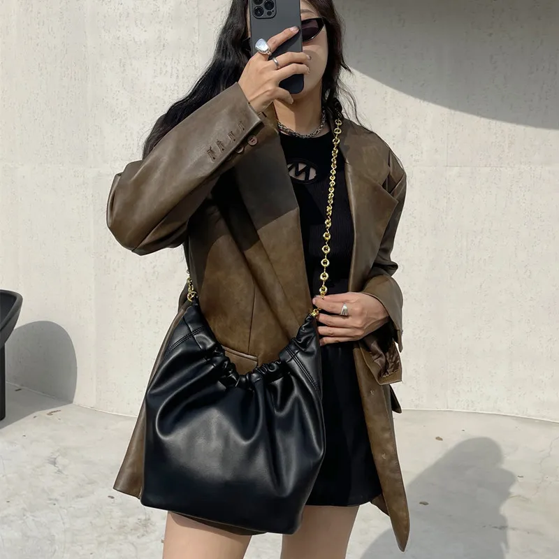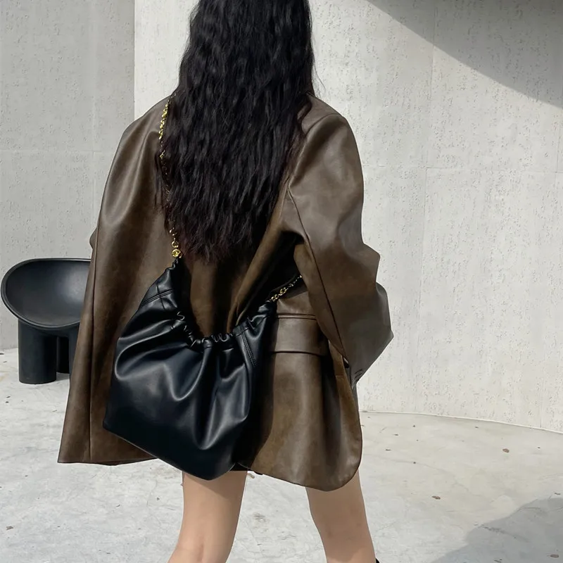 Fashion Leather Shoulder Bags for Women 2024 Winter New Tend Female Simple Soft Hobo Bag Lady Solid Color Handbags