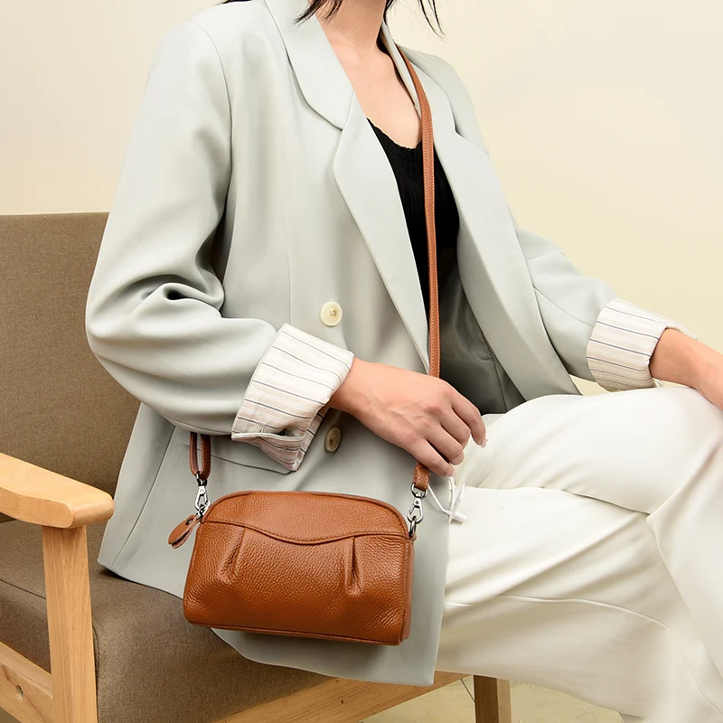 Fashion Luxury Solid Color Cowhide Women Bags Handbag High Quality Genuine Leather Female Shoulder Crossbody Bag Ladies Tote Sac