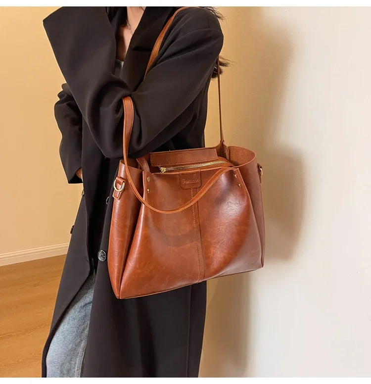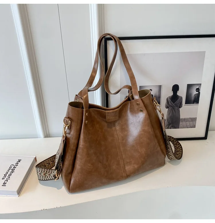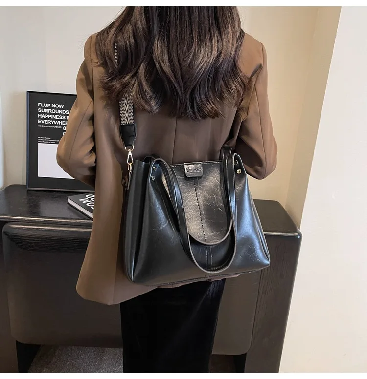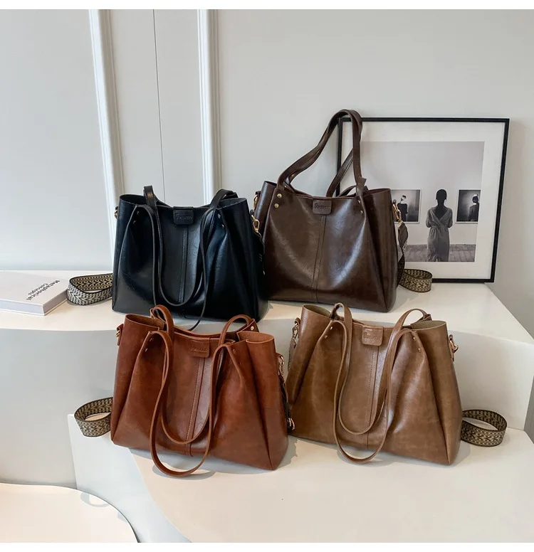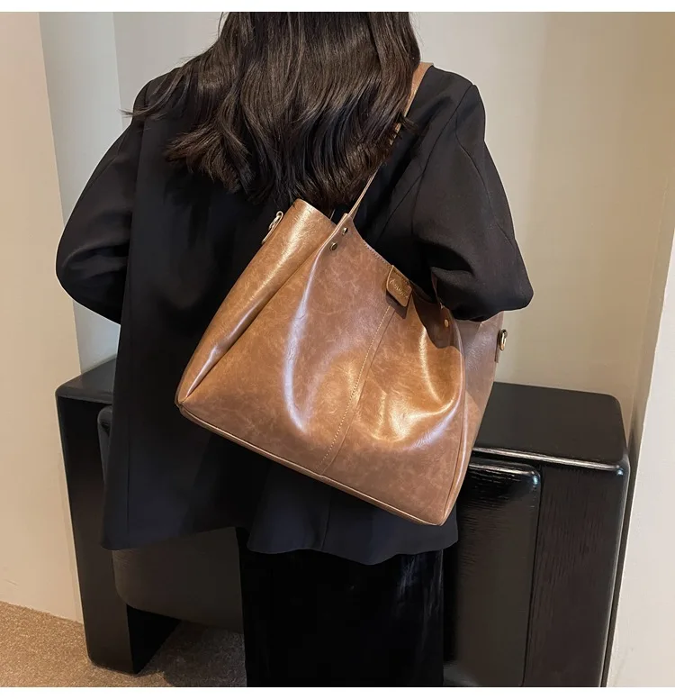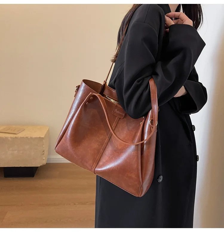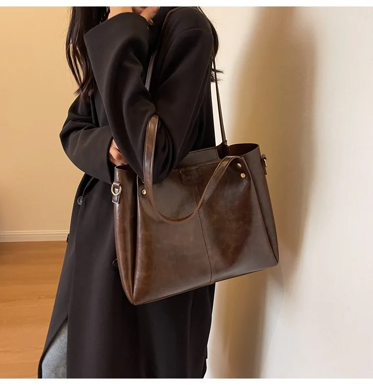 Fashion Pu Leather Women Tote Bags Solid Colors Large Capacity Handbags Ladies School Shoulder Big Shopping Bags for Women