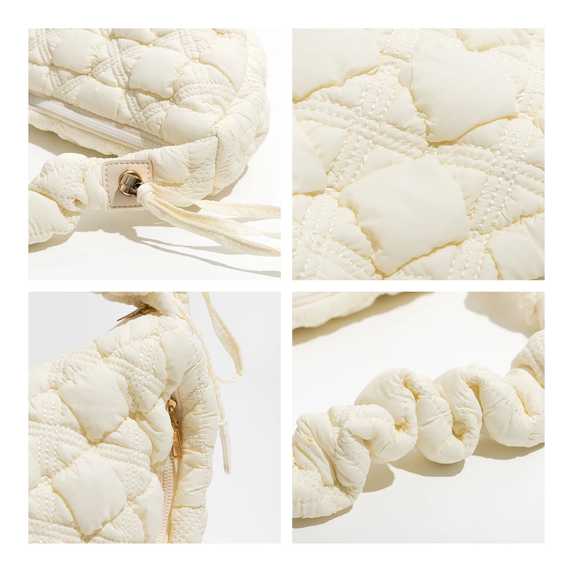 Fashion Quilted Hobos Women Shoulder Bags Designer Ruched Strap Crossbody Bag Soft Nylon Puffy Bag Bubble Padded Female Purses