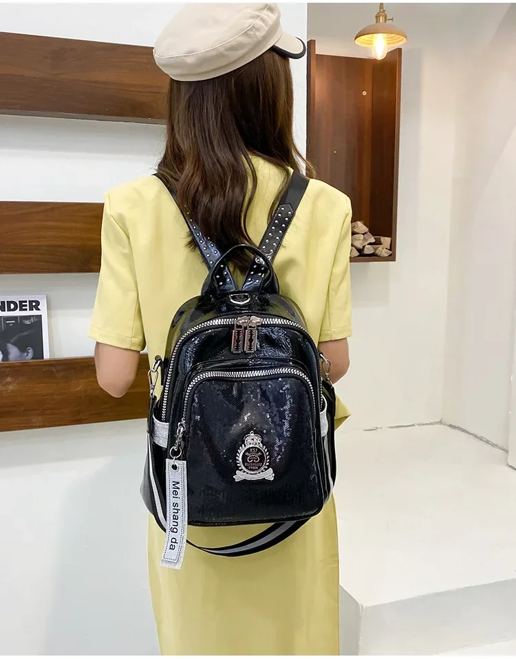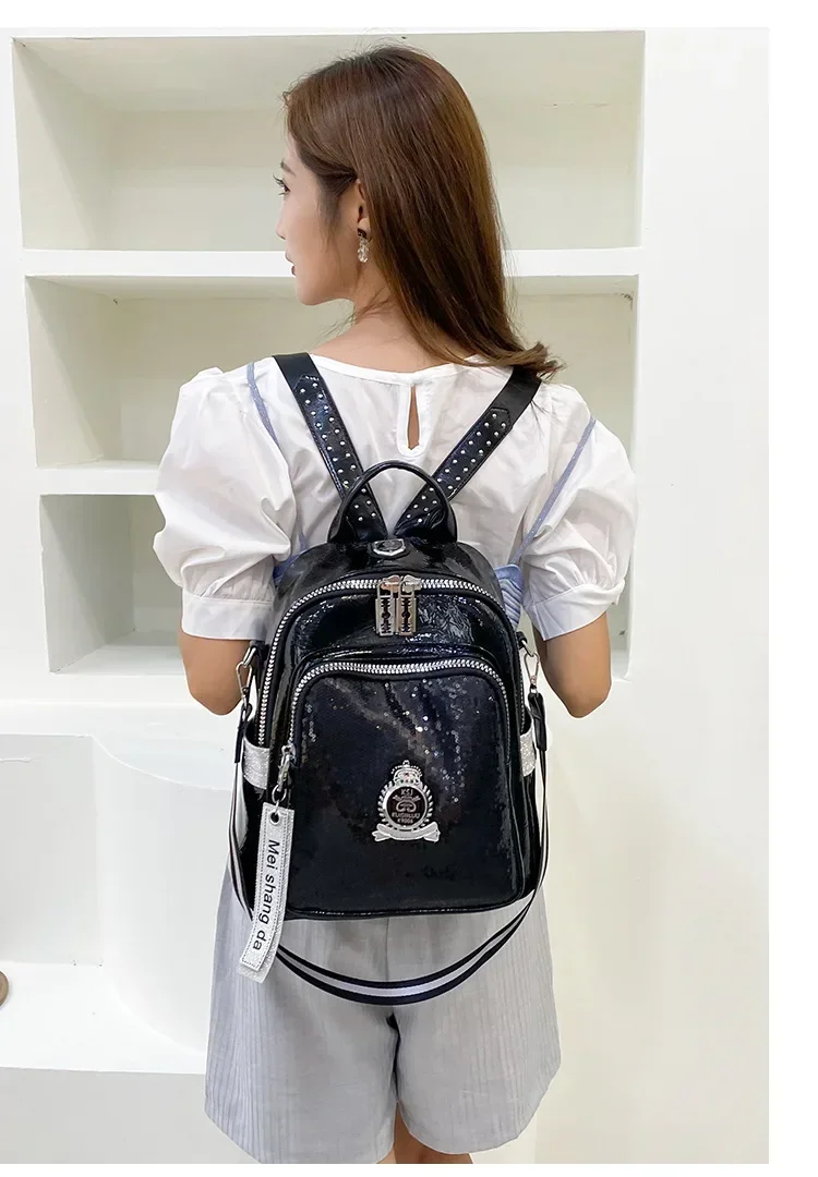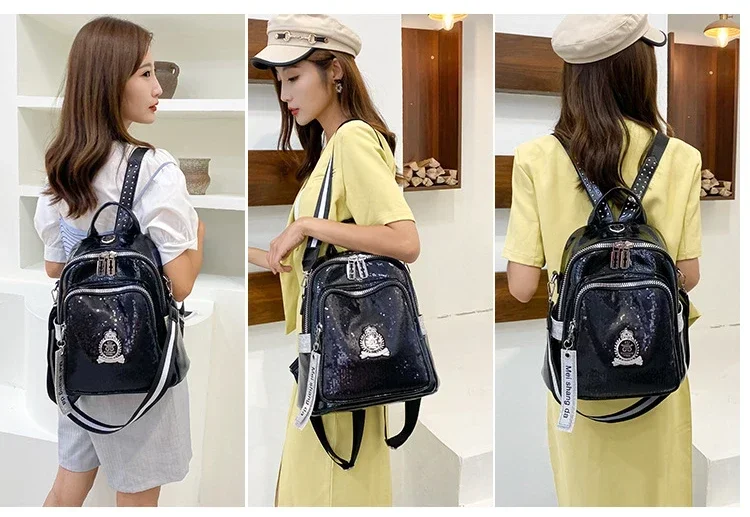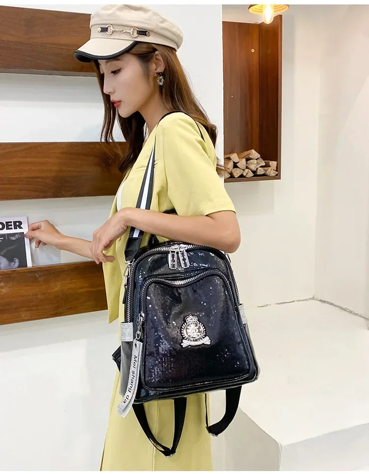 Fashion Sequins Feminina Backpack New Trend Large Capacity Soft Leather Travel Bag High-Grade School Bags For Teenagers Girls